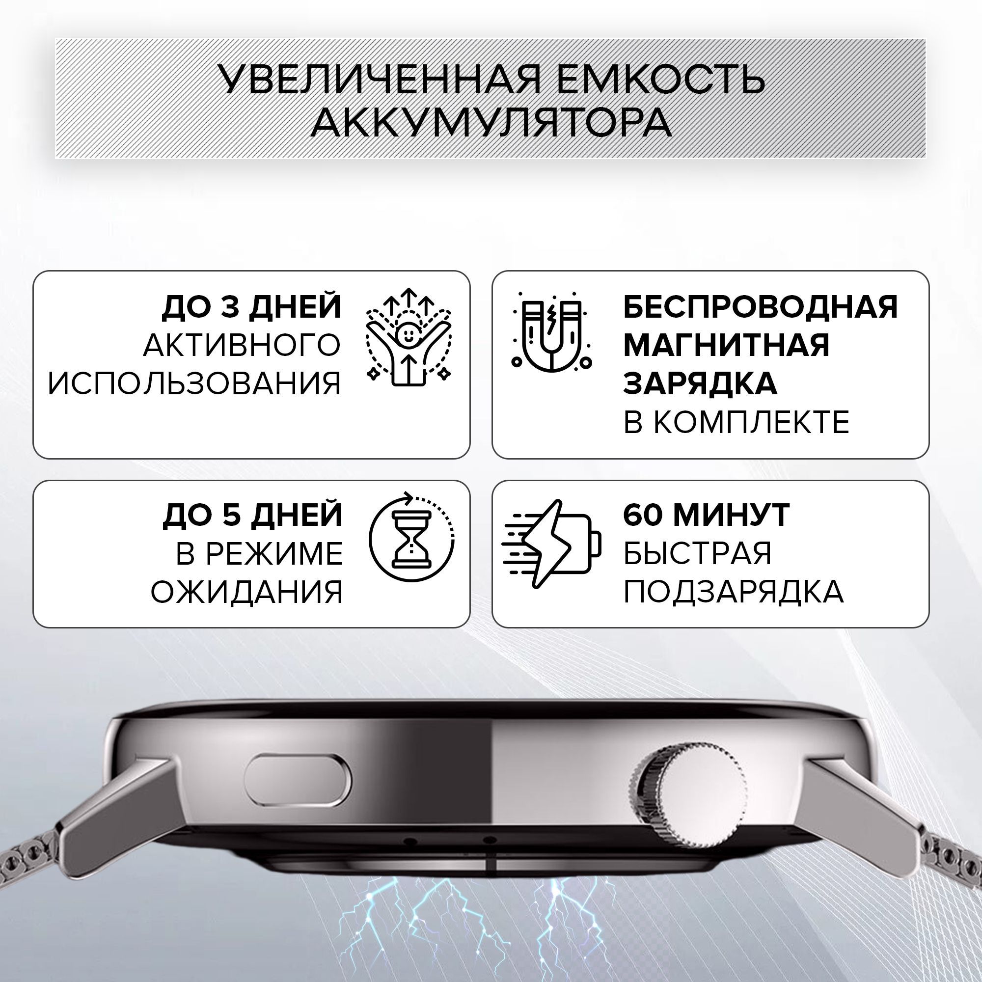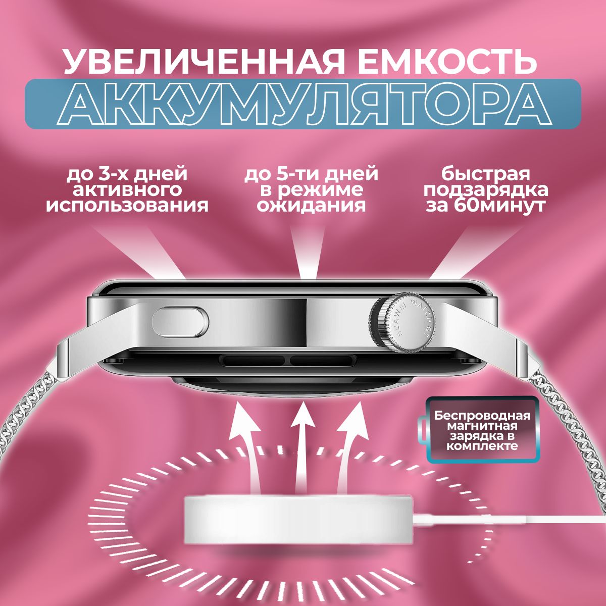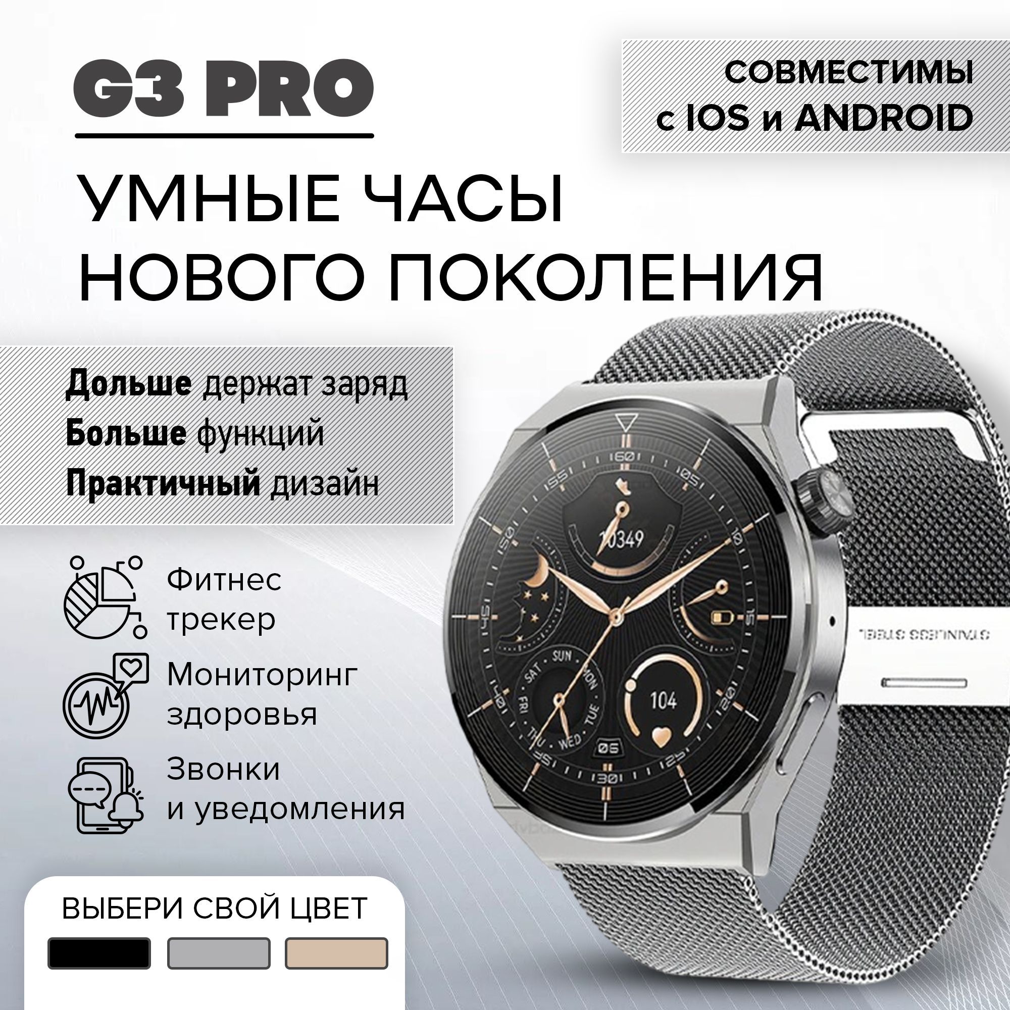Описание: Часы Smart Watch G3 PRO - Хит сезонаУмные часы премиальной серии Smart Watch G3 PRO на русском языке - это одни из самых продвинутых и качественных смарт-часов с беспроводной зарядкой, круглым циферблатом и большим экраном 42 мм.