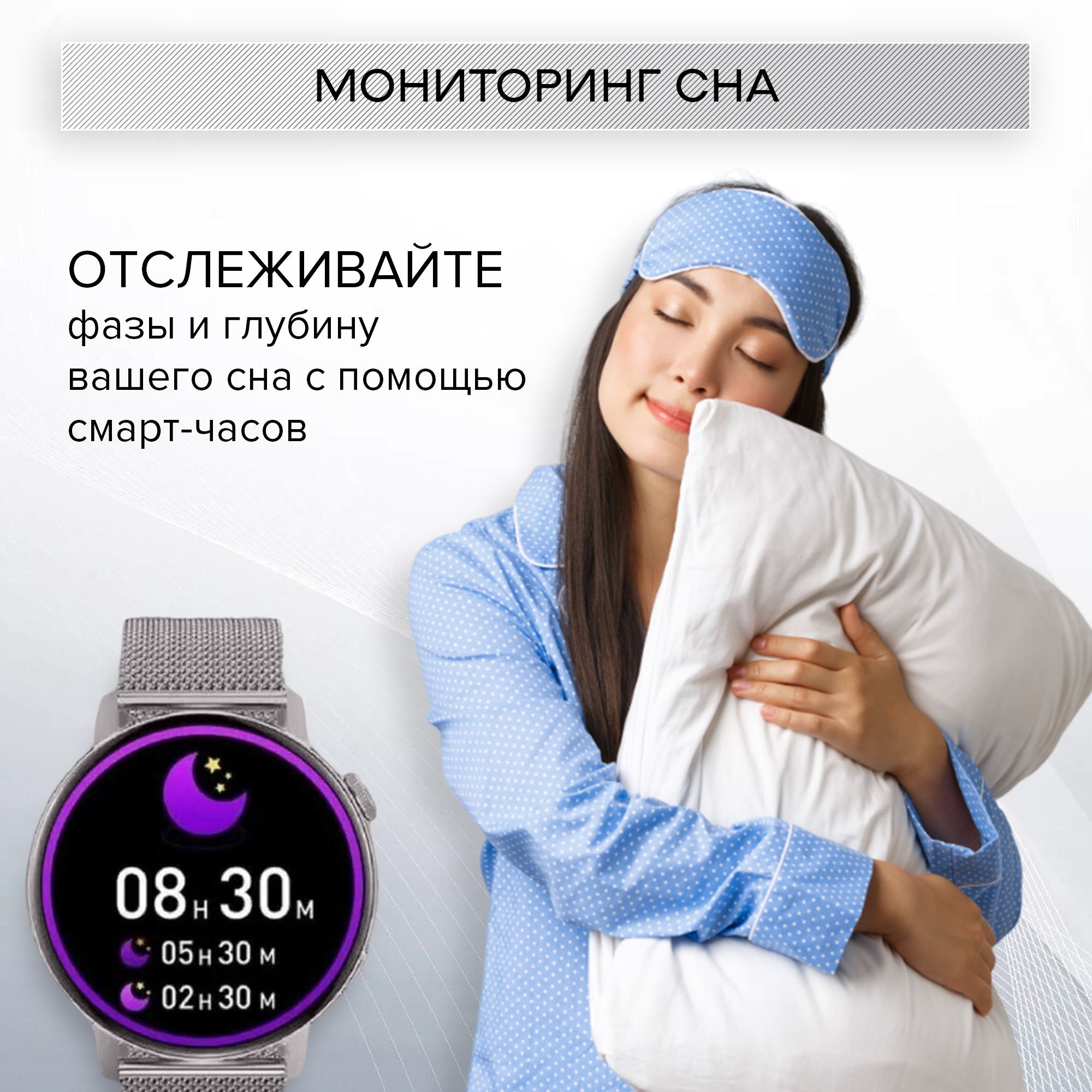 МногофункциональностьИспользуйте гаджет на полную. Много функций облегчают повседневный быт.Мониторинг снаПредусмотрена функция мониторинга сна. Используйте умный браслет на полную. Записывайте и анализируйте свой ежедневный глубокий сон, легкий сон, бодрствование и другие различные состоянияУдобное приложениеУстановите на свой смартфон приложение WearfitPro и синхронизируйте его с часами. Получите доступ ко всем функциям часов, отслеживайте свои показатели, меняйте настройки.