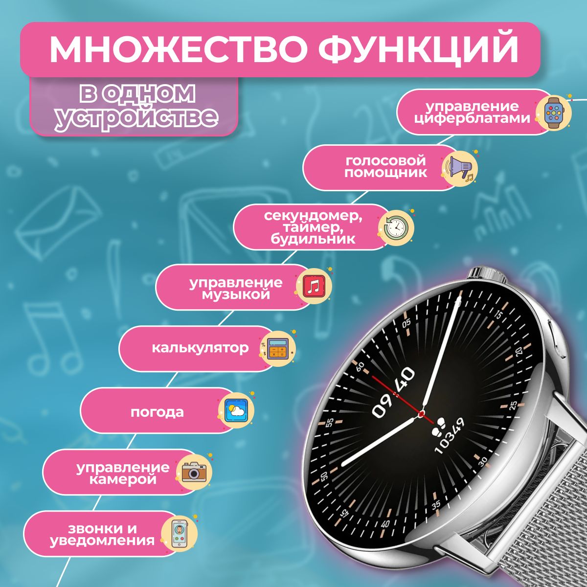 Смарт часы Smart Watch G3 Pro женские / детские / серебристые / серые / наручные / круглые/ с gps, телефоном / фитнес браслет / шагомер / электронные / умные часы c сенсорным экраном / 42 mm /смарт вотч / для iOS, Android / Bluetooth