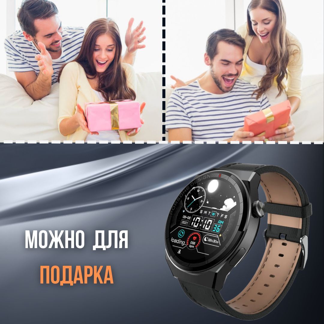 Умные Смарт часы мужские Smart Watch - 1 шт. Силиконовый ремешок - 1 шт. Ремешок из искусственной кожи - 1 шт. Беспроводная магнитная зарядка - 1 шт. Инструкция - 1 шт. Коробка - 1 шт.