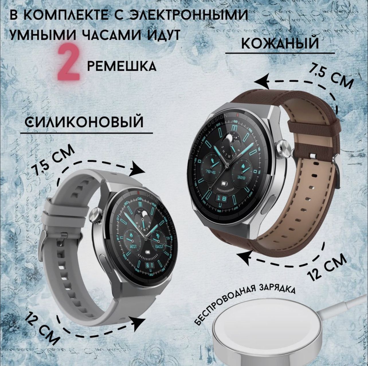 ⭐Смарт часы X5 pro; ⭐Упаковка; ⭐Беспроводная магнитная зарядка ⭐Ремешок 2шт, второй кожаный в подарок ⭐Инструкция