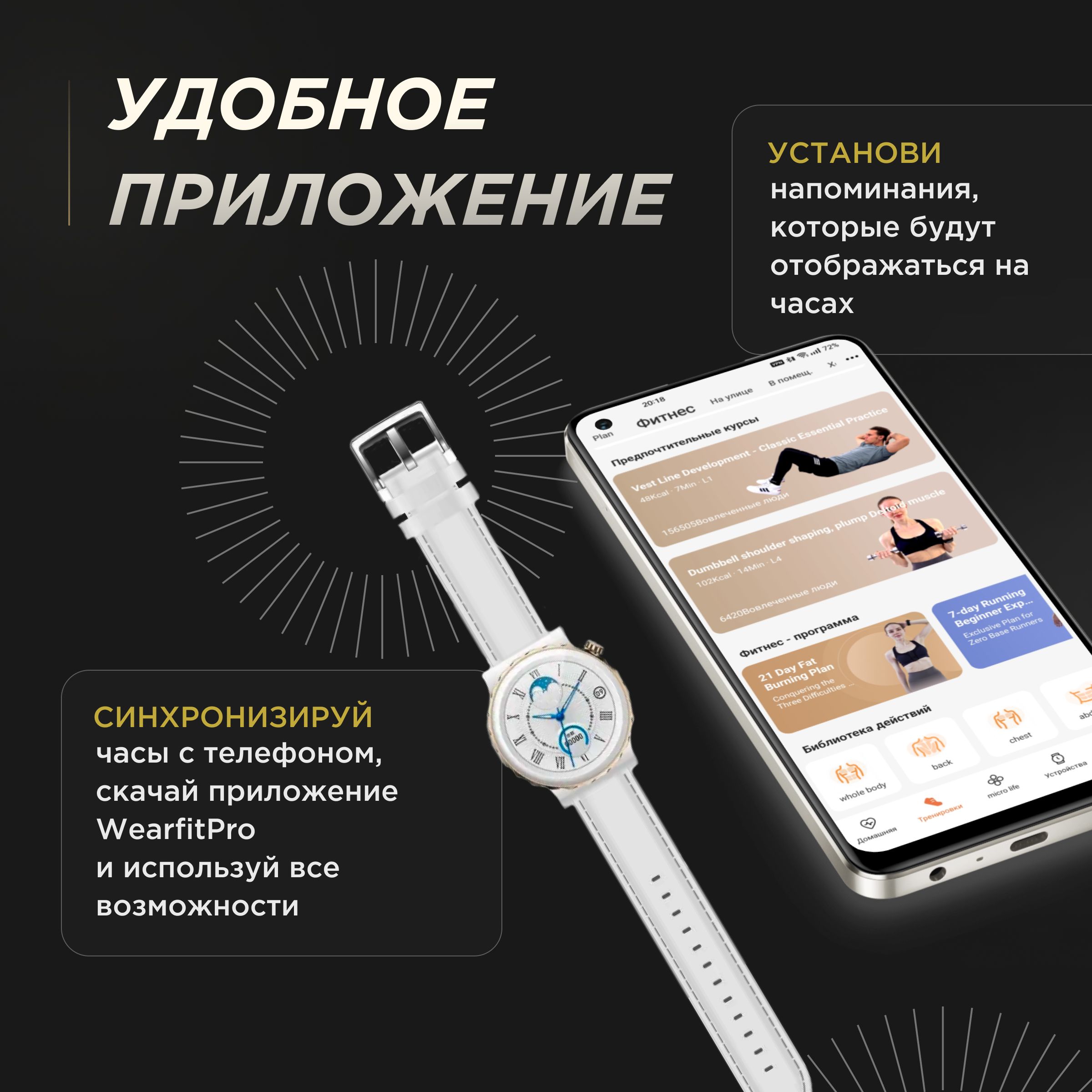 Часы имеют: множество функций, выбор циферблатов, производительный чип Bluetooth 5.2, отзывчивый сенсор, качественную синхронизацию со смартфонами на платформах Android и iOS совместно с приложением WearfitPro (которое вы можете скачать в App Store, Google Play, или просканировав QR-код на задней части упаковки)