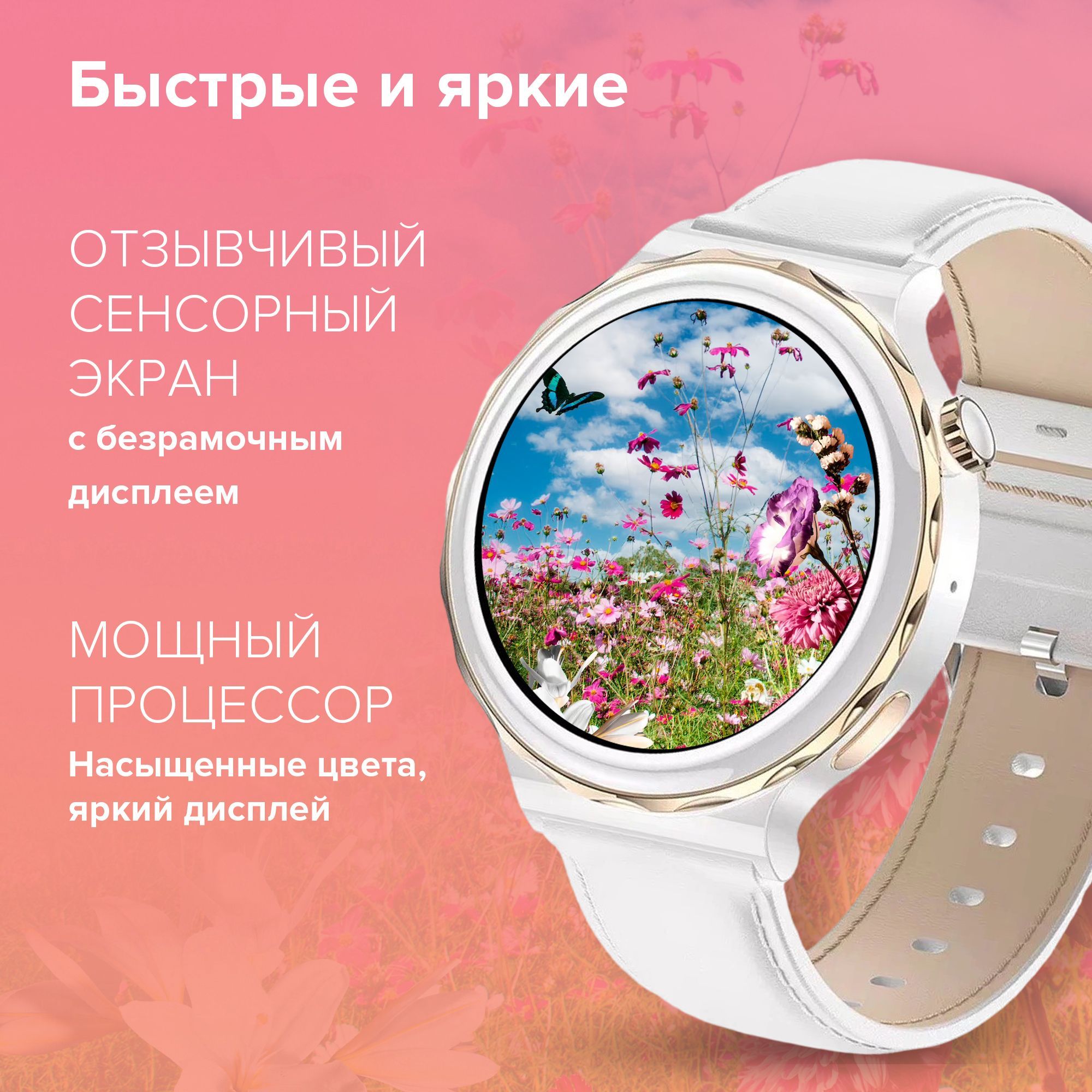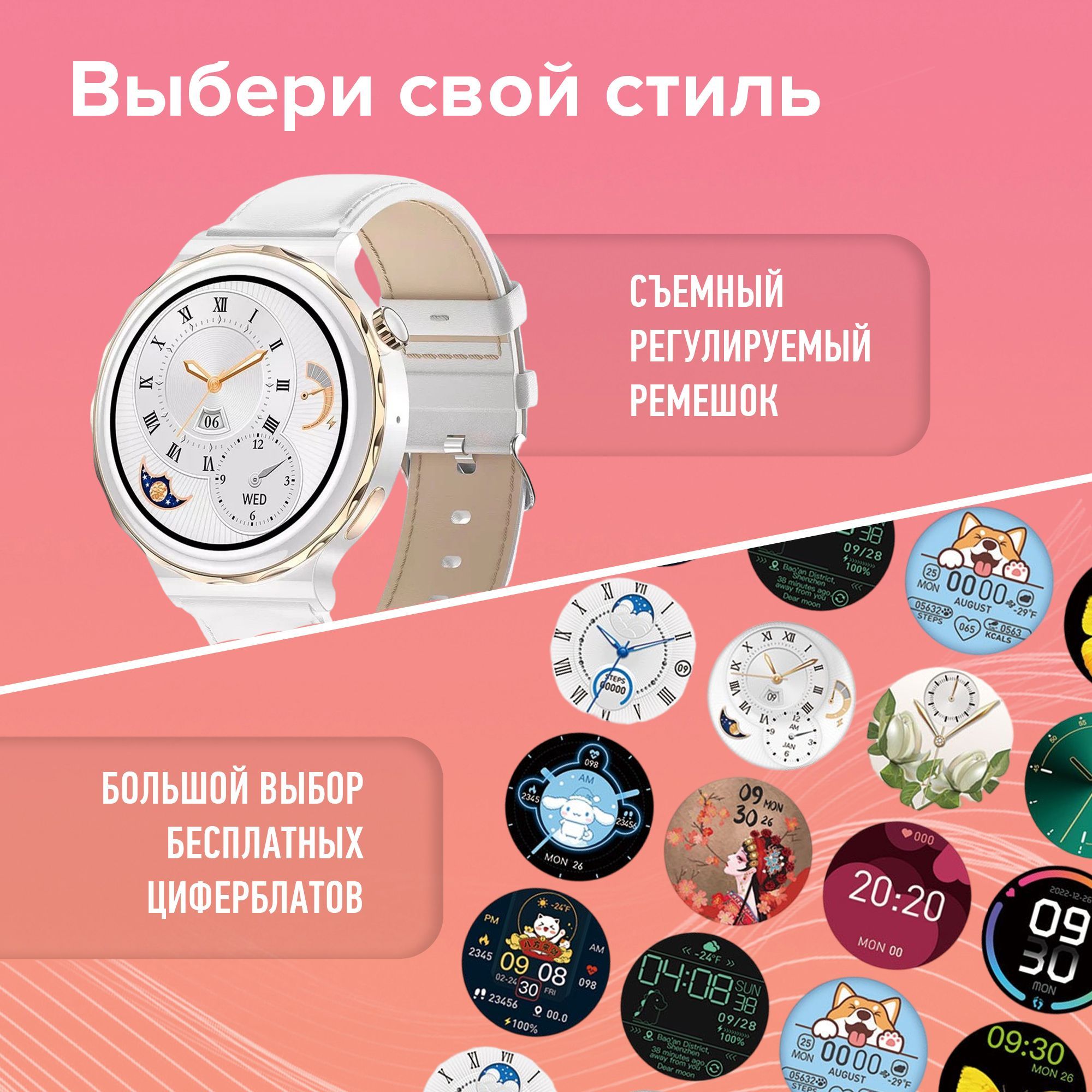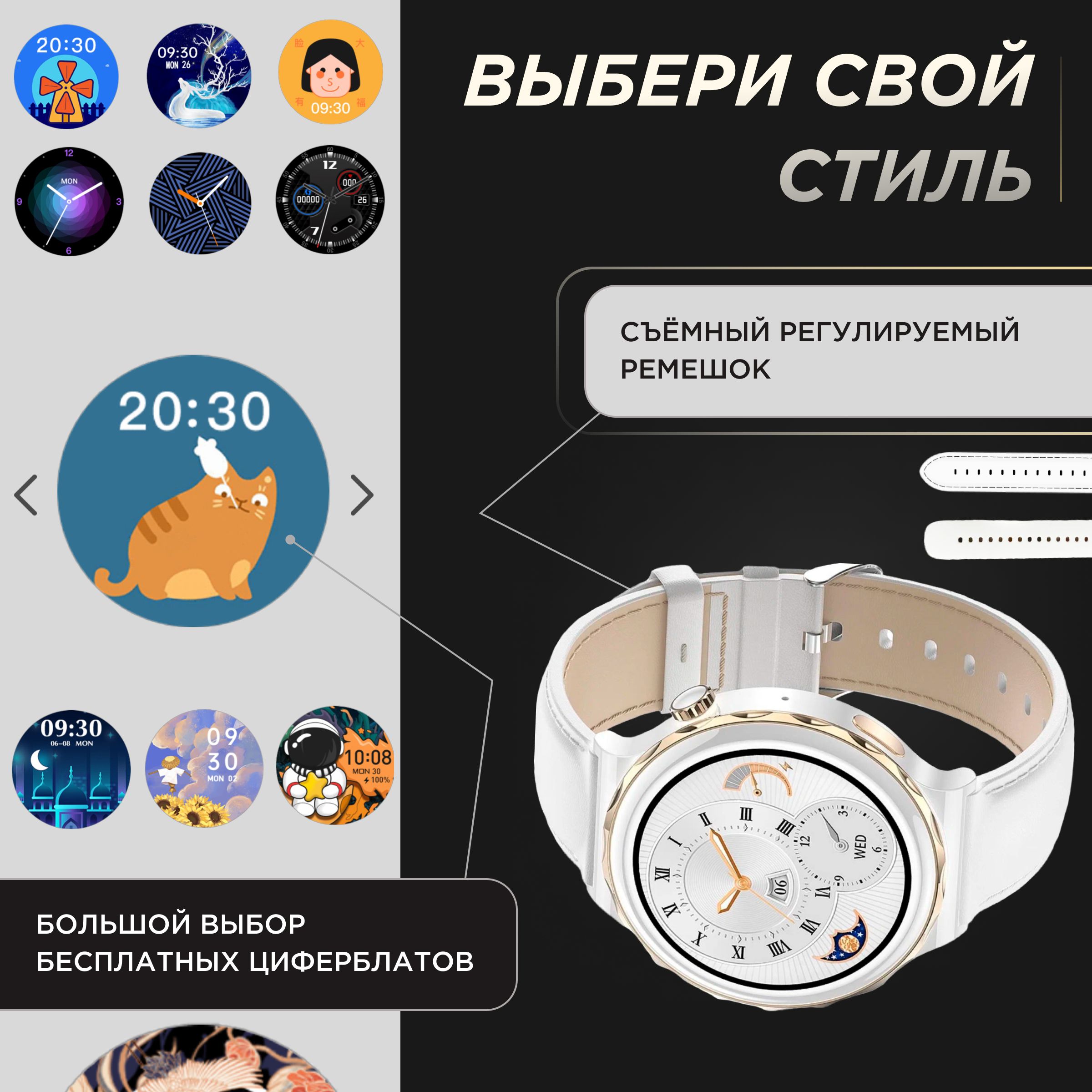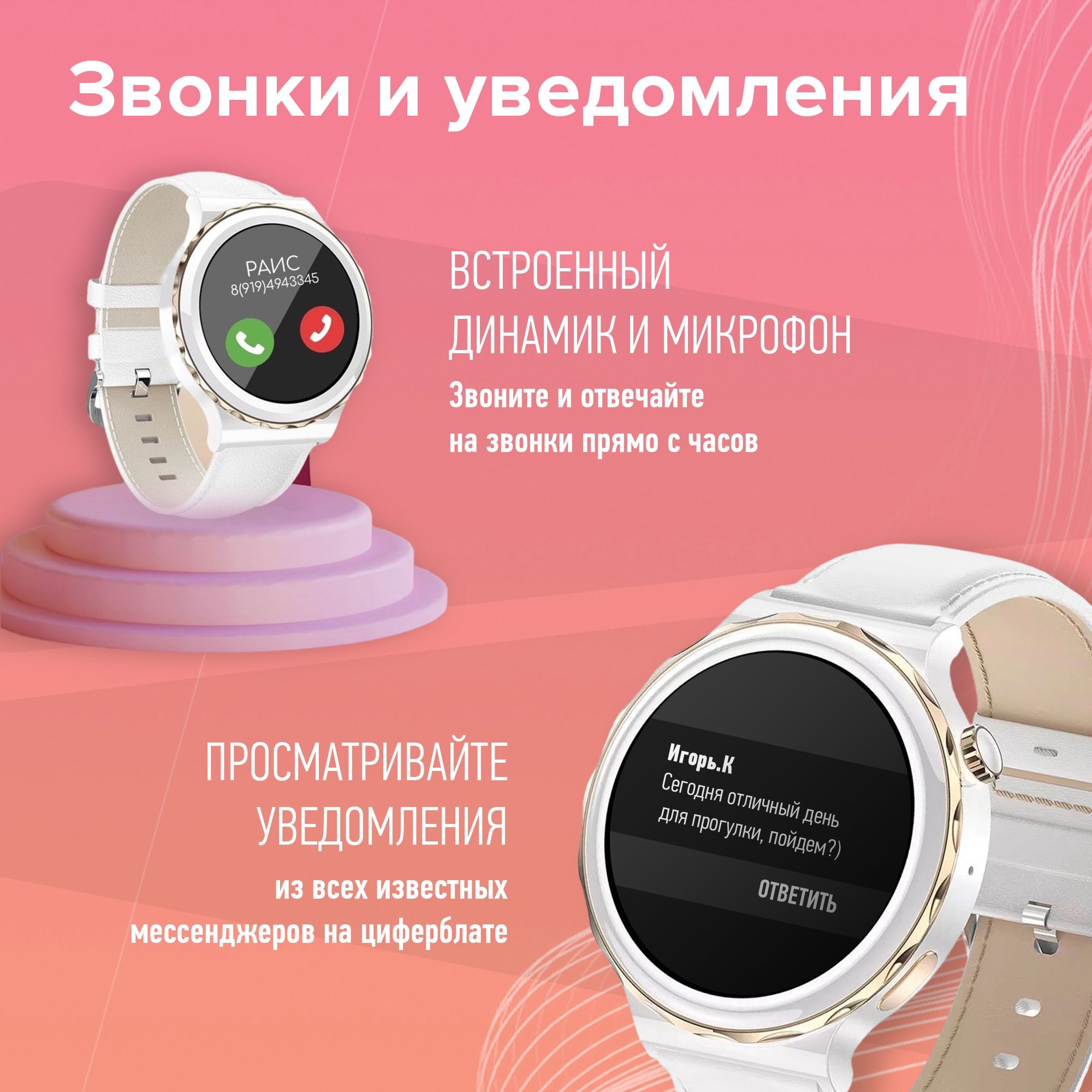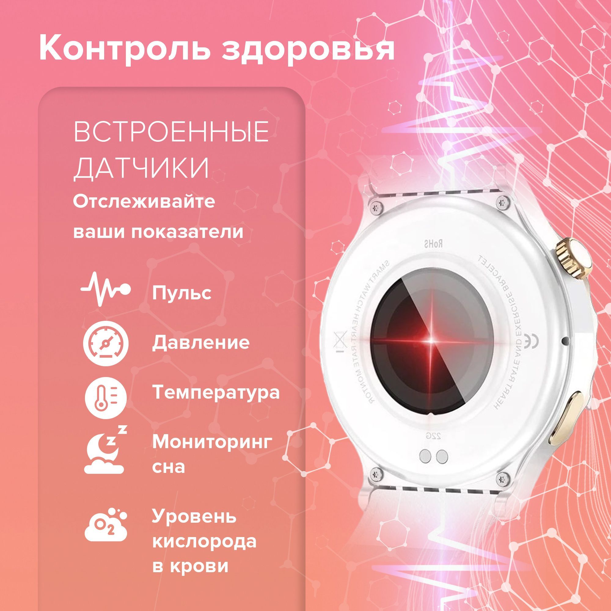 Смарт часы Smart Watch X6 Pro женские / элегантные / наручные / круглые/ с gps, телефоном / фитнес браслет / шагомер / электронные / умные часы c сенсорным экраном / 42mm /смарт вотч / счетчик калорий / Bluetooth / для IOS и Android / на русском /белые