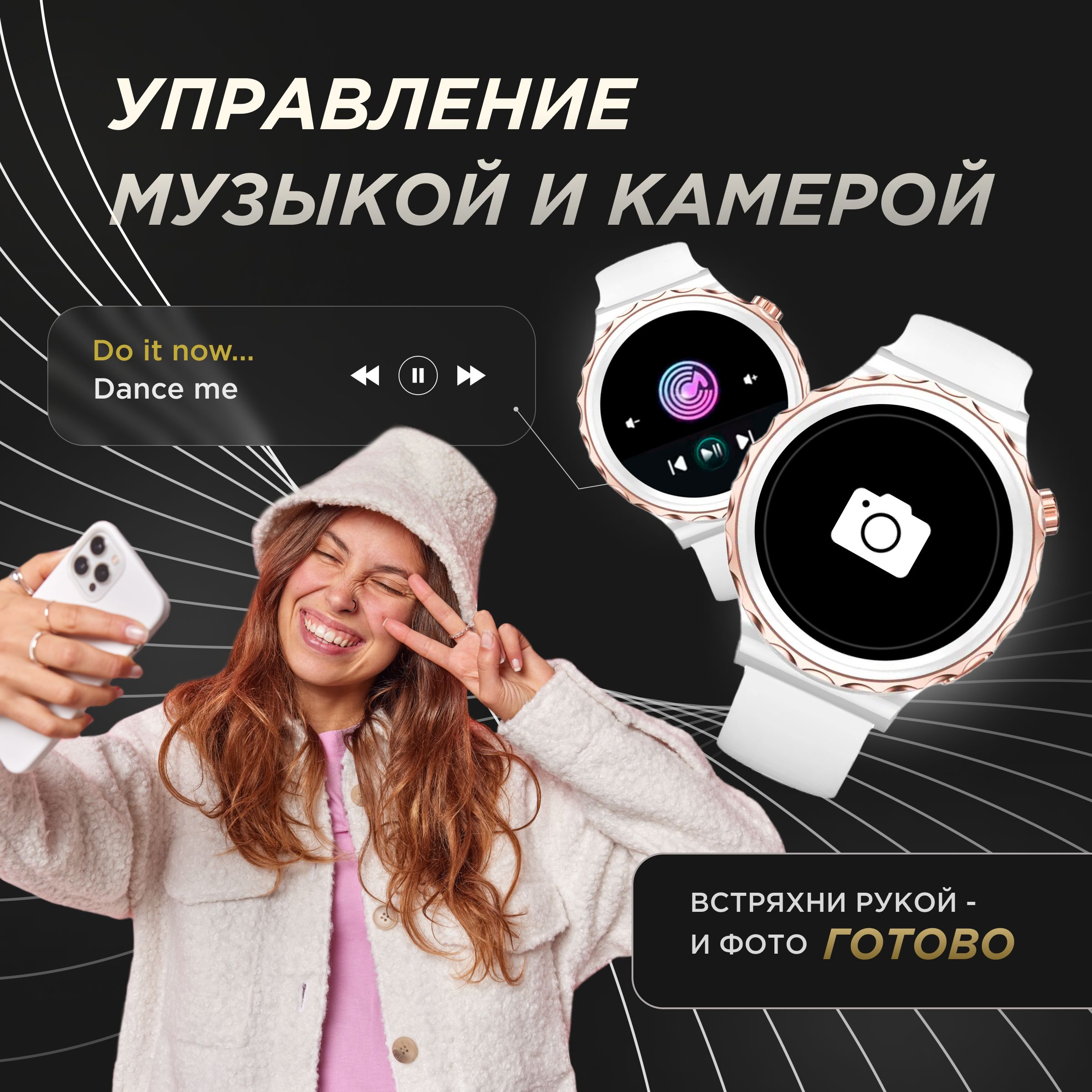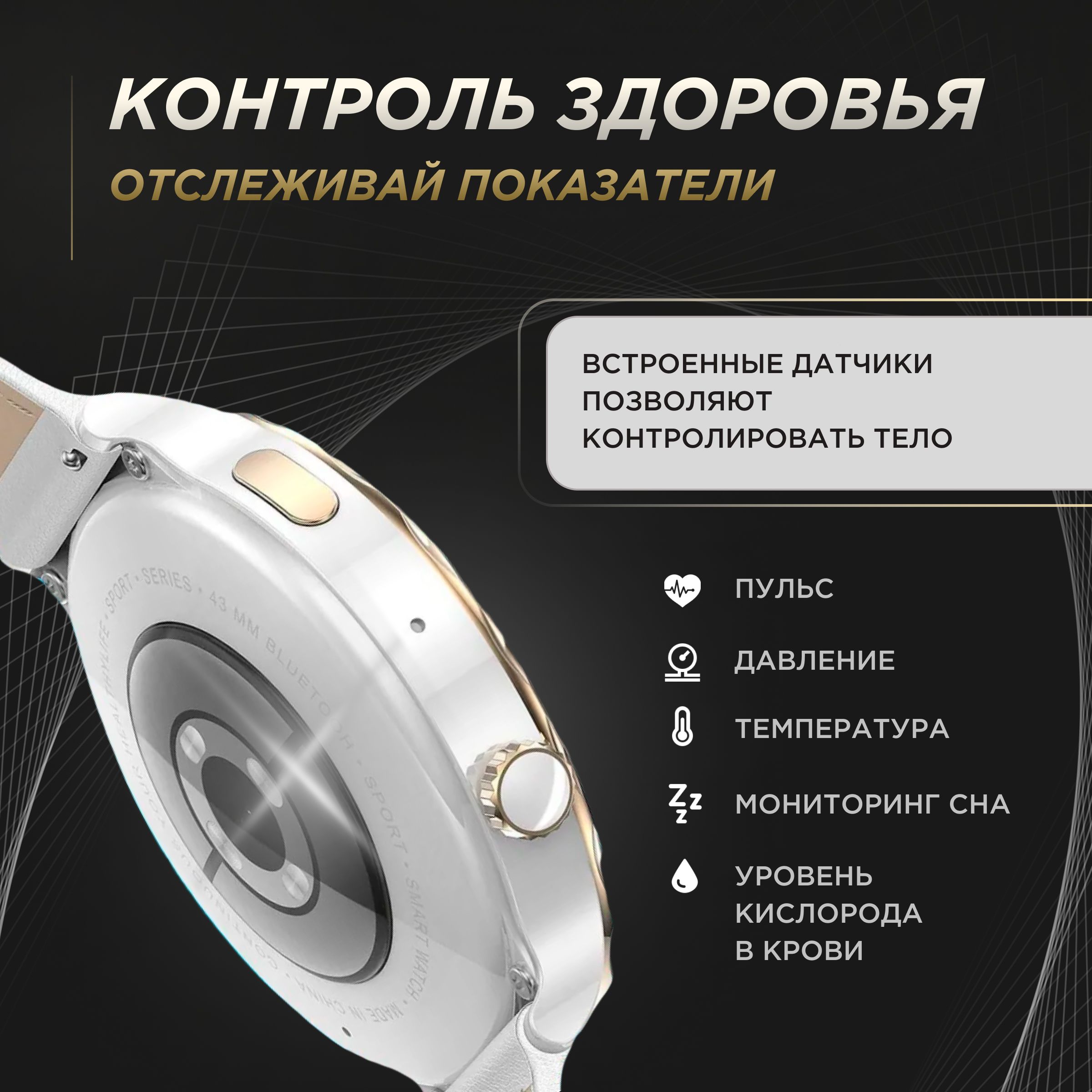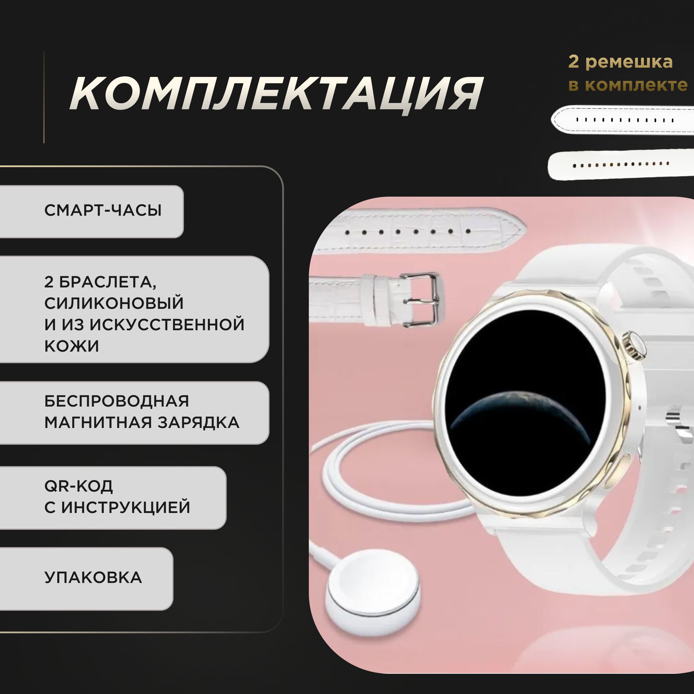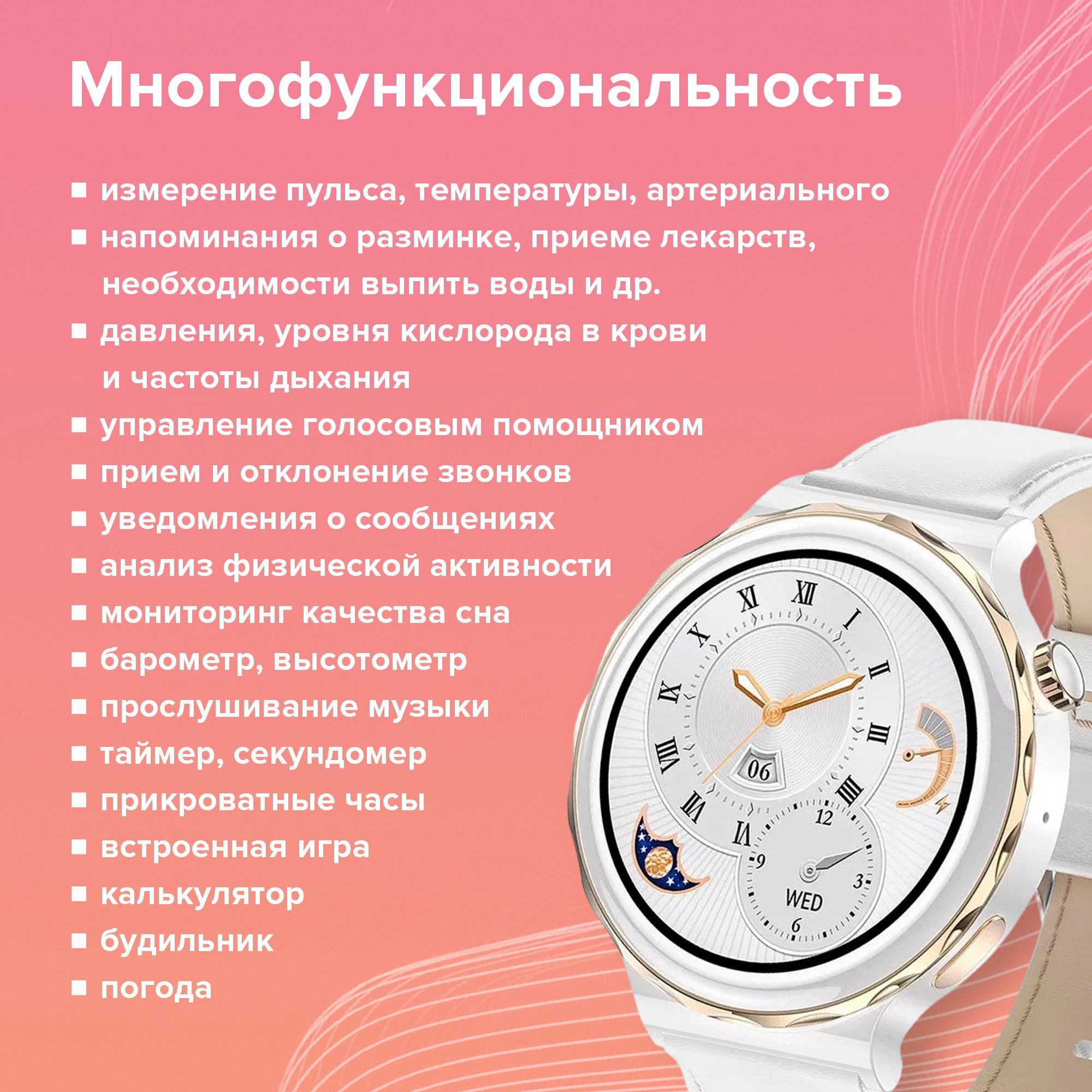 Смарт часы Smart Watch X6 Pro женские / элегантные / наручные / круглые/ с gps, телефоном / фитнес браслет / шагомер / электронные / умные часы c сенсорным экраном / 42mm /смарт вотч / счетчик калорий / Bluetooth / для IOS и Android / на русском /белые