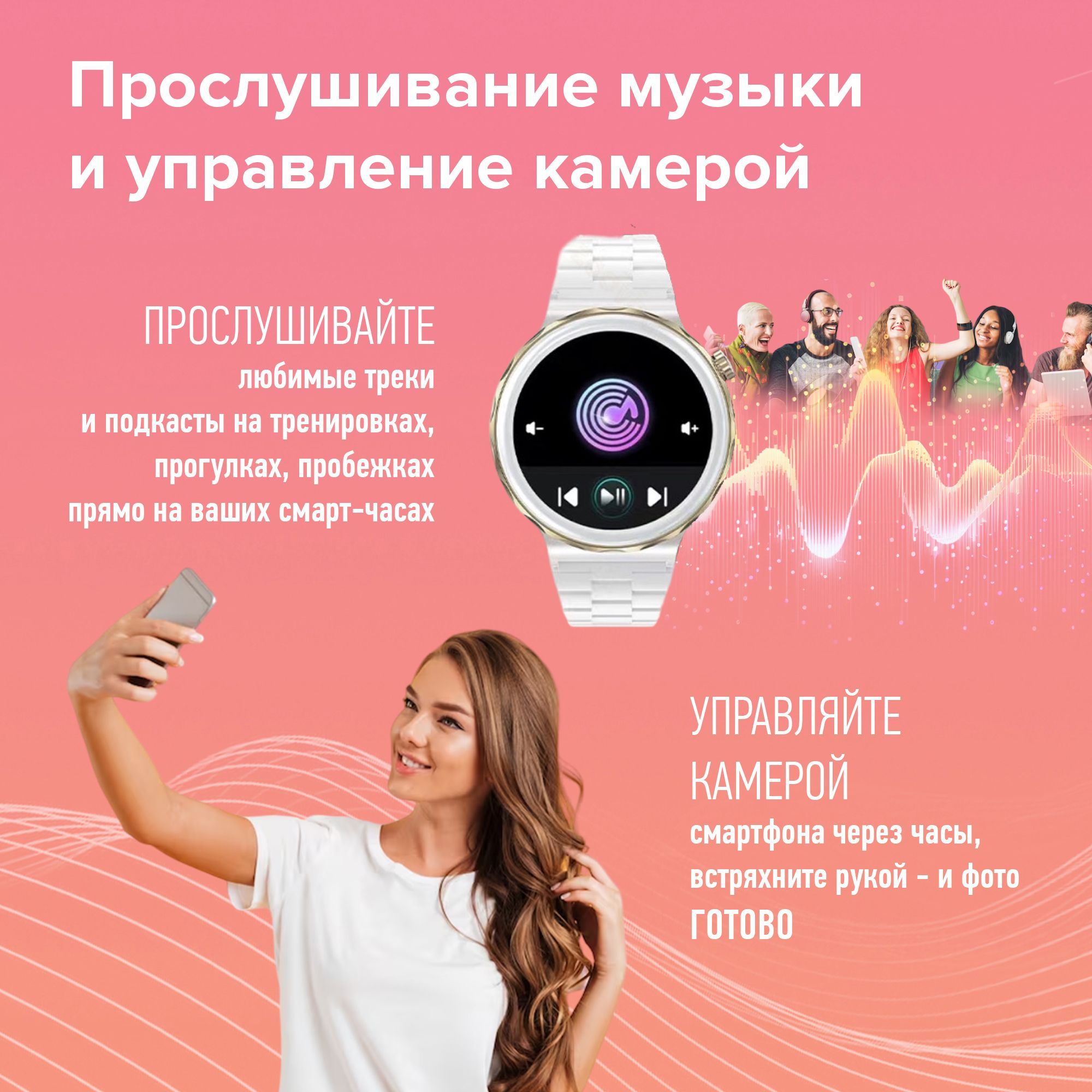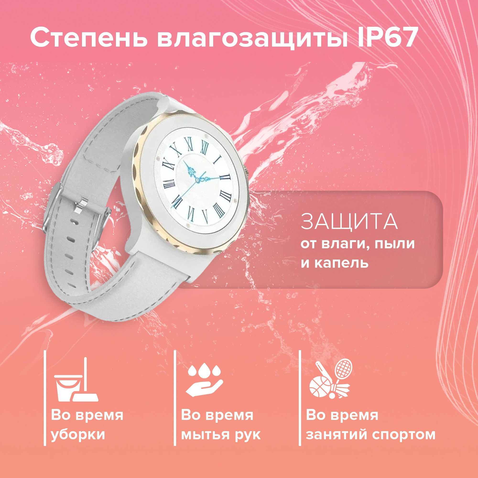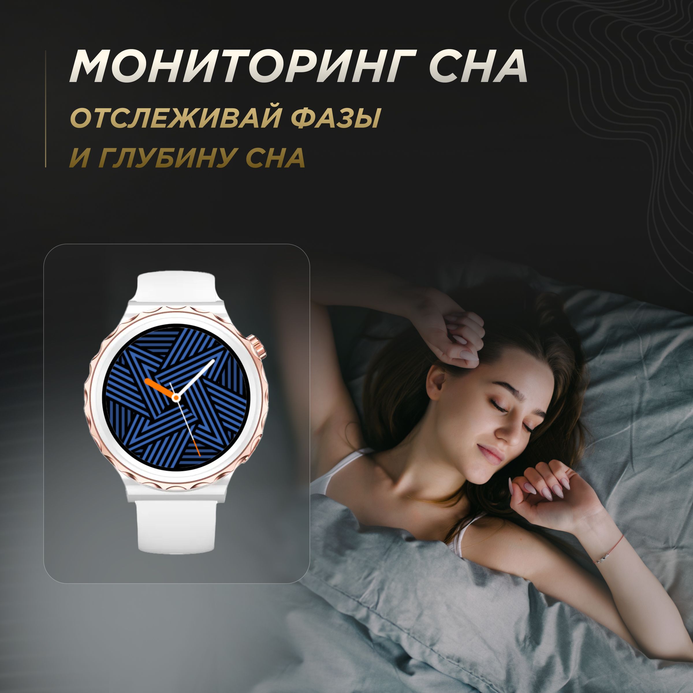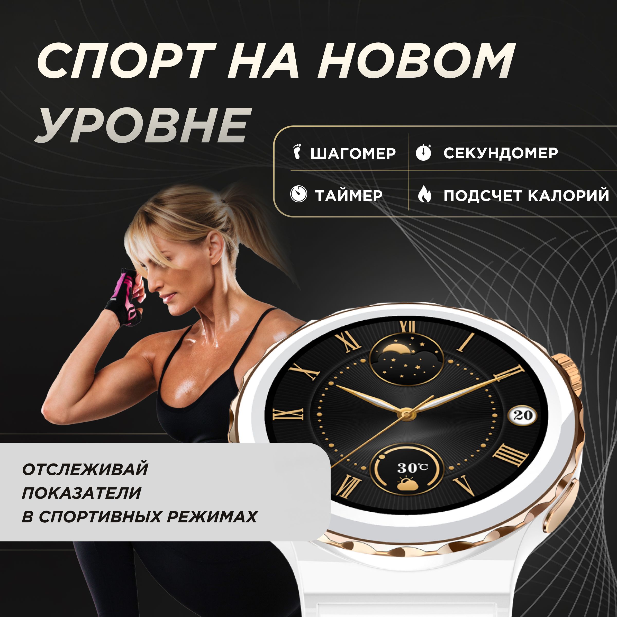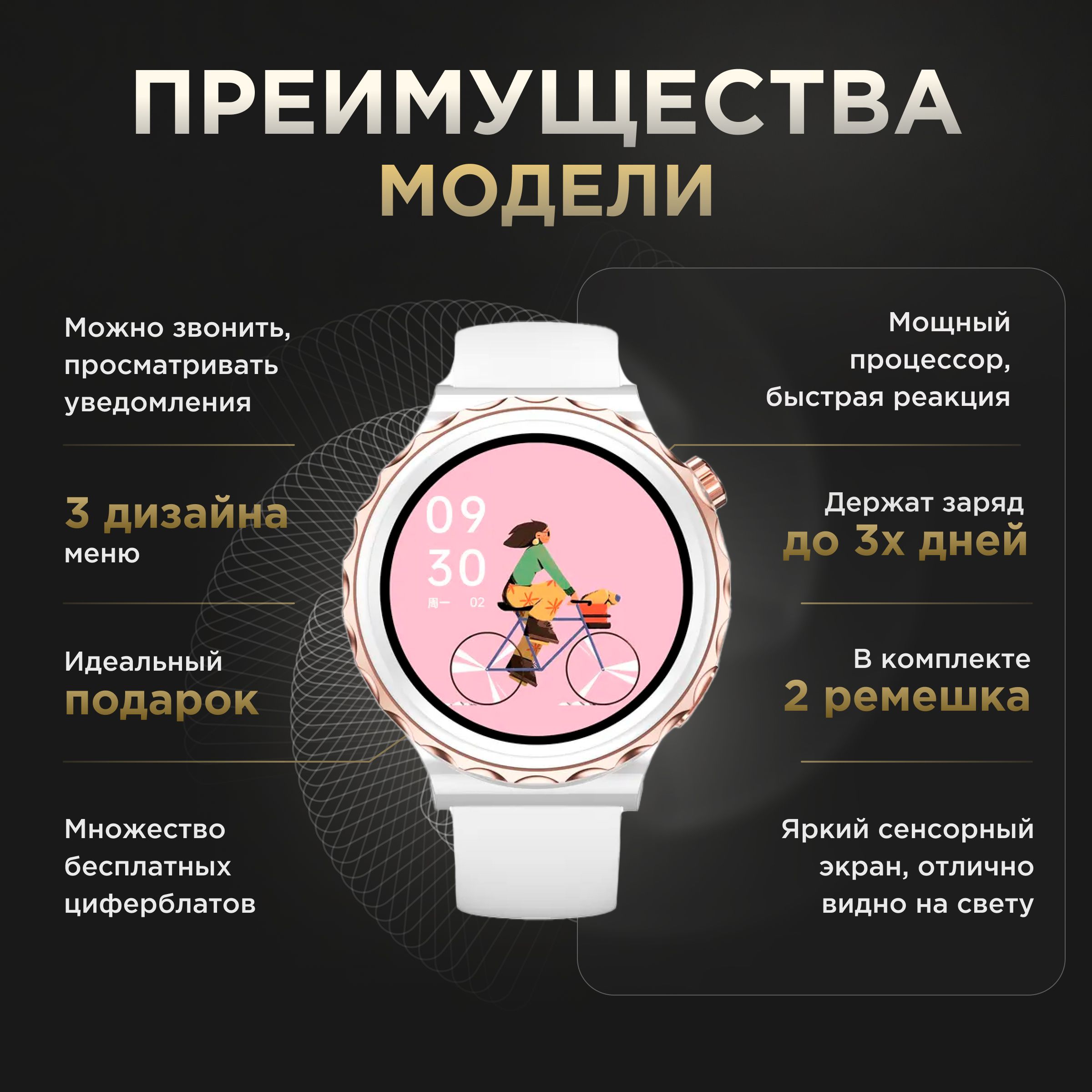 Смарт часы Smart Watch X6 Pro женские / элегантные / наручные / круглые/ с gps, телефоном / фитнес браслет / шагомер / электронные / умные часы c сенсорным экраном / 42mm /смарт вотч / счетчик калорий / Bluetooth / для IOS и Android / на русском /белые