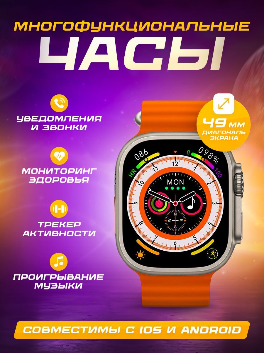 Смарт часы (SmartWatch) умные часы мужские, женские, 49mm, оранжевые