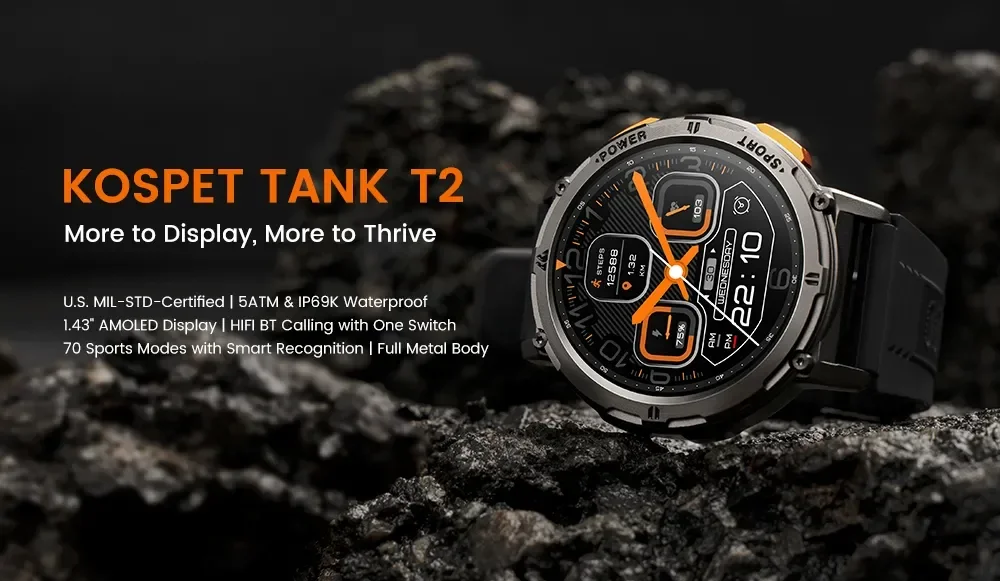 【Смарт-часы KOSPET TANK T2 с поддержкой 70 спортивных режимов и интеллектуальным распознаванием】
