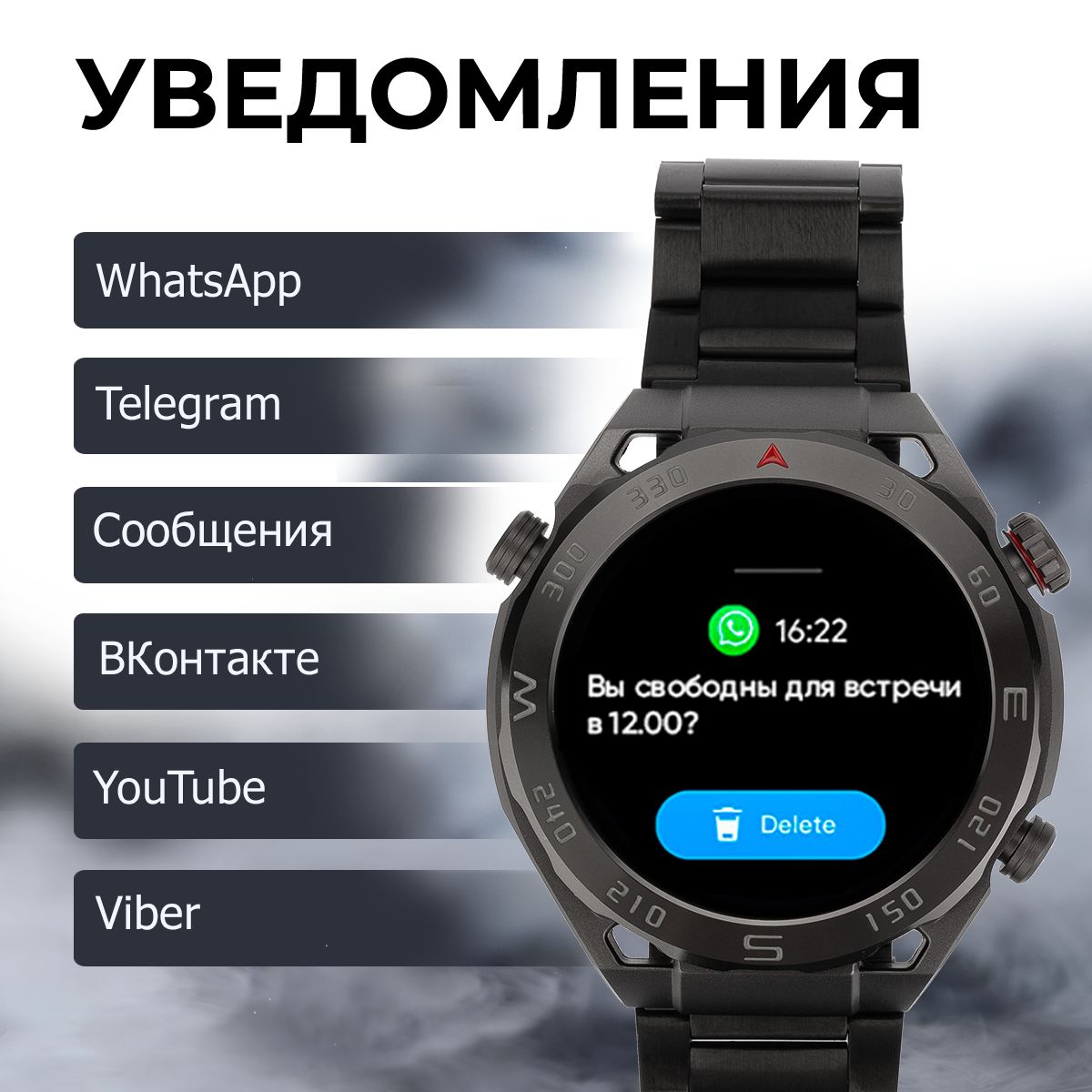 Звонки и уведомленияПросматривайте уведомления из мессенджеров и приложений прямо на ваших наручных часах.