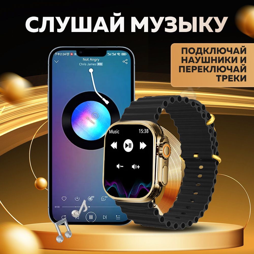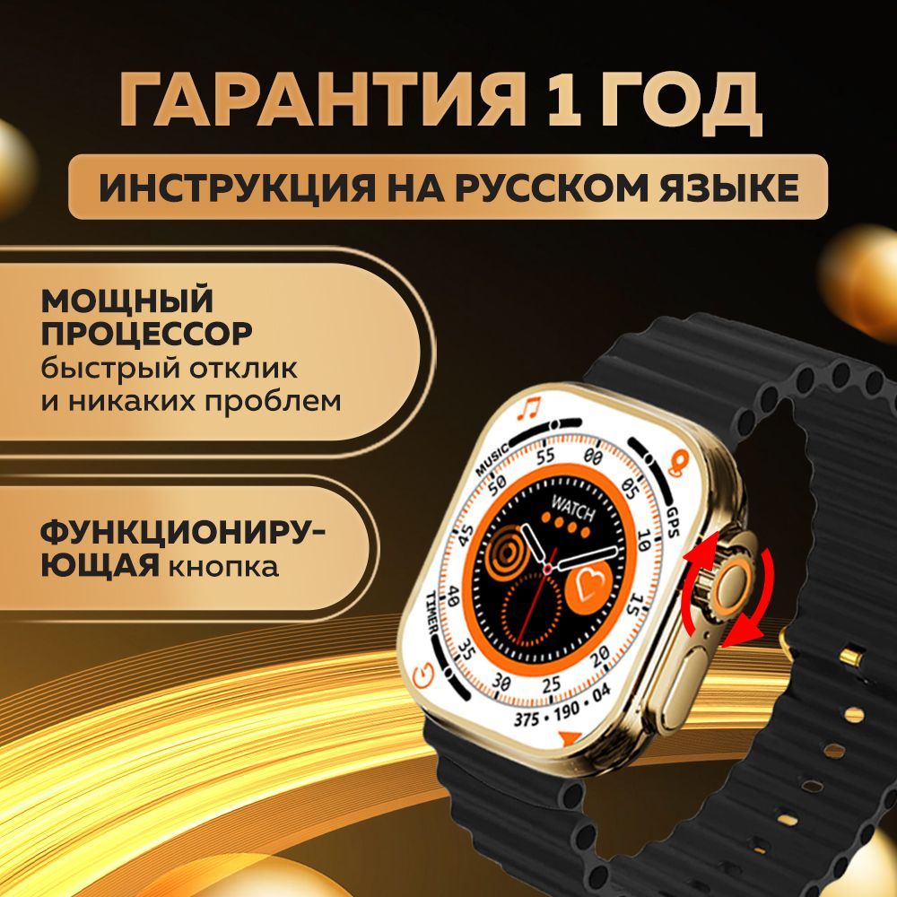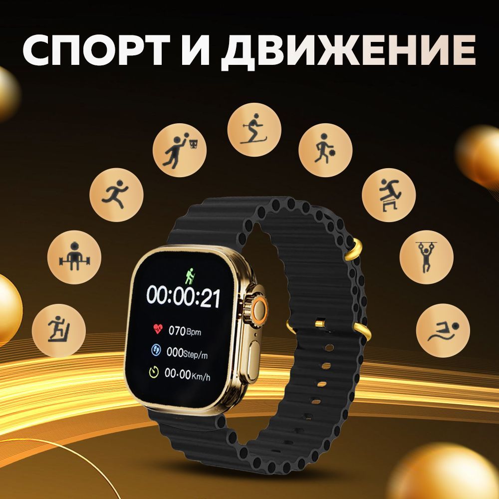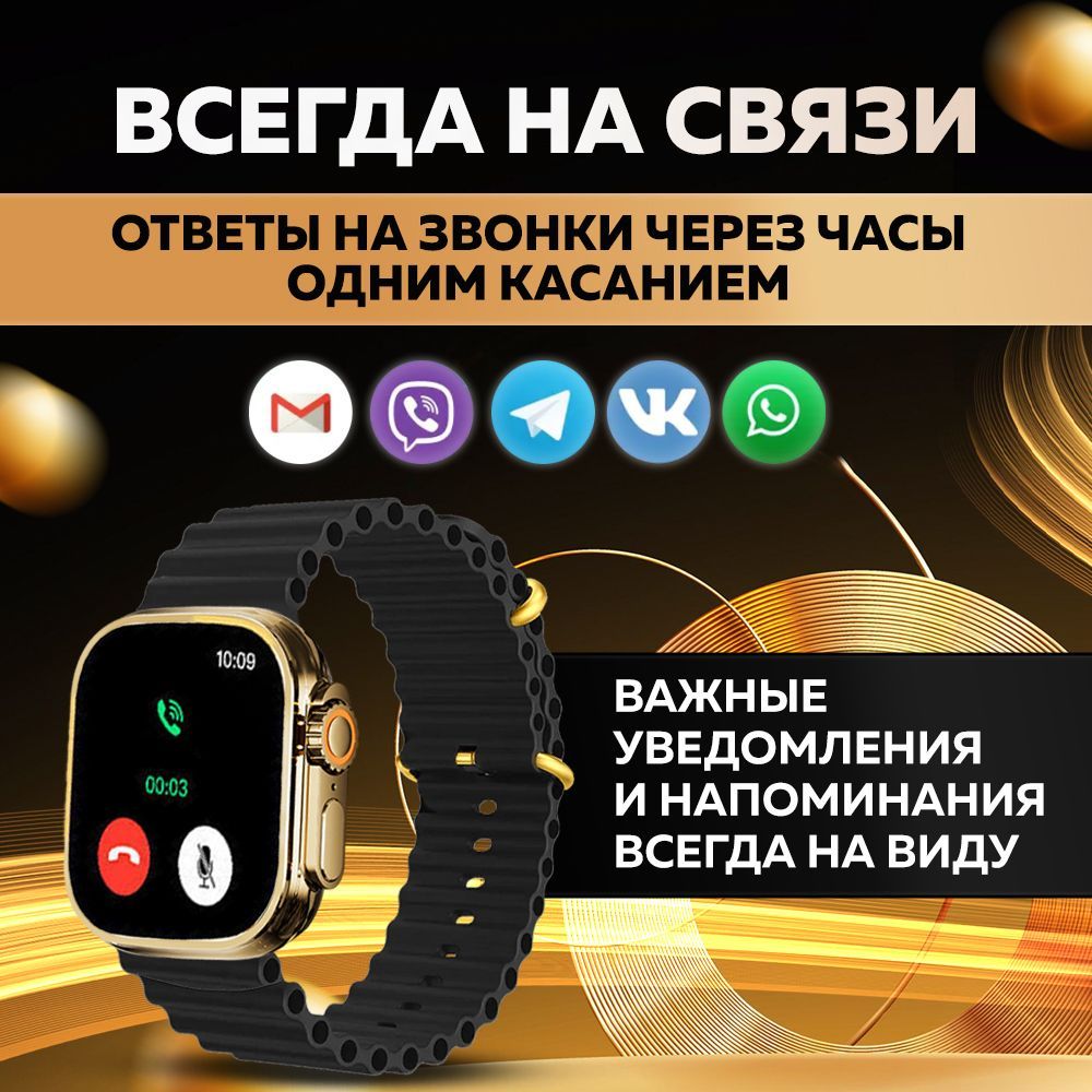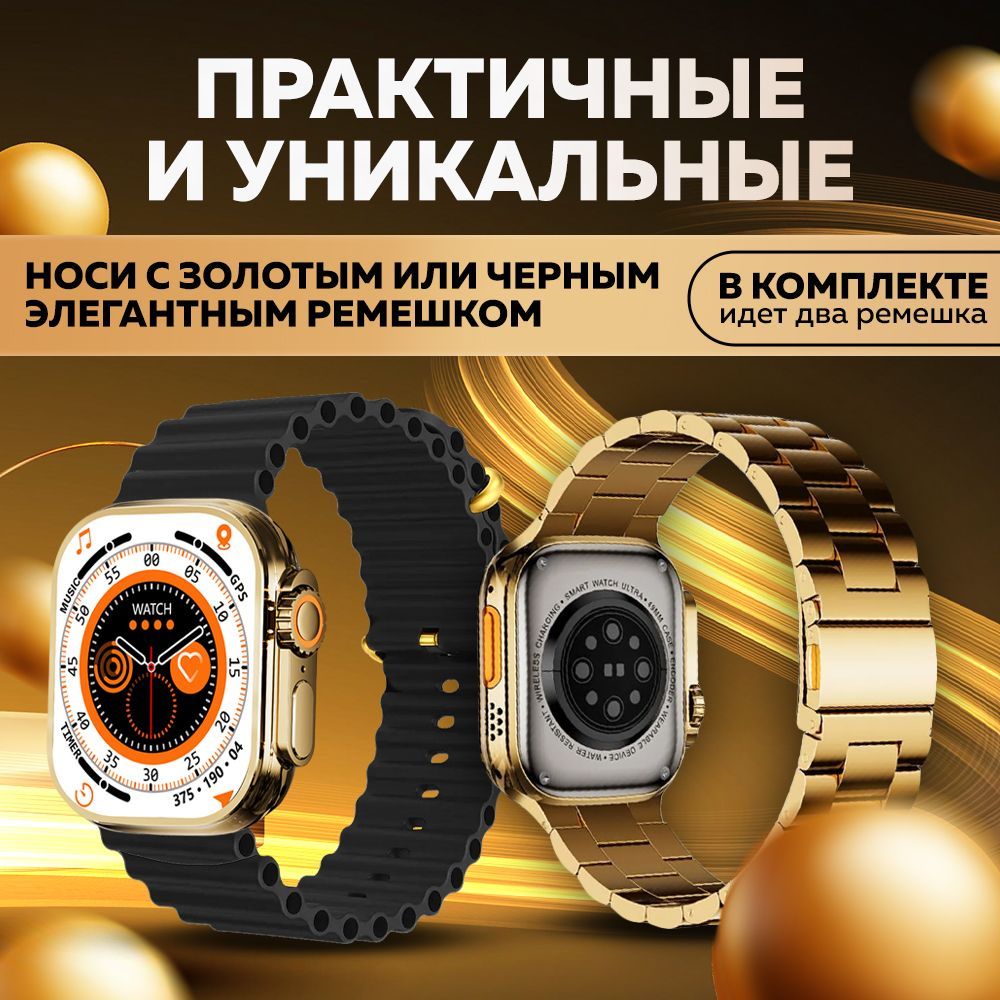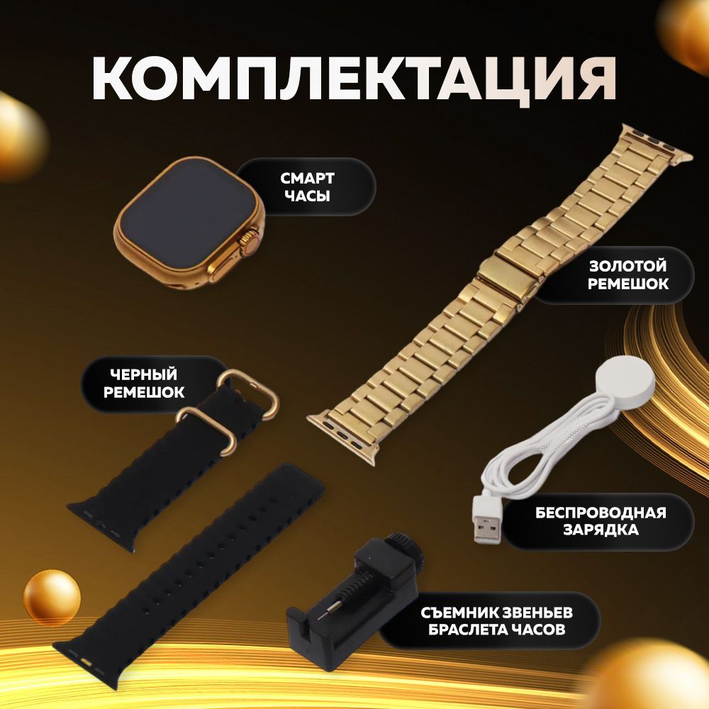 Смарт часы WatchPro Gold Black / Умные часы 49 мм, два съёмных ремешка, черный, золотой