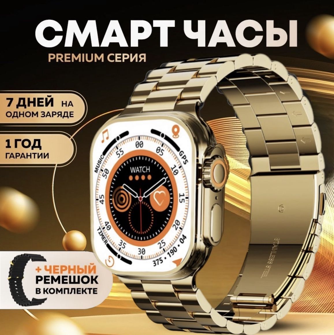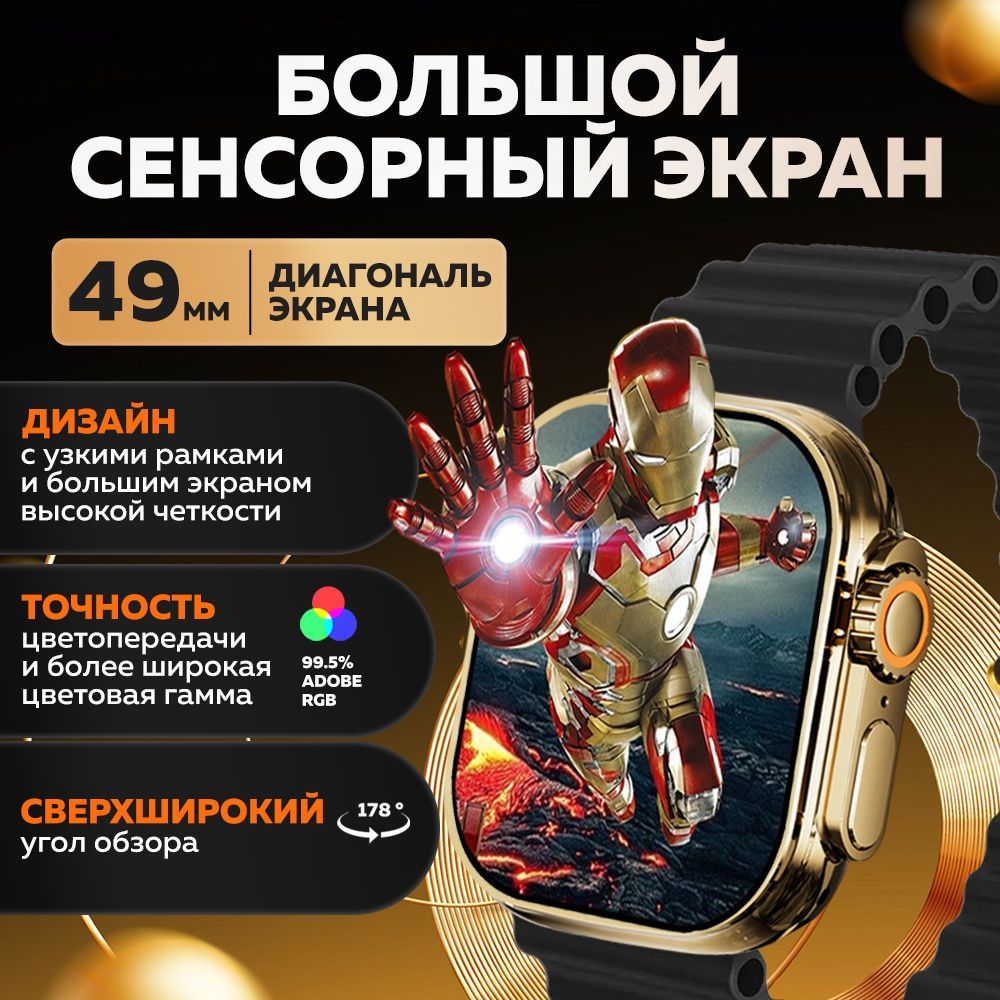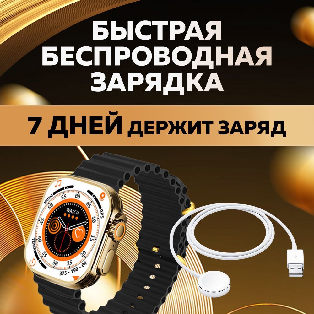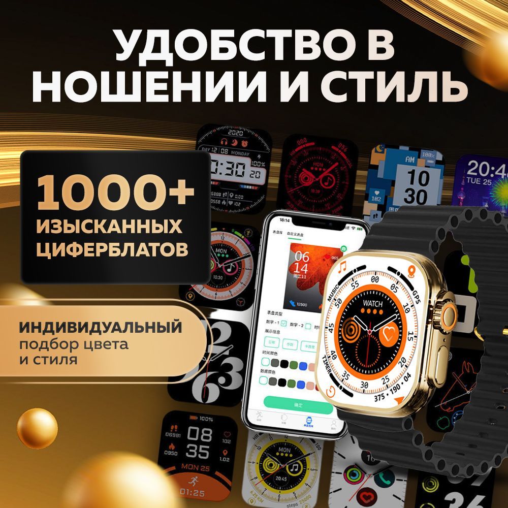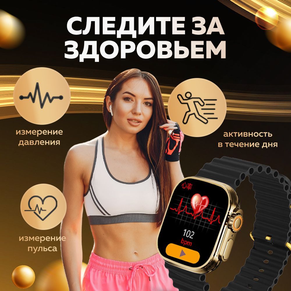 Смарт часы WatchPro Gold Black / Умные часы 49 мм, два съёмных ремешка, черный, золотой