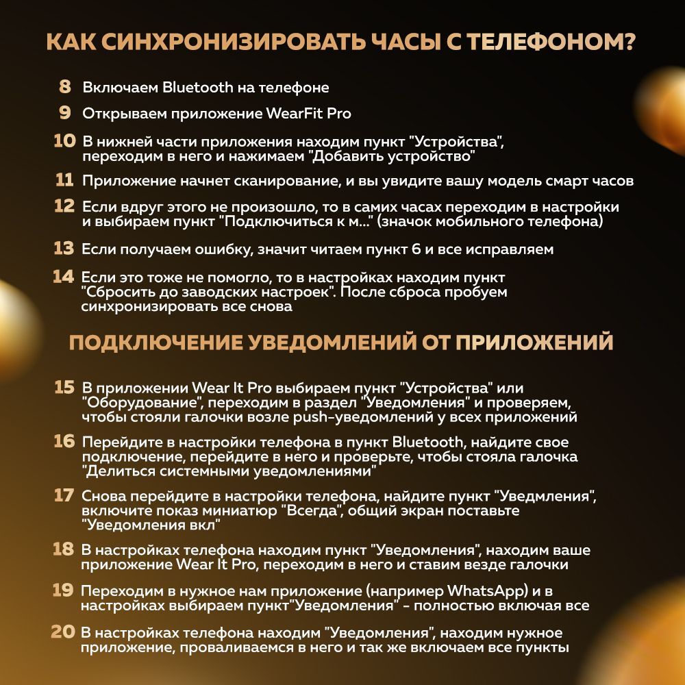 Смарт часы синхронизируются со смартфоном через Bluetooth после установки приложении «WEAR PRO».