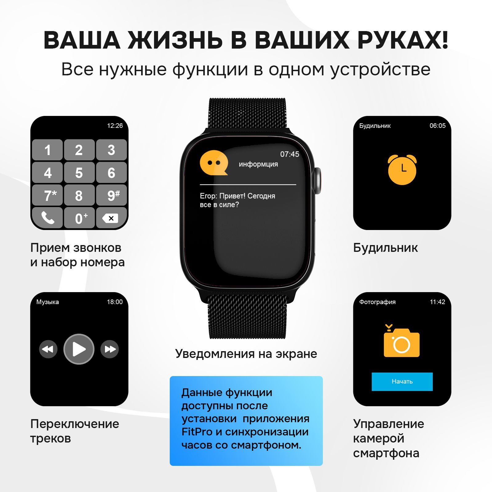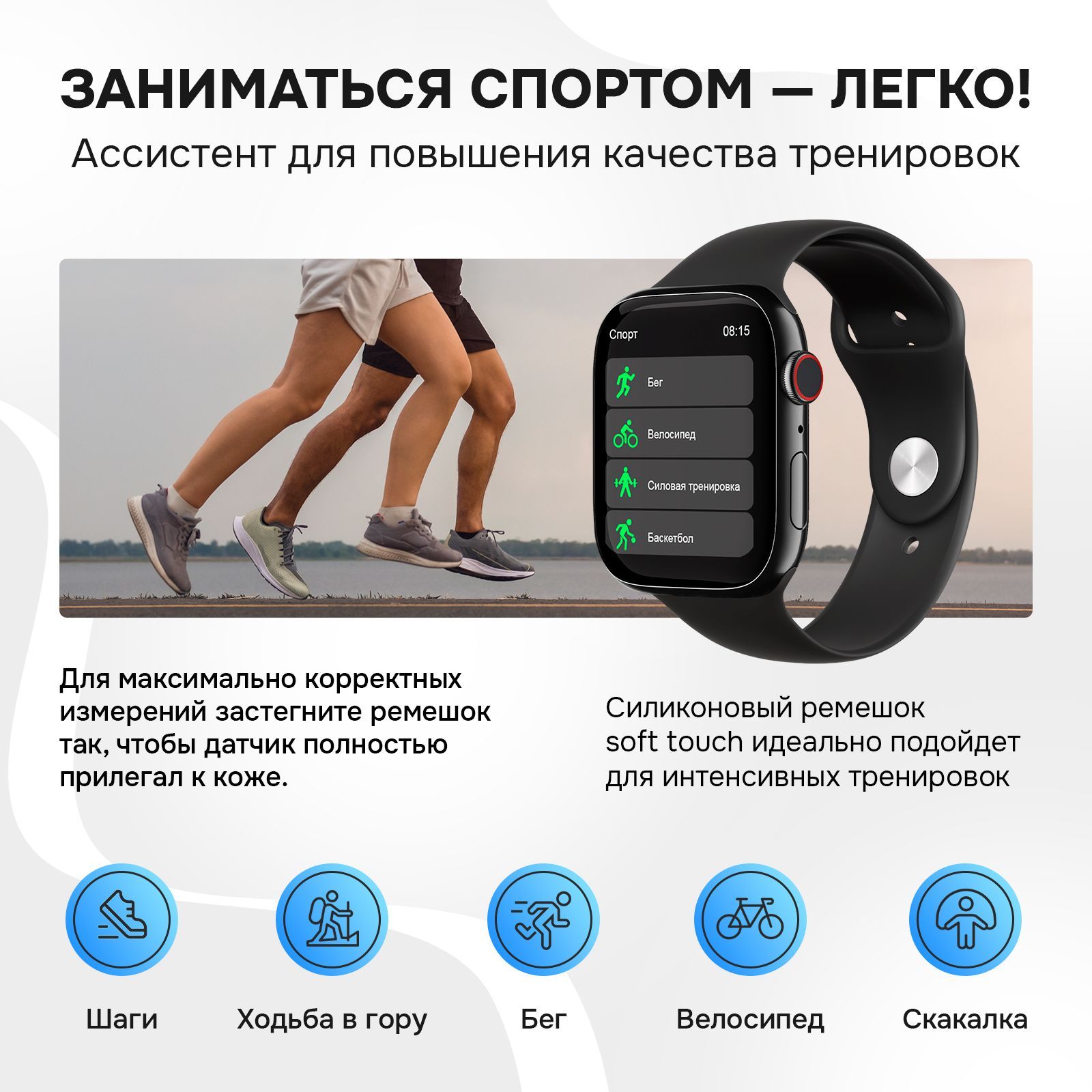 Описание: Смарт-часы сочетают в себе неподвластную времени функциональность наручных часов с передовыми интеллектуальными функциями, чтобы помочь вам оставаться на связи и вести здоровый образ жизни. Умные часы подойдут как для мужчин, так и для женщин. Наши смарт часы - это идеальный аксессуар для любого случая, будь то деловая встреча или спортивное соревнование. Благодаря изысканному и стильному дизайну, наши часы отлично смотрятся с любым нарядом, независимо от того, деловой или повседневный у вас образ. Это не просто наручные часы - это умные часы, оснащенные функциями, которые помогут сделать вашу жизнь проще и удобнее. Например, для любителей фитнеса такие часы служат одновременно фитнес-браслетом со встроенным шагомером и спортивными режимами, которые позволяют отслеживать ваши физические показатели и контролировать уровень вашей активности. А для тех, кому необходимо оставаться на связи в дороге, наши смарт часы на руку совместимы как с устройствами Android, так и с iOS, поэтому вы можете получать уведомления, совершать звонки и даже отправлять сообщения, даже не вынимая телефон из кармана. Такой современный умный девайс содержит в себе пульсометр, датчик с измерением давления, подсветку, а также функцию трекера и многие другими возможностями. Умные фитнес часы с блютузом будут полезным подарком для мужа, жены, сестры, брата, женщины, мужчины, подруги, друга, любимого, любимой, на Новый год, 23 февраля (День Защитника Отечества), 8 марта (Женский день), 14 февраля (День Святого Валентина), День Рождения.