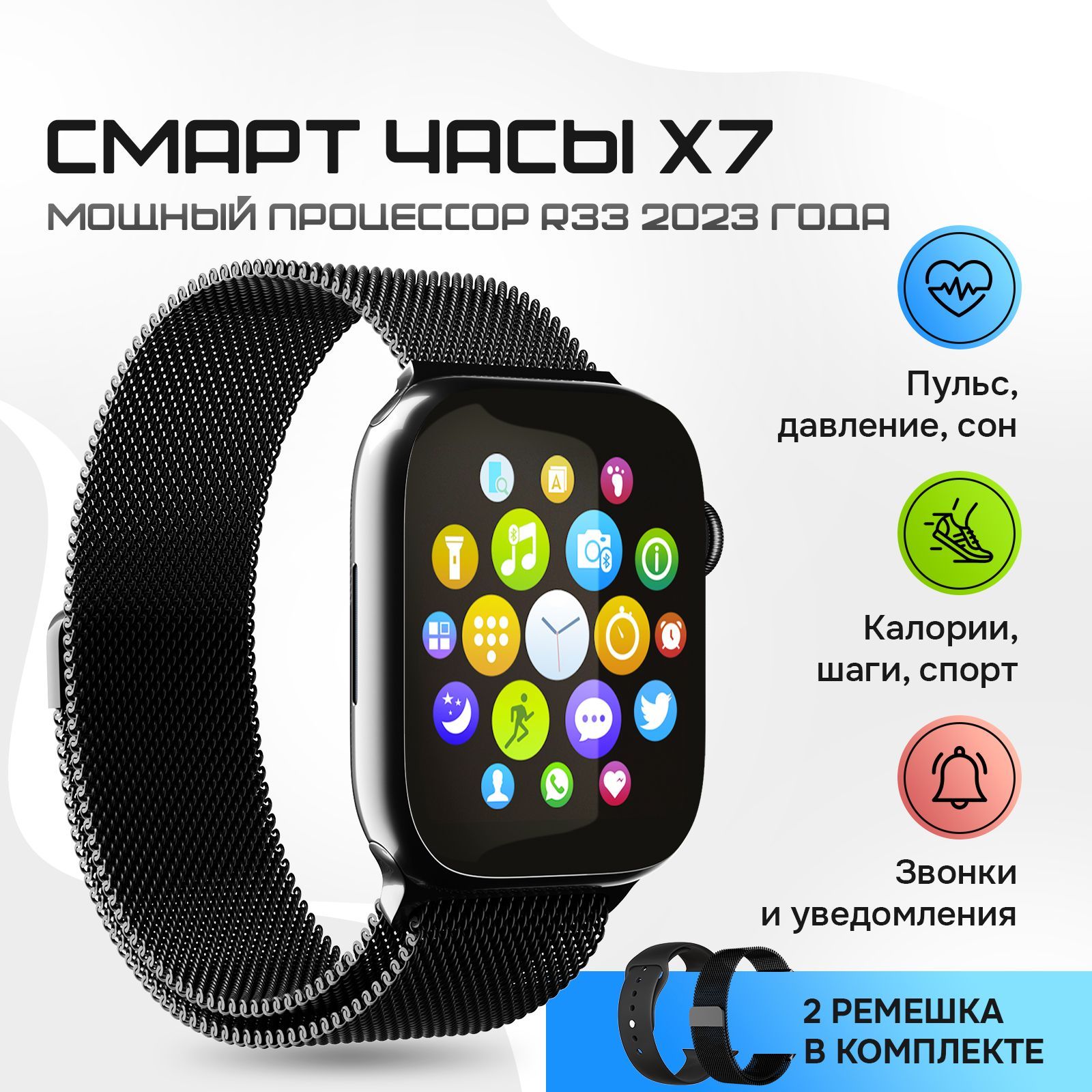 Смарт часы X серии с металлическим ремешком женские, мужские / Умные фитнес смартчасы электронные с блютуз / Спортивный сенсорный цифровой браслет / Шагомер / Пульсоксиметр / Пульсометр / Мониторинг сна