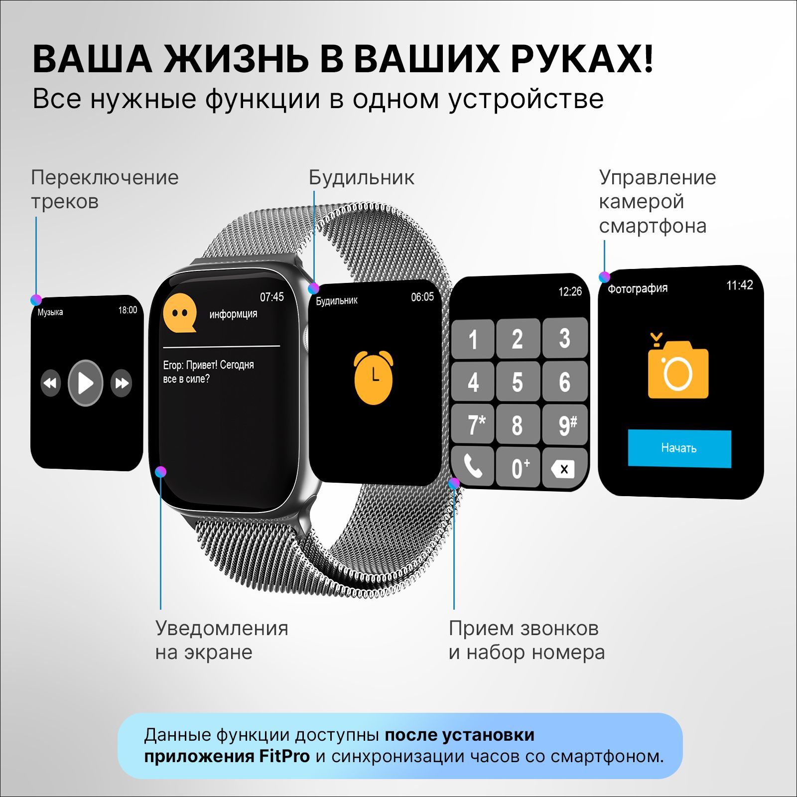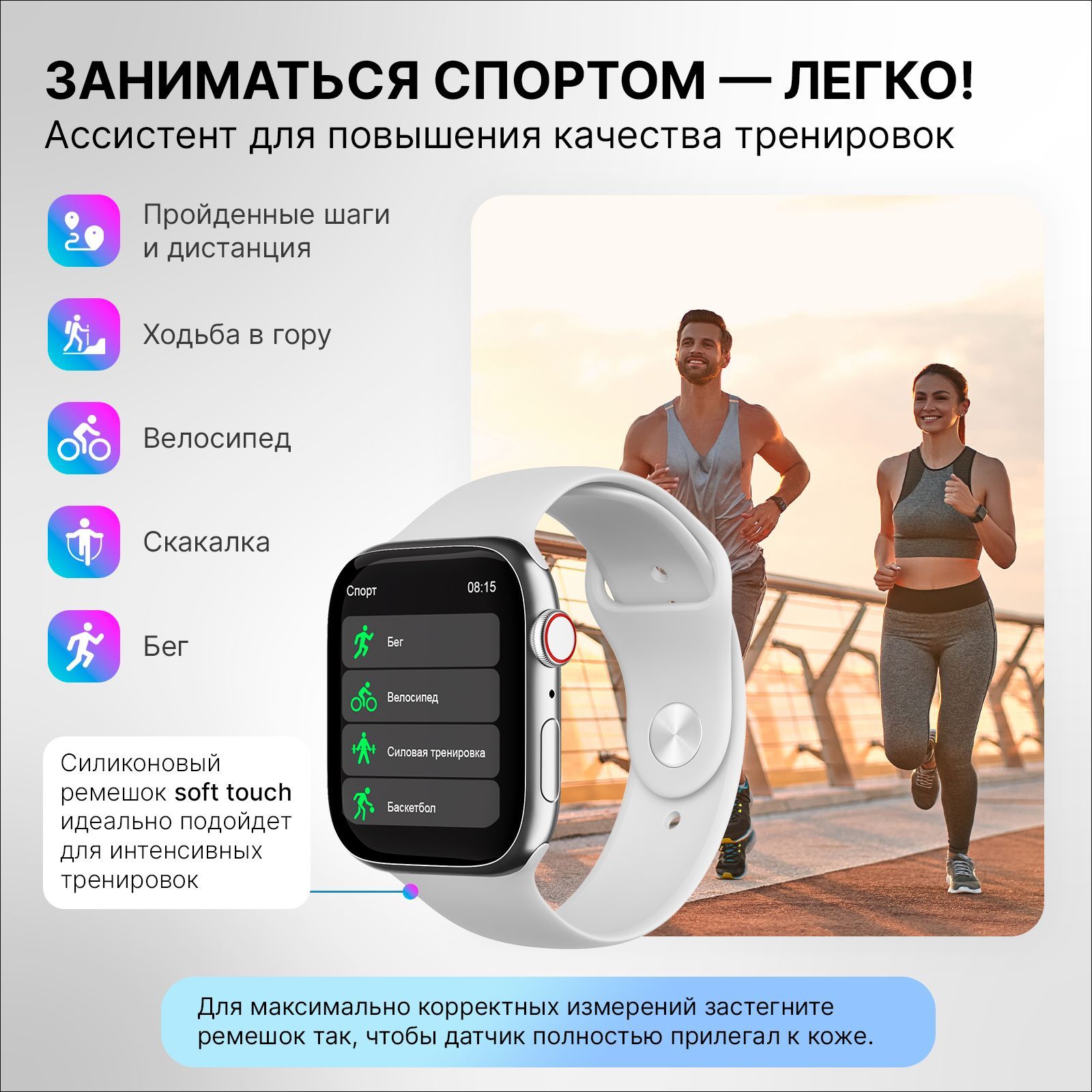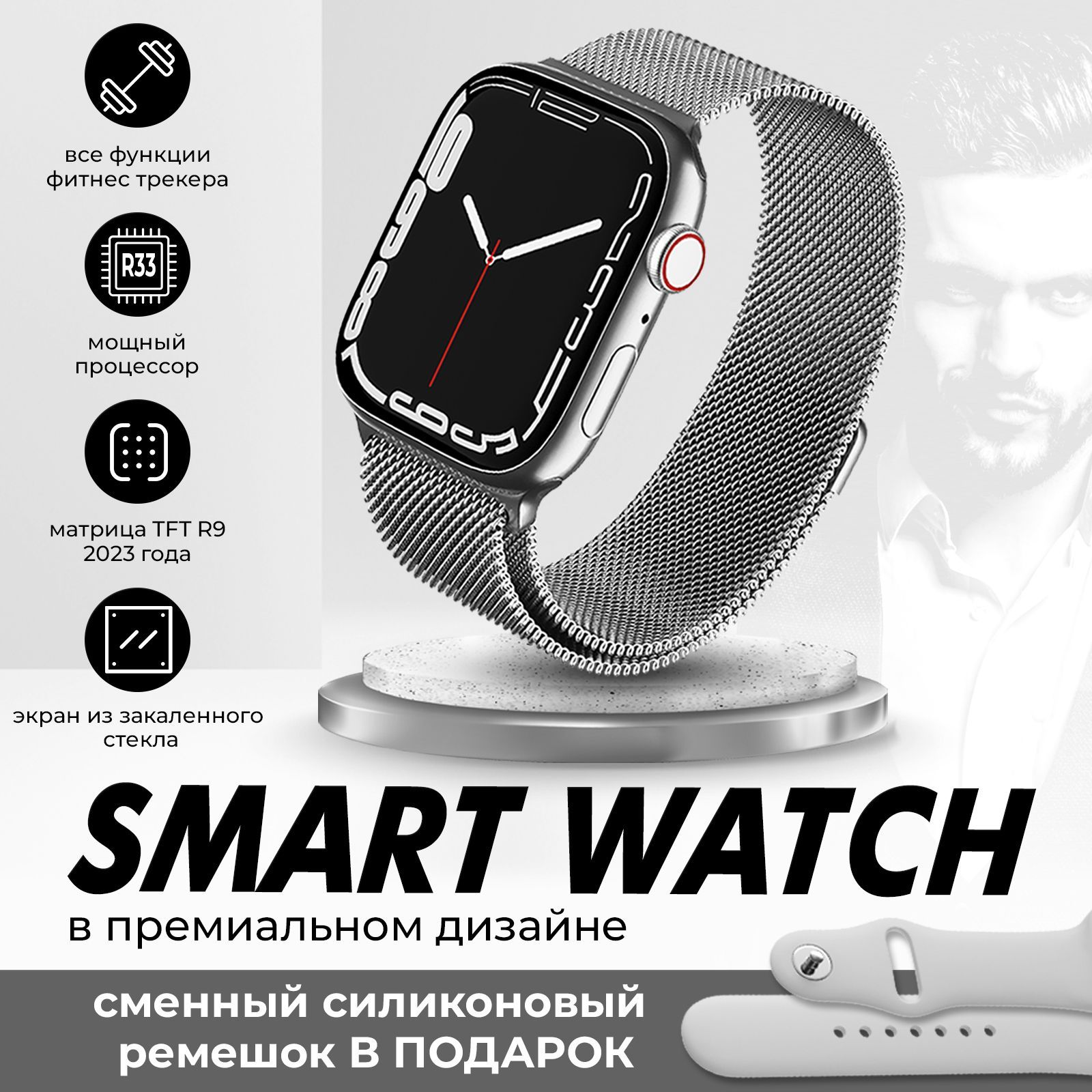 Описание: Смарт-часы сочетают в себе неподвластную времени функциональность наручных часов с передовыми интеллектуальными функциями, чтобы помочь вам оставаться на связи и вести здоровый образ жизни. Умные часы подойдут как для мужчин, так и для женщин. Наши смарт часы - это идеальный аксессуар для любого случая, будь то деловая встреча или спортивное соревнование. Благодаря изысканному и стильному дизайну, наши часы отлично смотрятся с любым нарядом, независимо от того, деловой или повседневный у вас образ. Это не просто наручные часы - это умные часы, оснащенные функциями, которые помогут сделать вашу жизнь проще и удобнее. Например, для любителей фитнеса такие часы служат одновременно фитнес-браслетом со встроенным шагомером и спортивными режимами, которые позволяют отслеживать ваши физические показатели и контролировать уровень вашей активности. А для тех, кому необходимо оставаться на связи в дороге, вы можете получать уведомления, совершать звонки и даже отправлять сообщения, даже не вынимая телефон из кармана. Такой современный умный девайс содержит в себе пульсометр, датчик с измерением давления, подсветку, а также функцию трекера и многие другими возможностями. Умные фитнес часы с блютузом будут полезным подарком для мужа, жены, сестры, брата, женщины, мужчины, подруги, друга, любимого, любимой, на Новый год, 23 февраля (День Защитника Отечества), 8 марта (Женский день), 14 февраля (День Святого Валентина), День Рождения.
