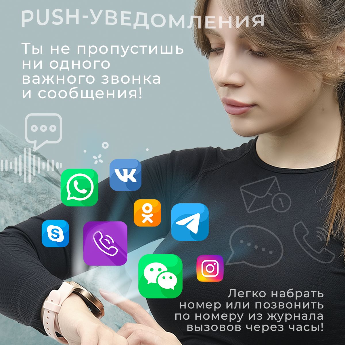 Оповещения: Сообщения, уведомление с телефона, входящие звонки, голосовой помощник