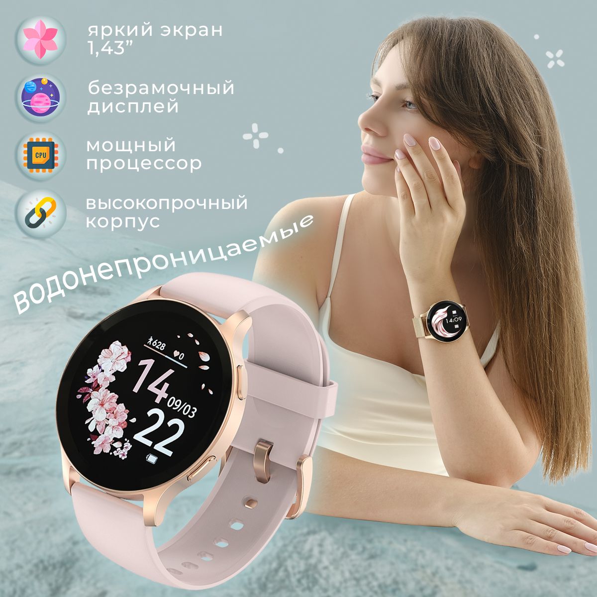 Смарт часы женские круглые smаrt wаtch / умные часы наручные с функцией звонка / смарт-часы для смартфона / водонепроницаемые электронные спортивные фитнес часы