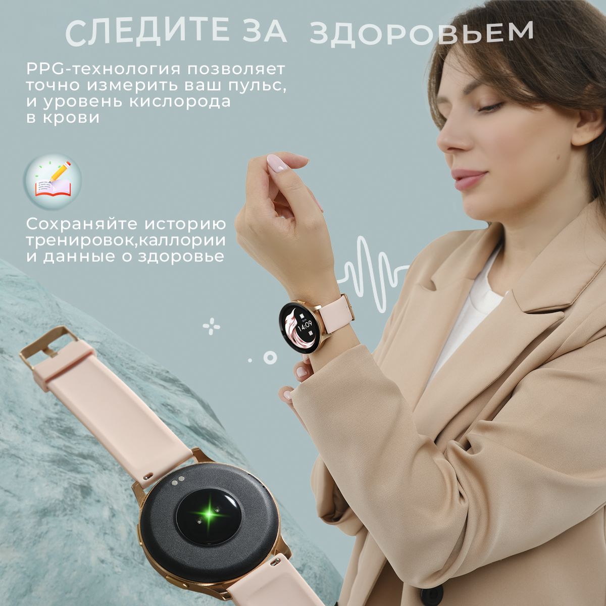* Данный товар не является медицинским прибором, не рекомендуется ориентироваться на их показания в медицинских целях. (В часах отсутствует датчик измерения артериального давления)