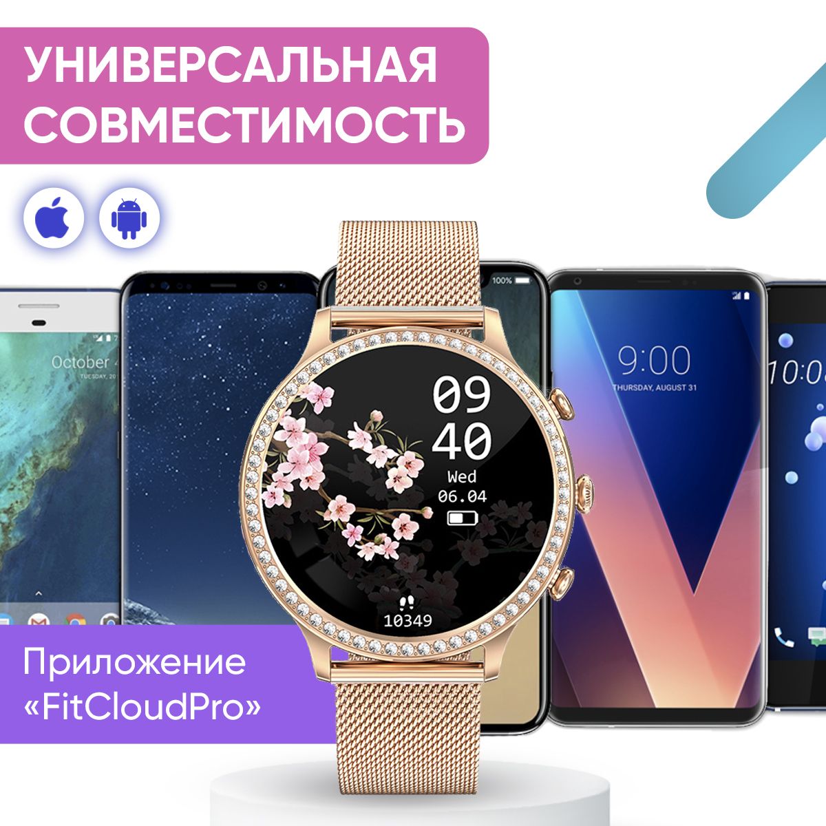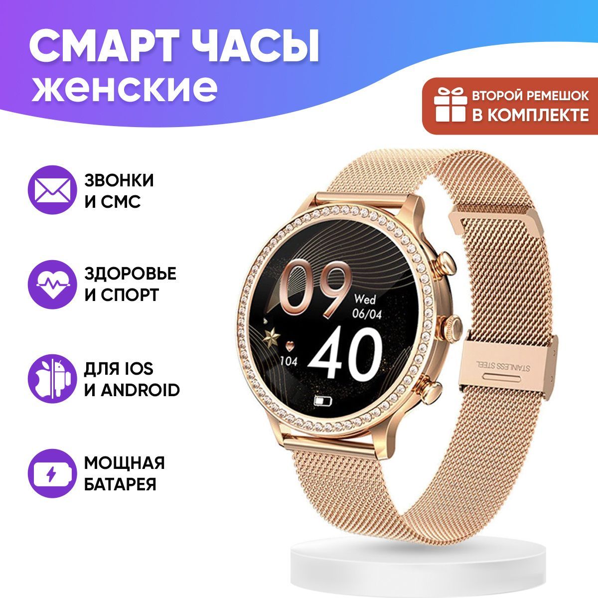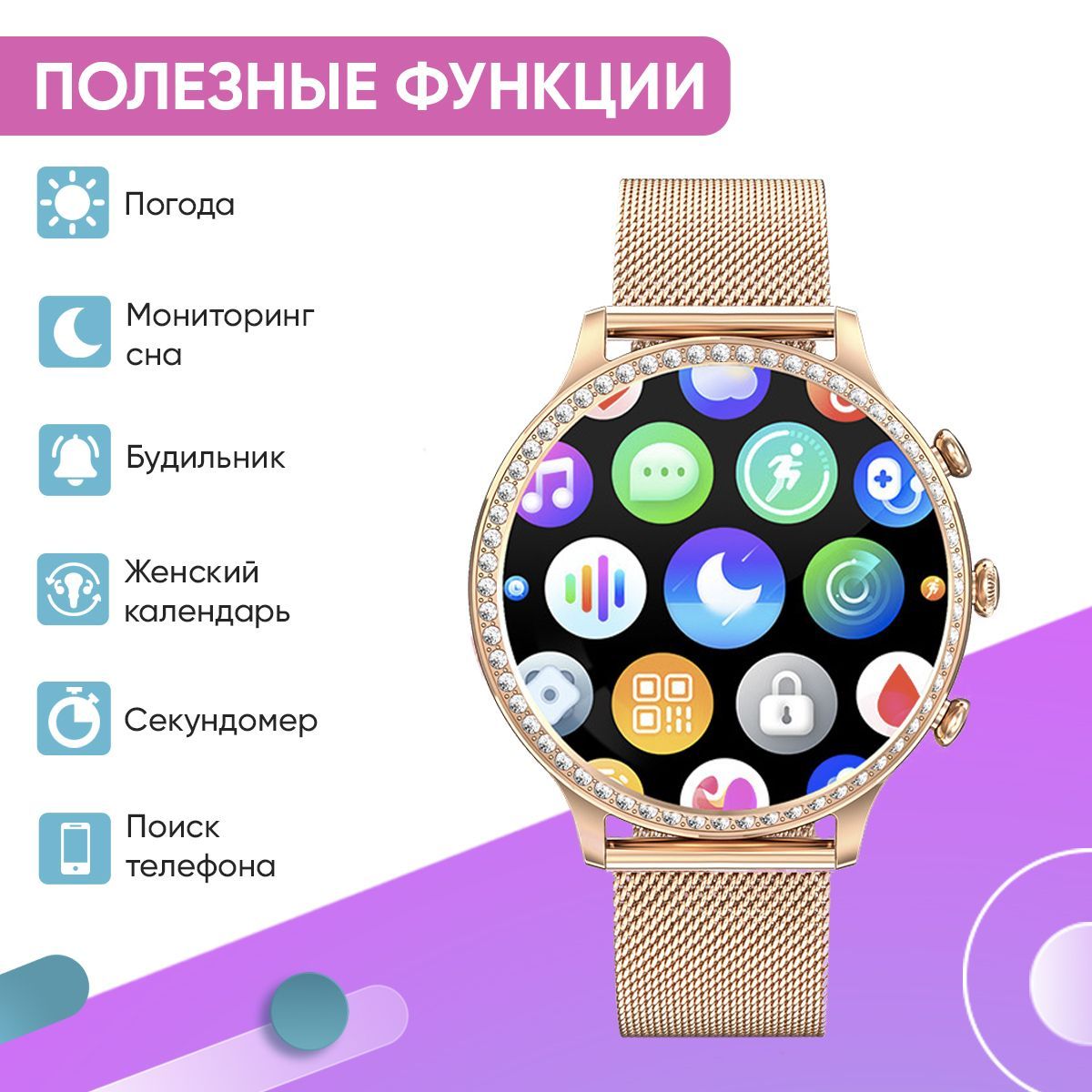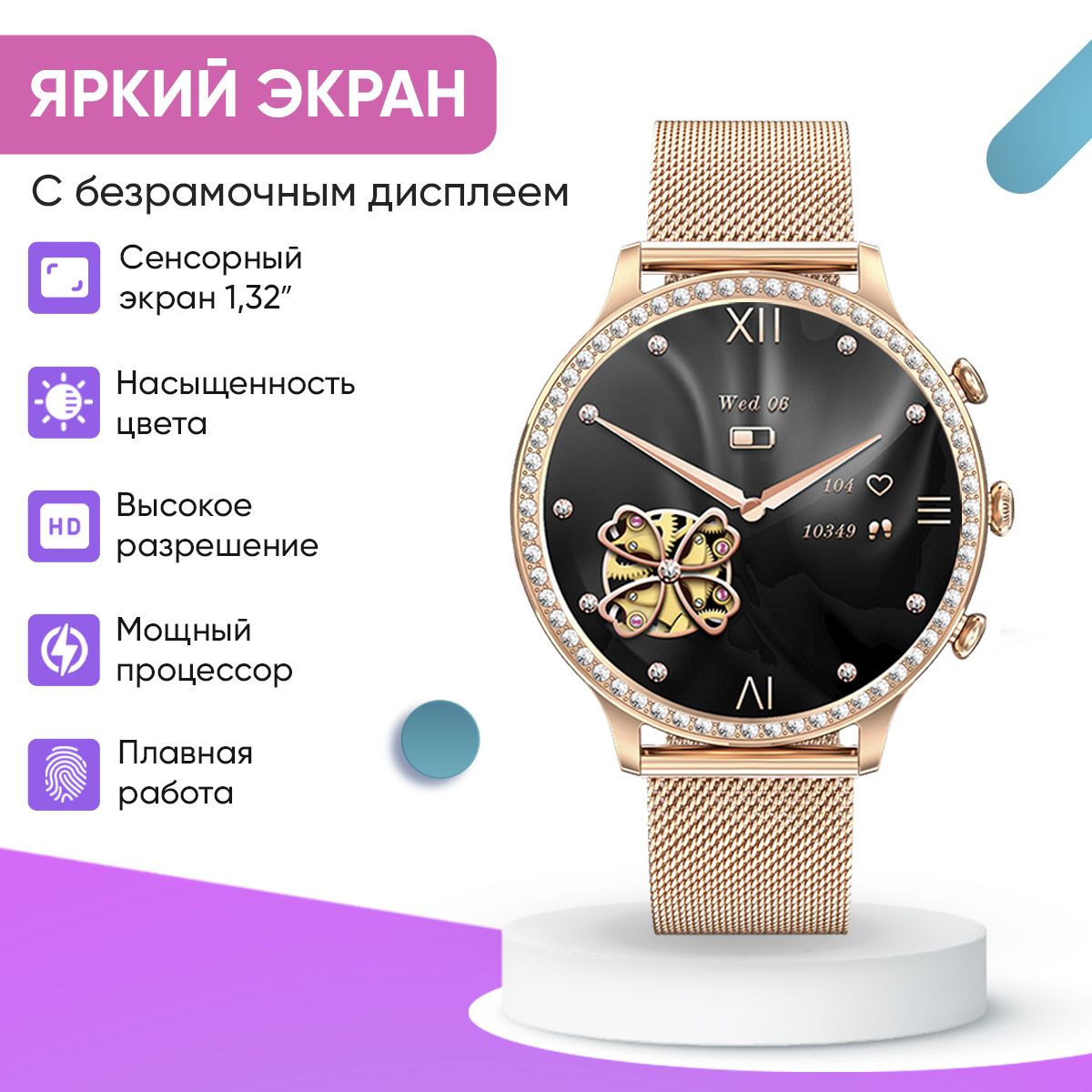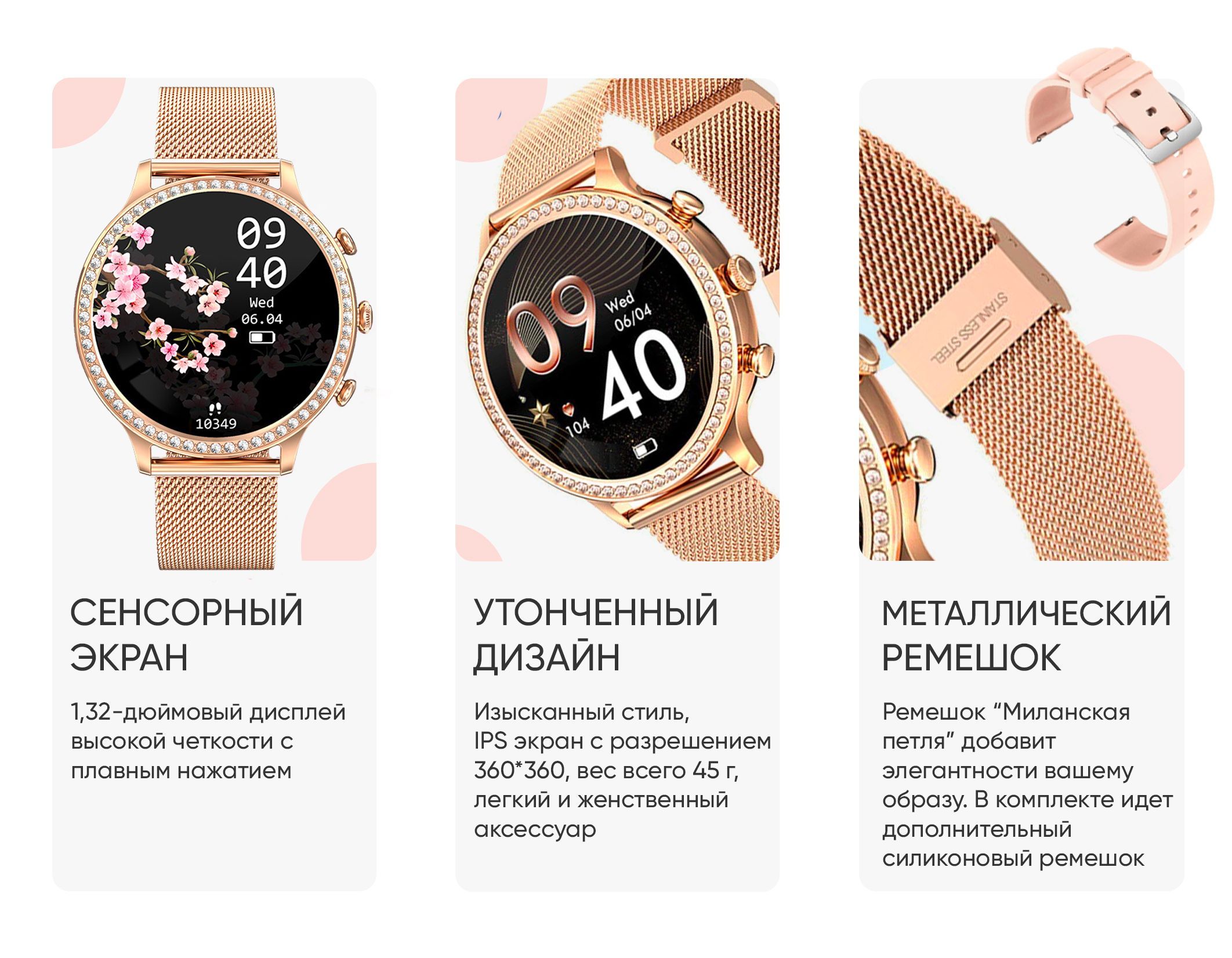 Смарт часы женские WatchMe / Умные наручные круглые smart watch / Спортивные электронные водонепроницаемые фитнес часы для телефона смартфона