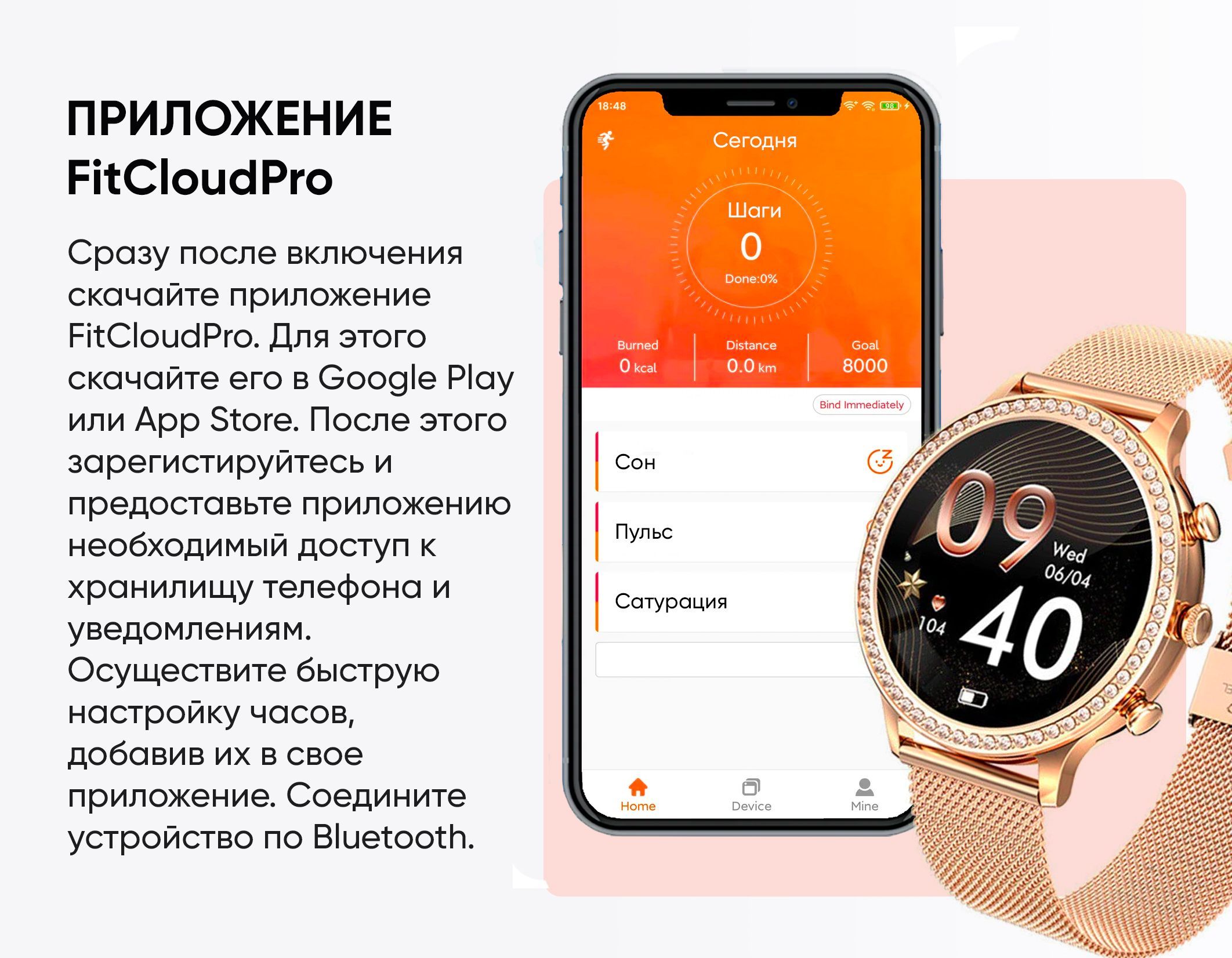 Мониторинг: Сна, Сердечного ритма, Усвоения калорий, Физической активности