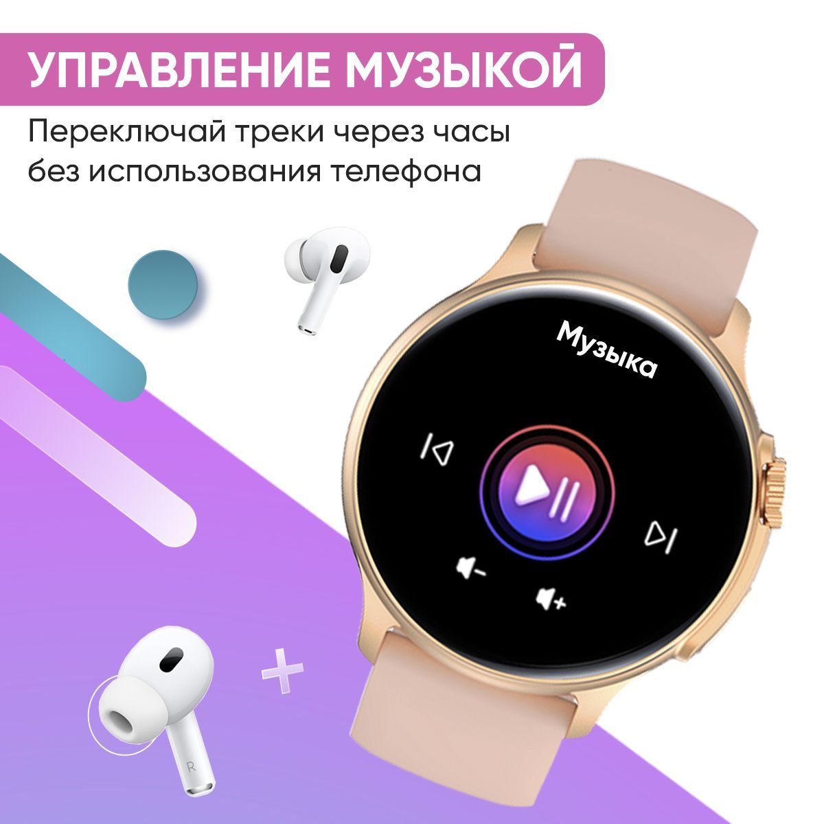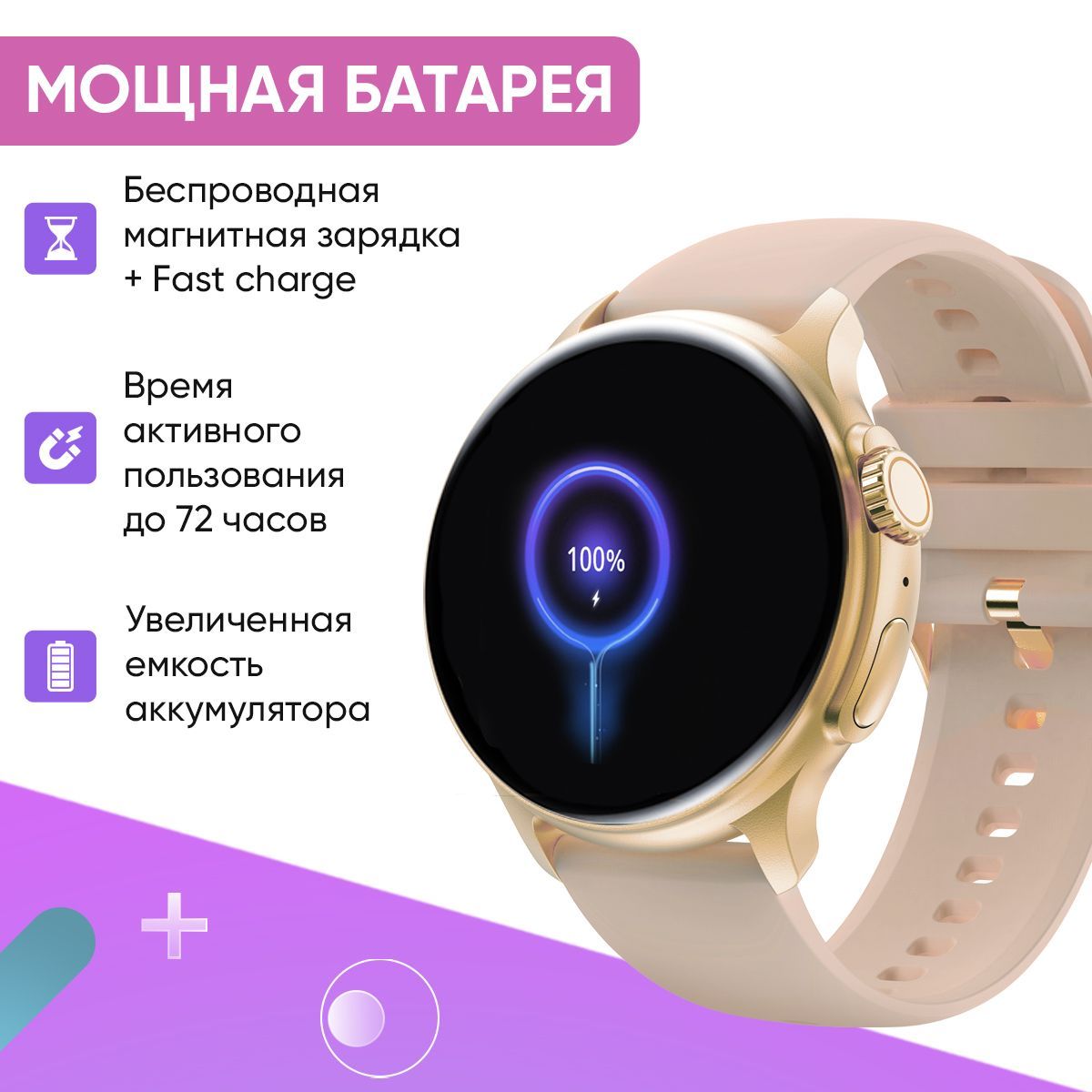 Цвет ремешка Золотой, Пудровый