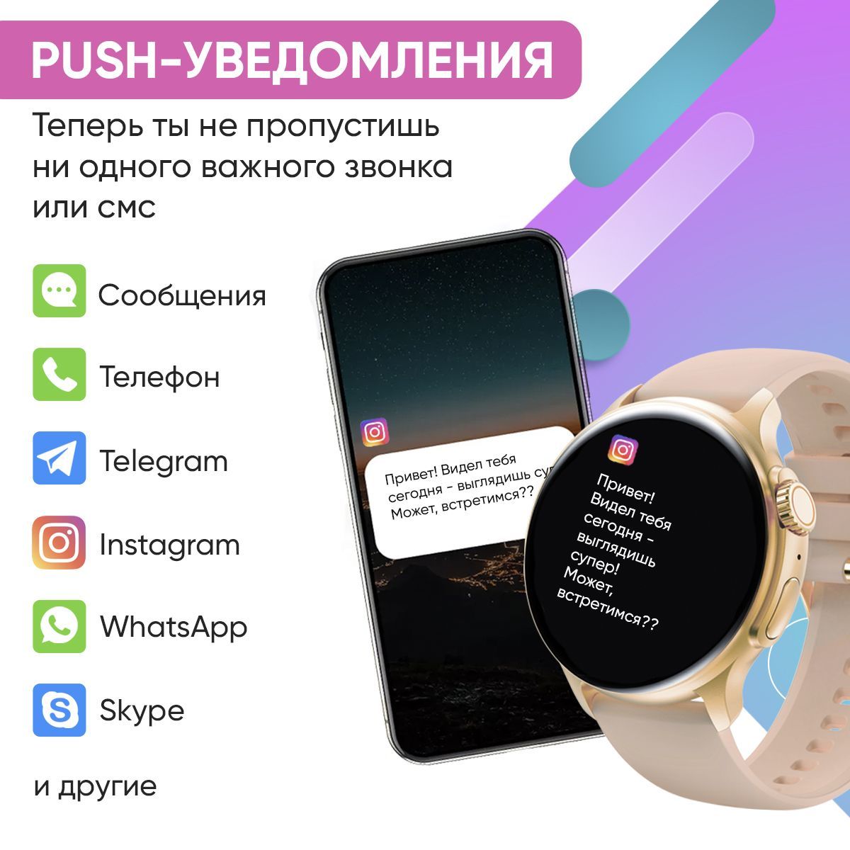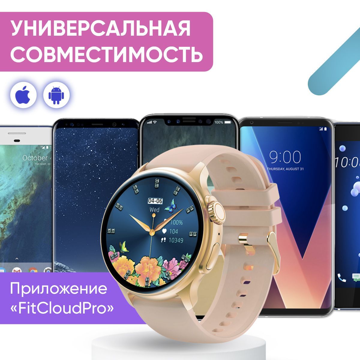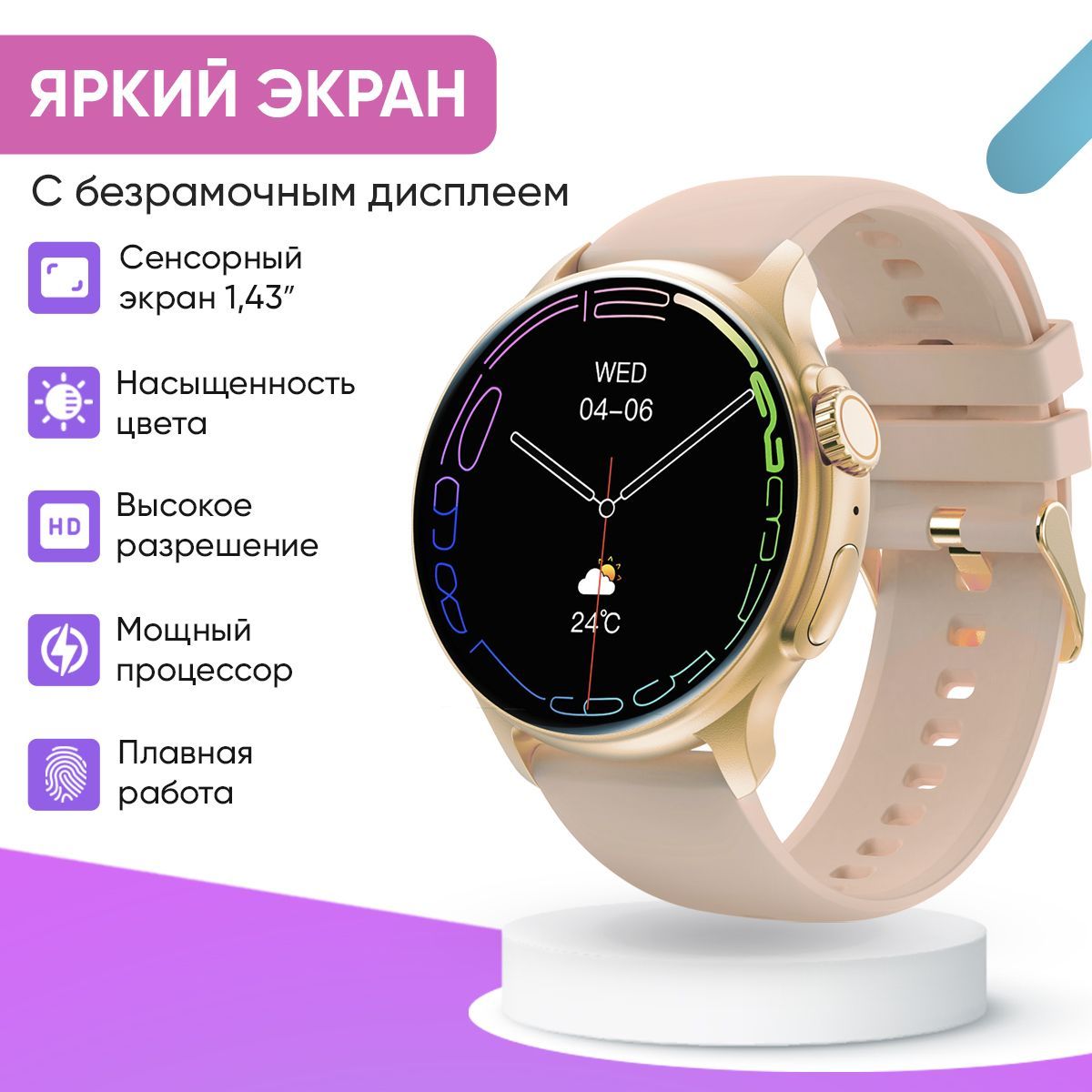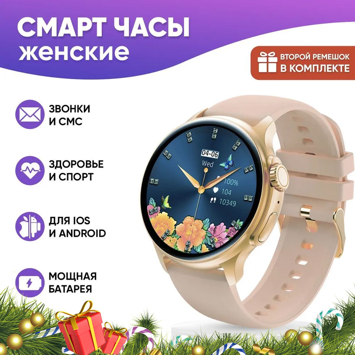 Смарт часы женские WatchMe / Умные наручные круглые smart watch / Спортивные электронные водонепроницаемые фитнес часы для телефона смартфона