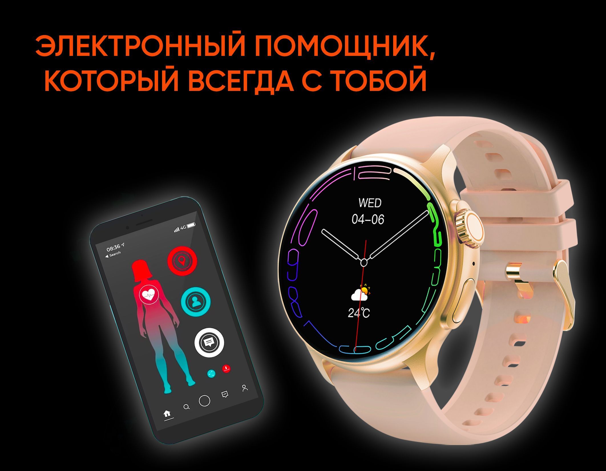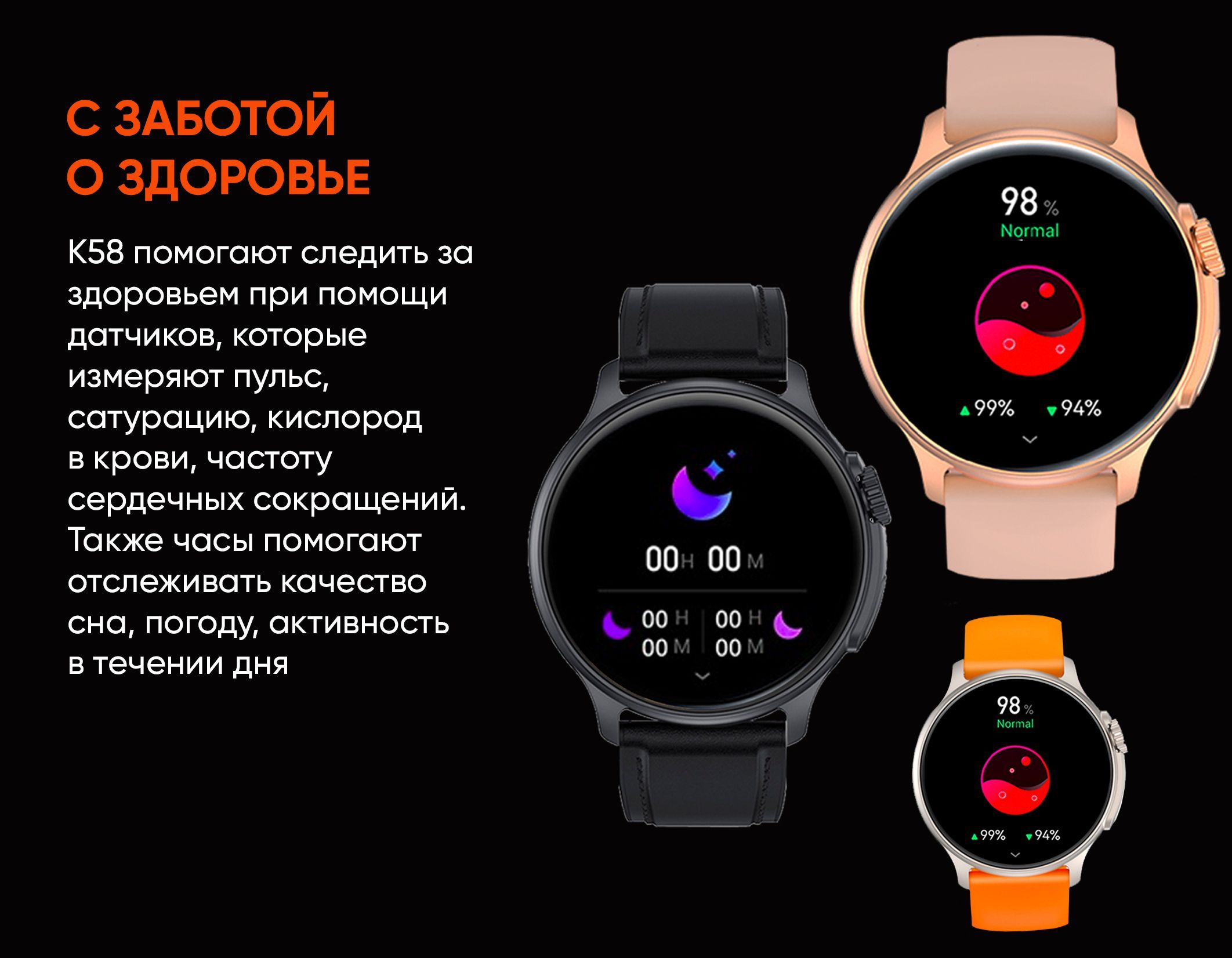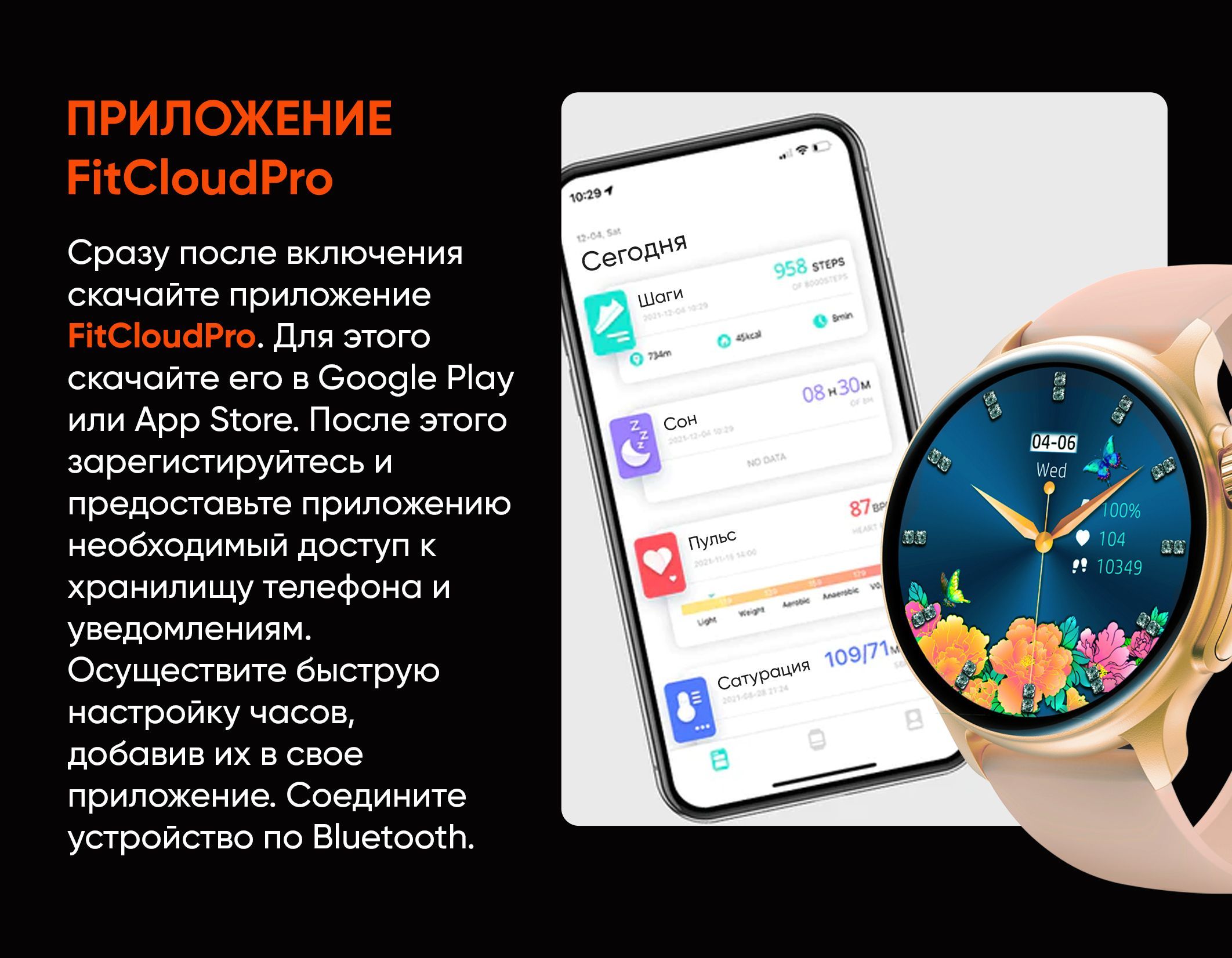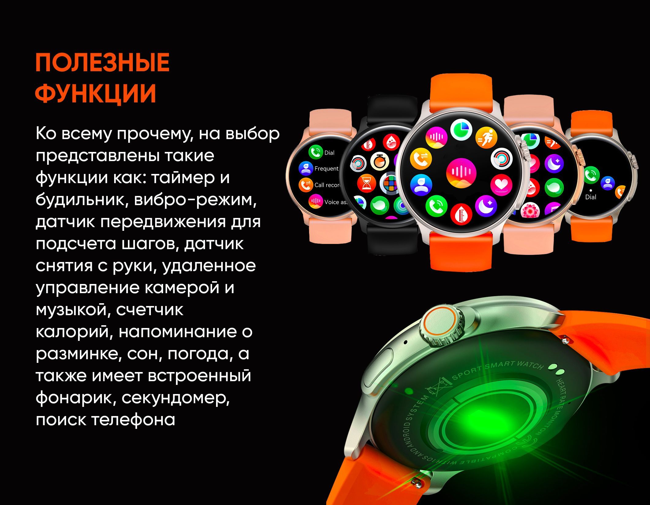Мониторинг: Сердечного ритма, Сна, Усвоения калорий, Физической активности