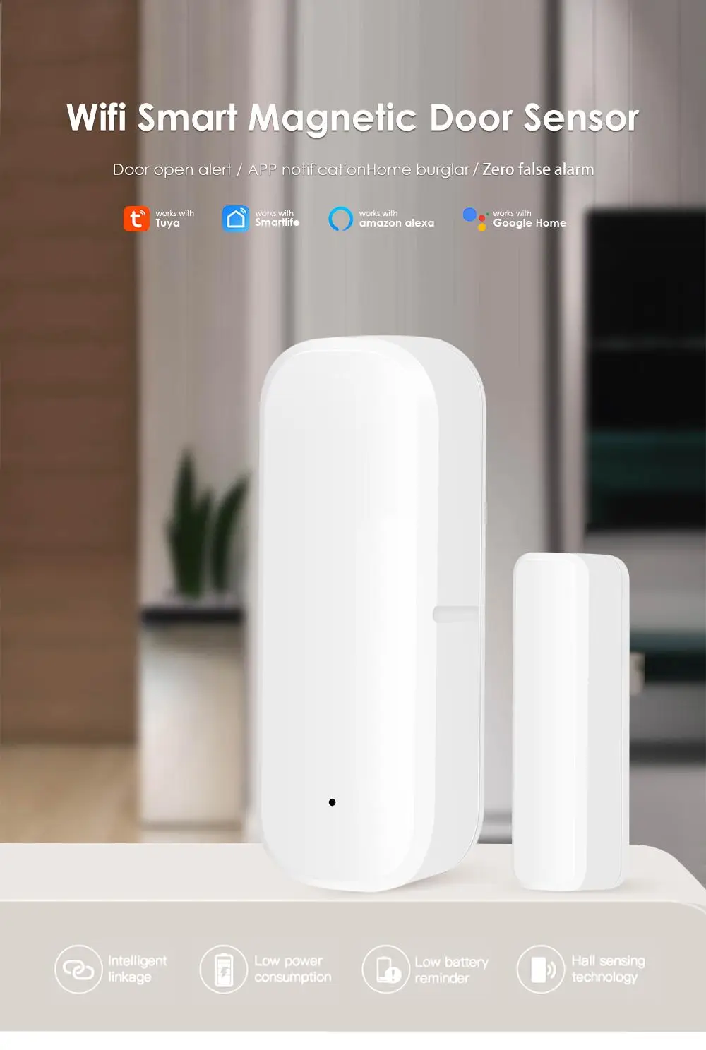 Смарт-датчик для окон и дверей Aubess Tuya, Wi-Fi детекторы открывания/закрытия дверей, работает с Google Home Alexa