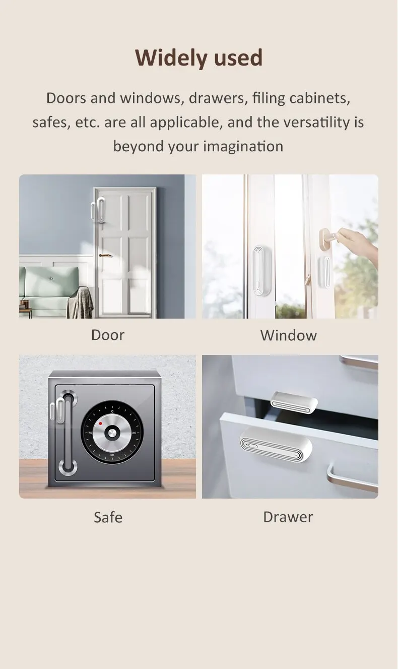 Легко установить]Небольшой Размер, простота установки Клейкая установка, может гибко размещаться в различных дверях, окнах, ящиках и т. Д., Не разрушая внешний вид и структуру оригинальной мебели.