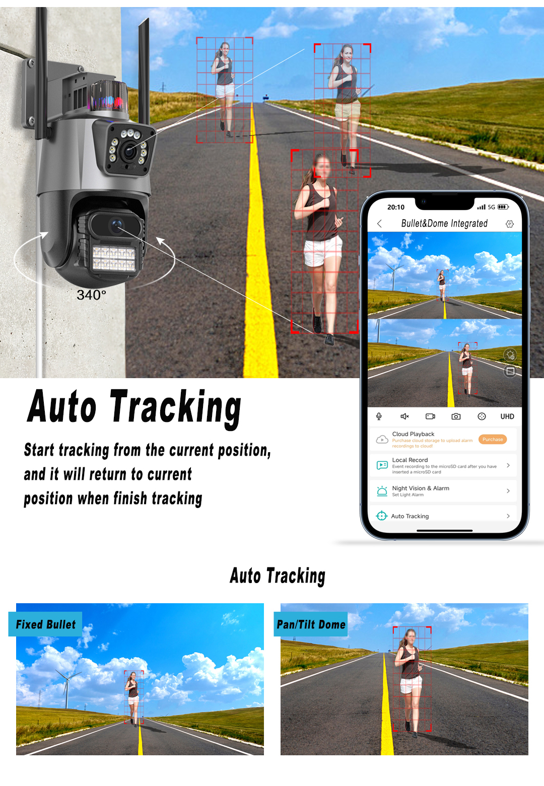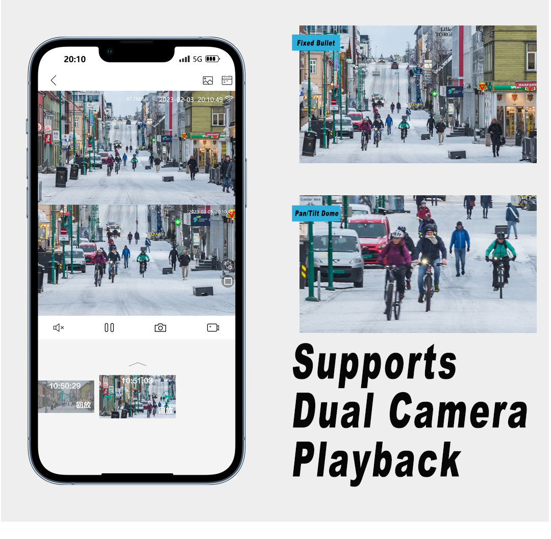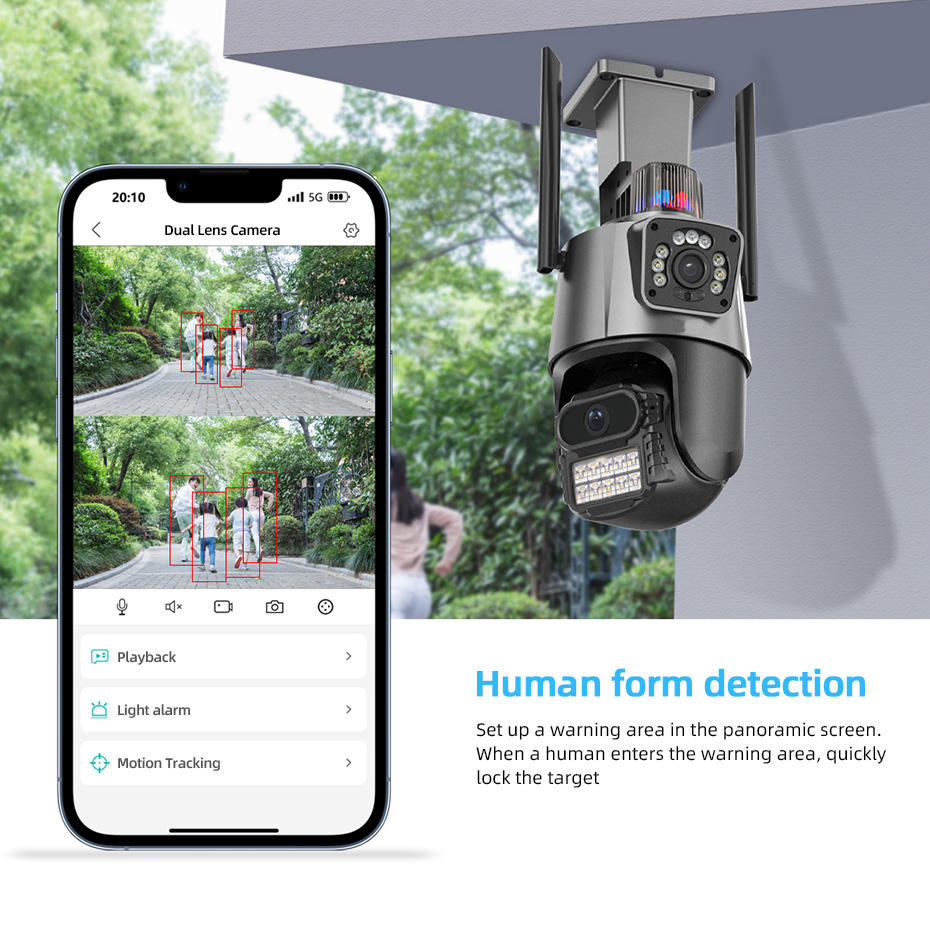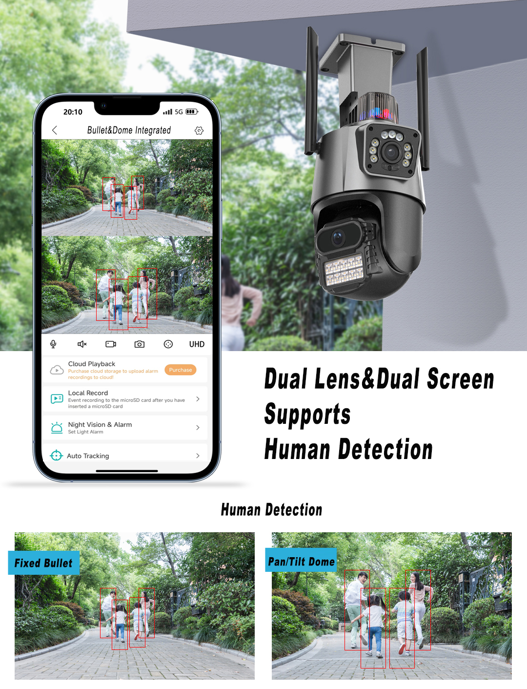 -Двойной объектив с двумя датчиками, двойной экран, широкоугольный обзор + Просмотр на большом расстоянии для достижения четкого мониторинга издалека и вблизи;