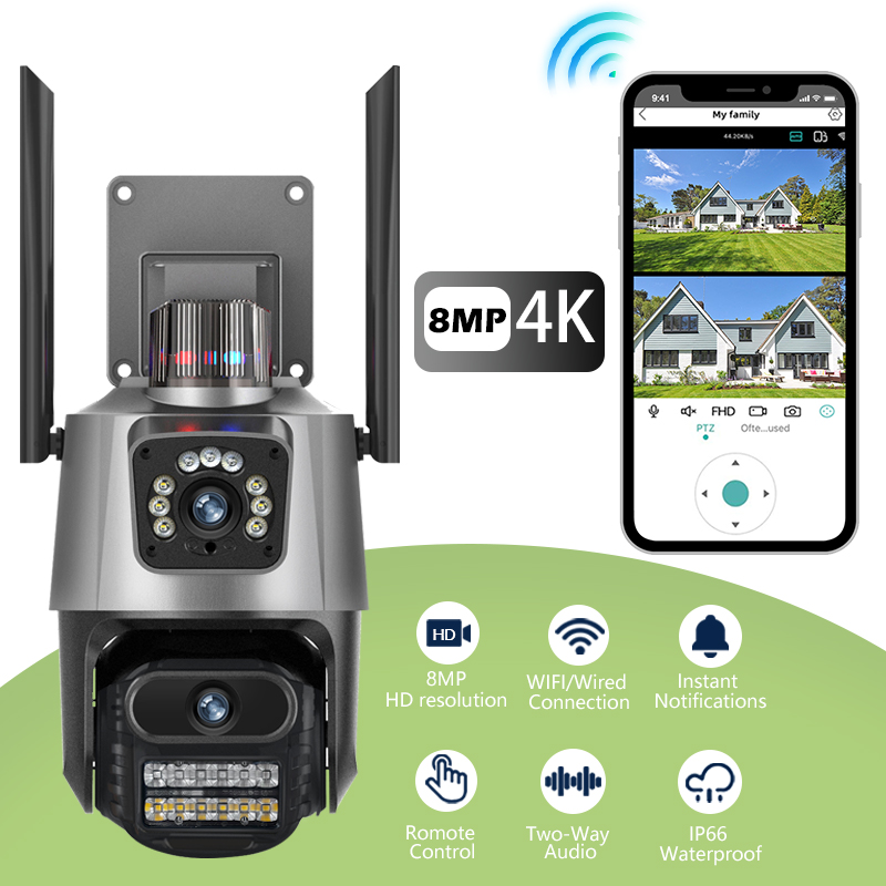 Объектива камеры выдержки 4К 8МП Вифи предохранение от безопасности Ип сигнала тревоги полиции монитора умного двойного водоустойчивое