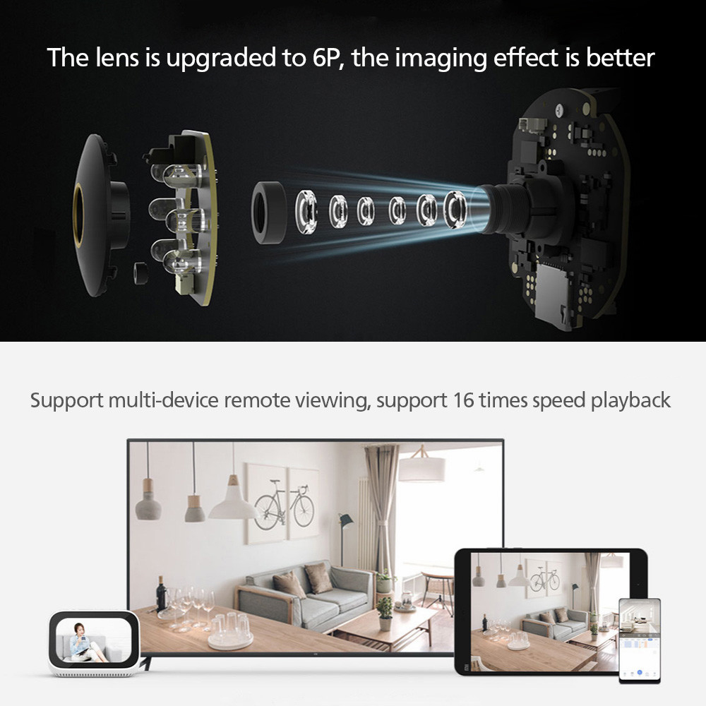 Принять конструкцию с двойной головкой двигателя, угол обзора 360 ° по горизонтали, угол обзора 108 ° по вертикали. Управление приложением Mijia, панорамный рисунок, чтобы увидеть, что означает.