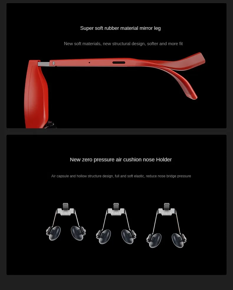 • Испытайте комфорт при ношении в течение всего дня с весом 72 г, подушечкой для носа с нулевым давлением и ультрамягкими дужками. Несколько режимов отображения в соответствии с вашими потребностями (может потребоваться дополнительный аксессуар).