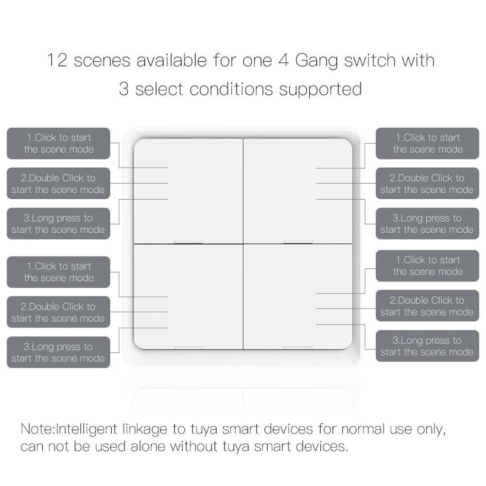 Смарт-переключатель Tuya ZigBee с 4 клавишами, 12 режимами работы, работает с приложением ZigBee Gateway