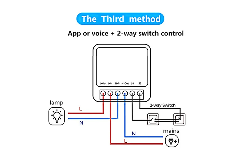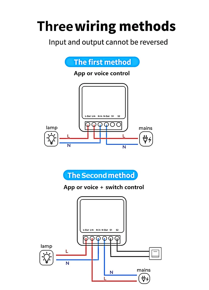 Его также можно подключить за переключателем для поддержки одного переключателя управления и двойного переключателя управления. Он может быть непосредственно установлен в коробке переключателя к модулю переключателя. Он также может быть установлен на двойном переключателе управления, не влияя на использование двойного переключателя управления.