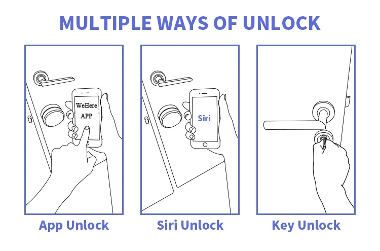 Туя (Зигби) + WeHereВерсия (Bluetooth): Tuya ZigBee или управление Bluetooth WeHere.Аксессуар для пароля и отпечатка пальца должен быть настроен и использован в приложении WeHere;Приложение Tuya только для удаленной разблокировки, оно не может использовать пароль и отпечаток пальца.