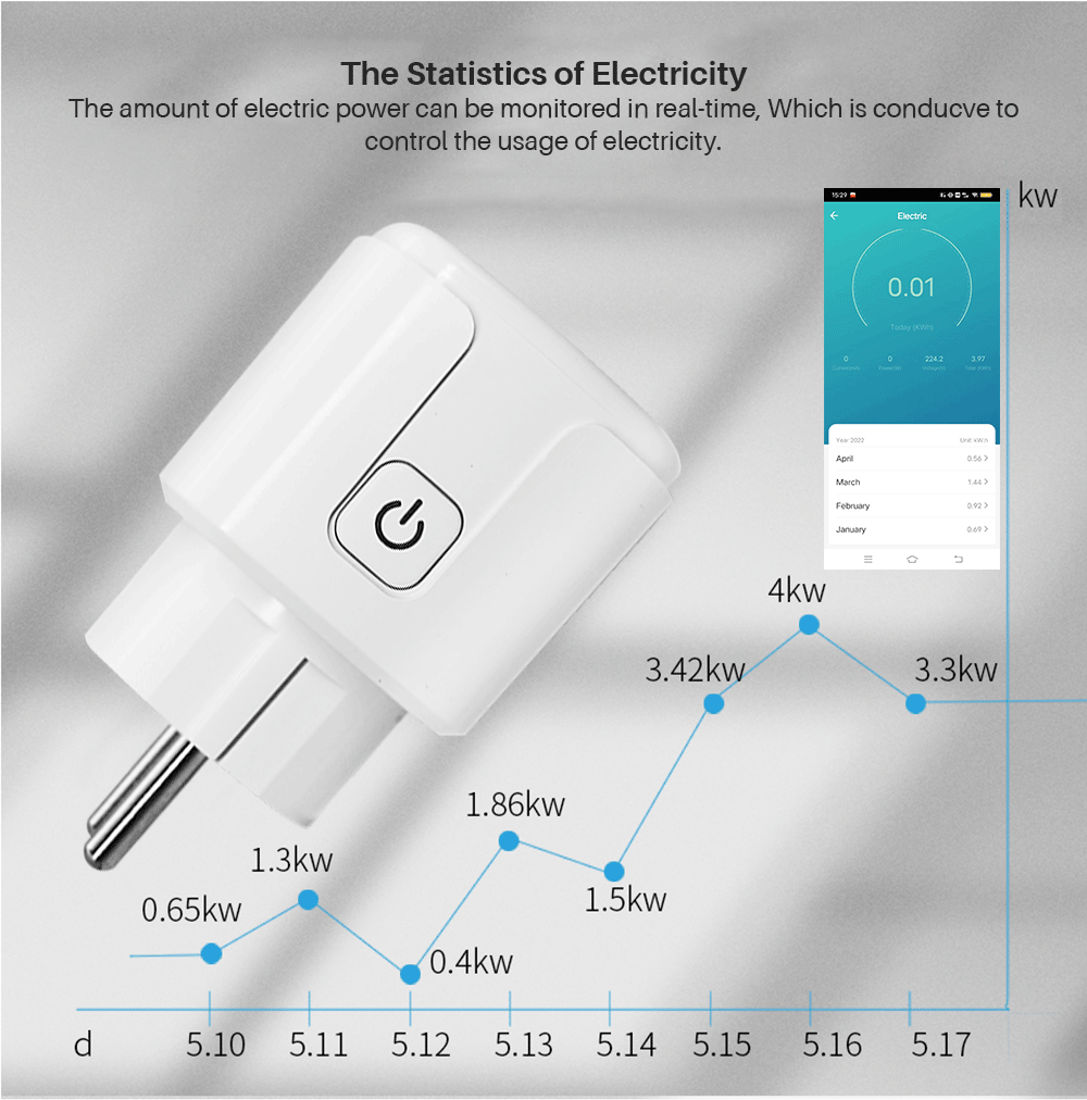 Эта умная Вилка питания может обеспечить измеритель энергопотребления в реальном времени, и вы можете знать отчеты в реальном времени о том, сколько энергии потребляет ваша техника.