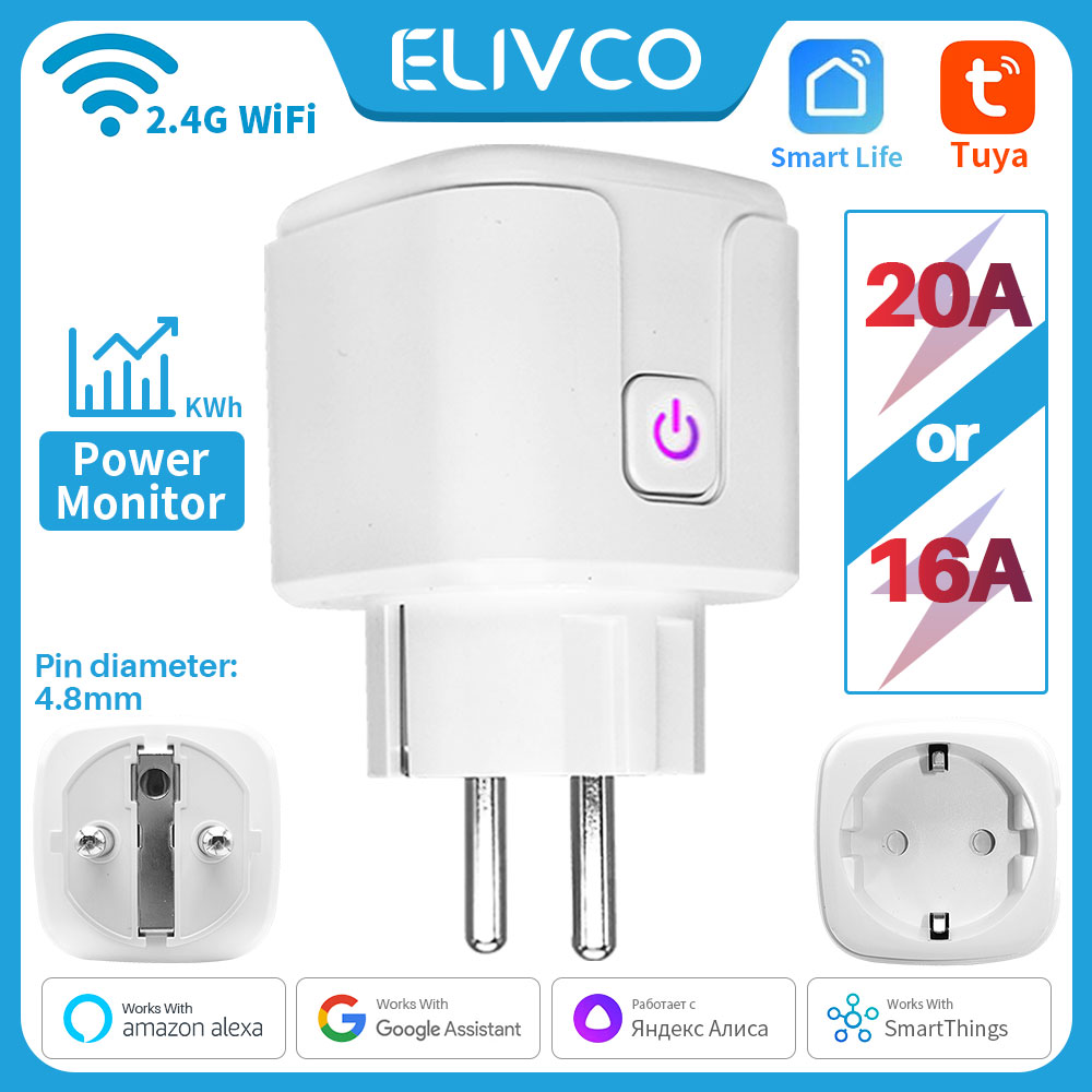 Смарт-розетка Tuya с поддержкой Wi-Fi, 16 А/20 А
