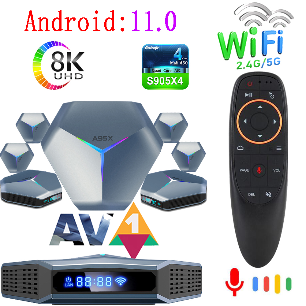 A95X F4 Amlogic S905X4 Smart Android 11 TV Box 4K HD YouTube 4GB RAM 32GB 64GB 128GB ROM 2.4G/5Ghz Wifi RGB Light Set Top Box