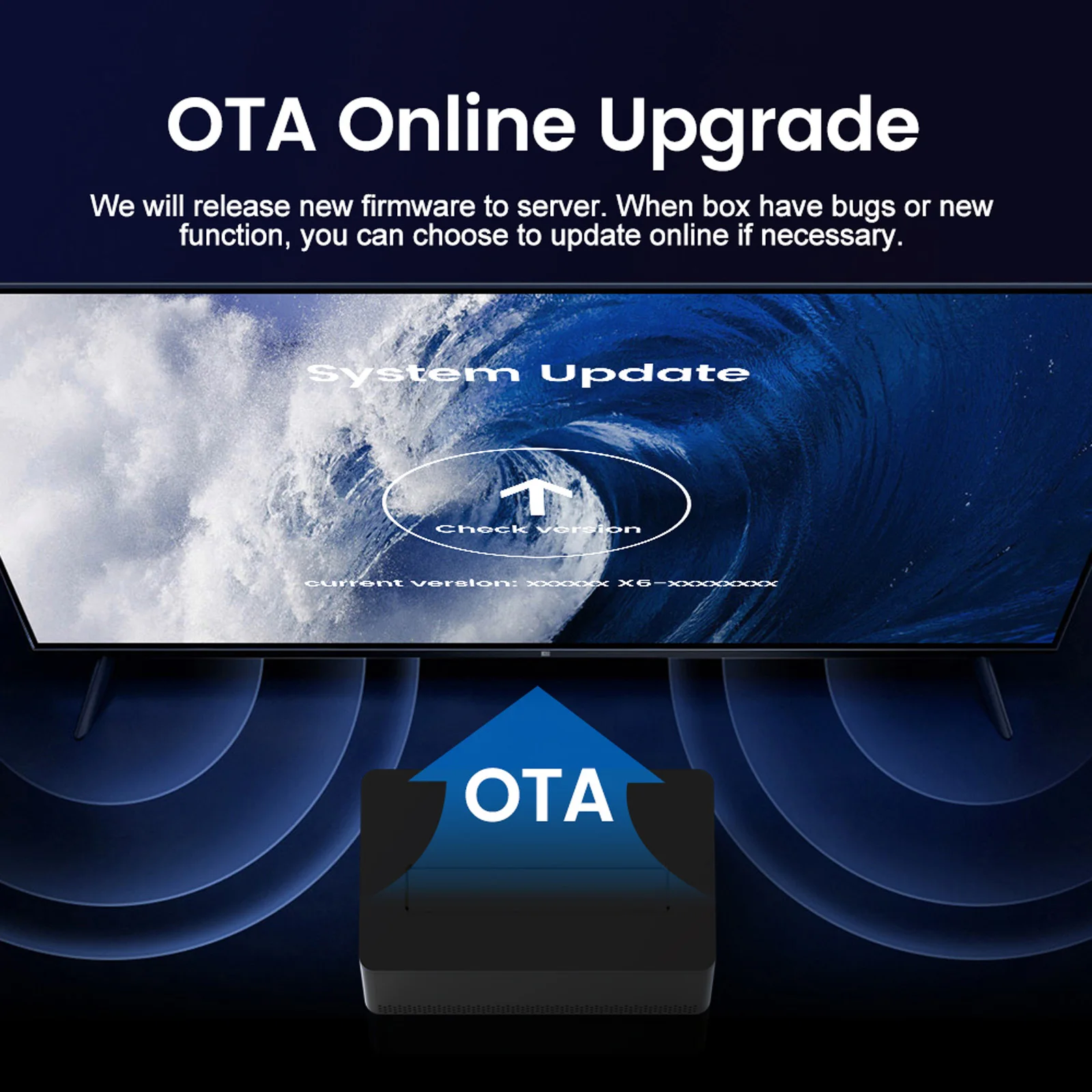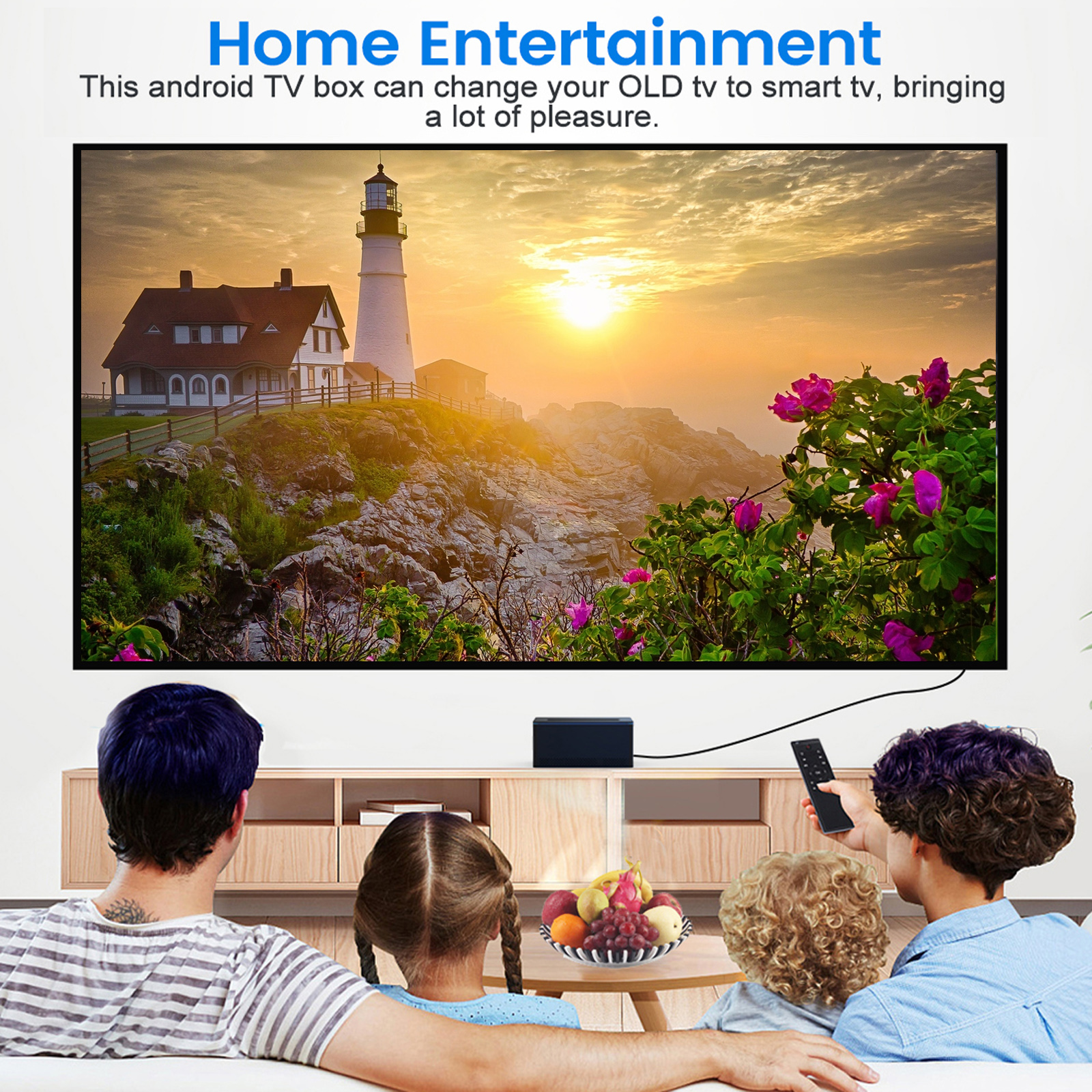 X6 Smart Android TV Box может превратить ваш традиционный телевизор и ЖК-монитор в мультимедийный центр, подключив Интернет (через Wi-Fi или RJ45). Этот умный Android TV Box принесет вам много удовольствия и удобства благодаря своей мощной функции: Android 11 ATV, четырехъядерный процессор Amlogic S905Y4, графический процессор ARM G31 MP2, LPDDR4 2 ГБ + eMMC 16 ГБ, декодирование видео 4K, двухдиапазонный Wi-Fi 2,4 ГГц/5 ГГц, BT4.0 и подключение к локальной сети 100 Мбит/с.