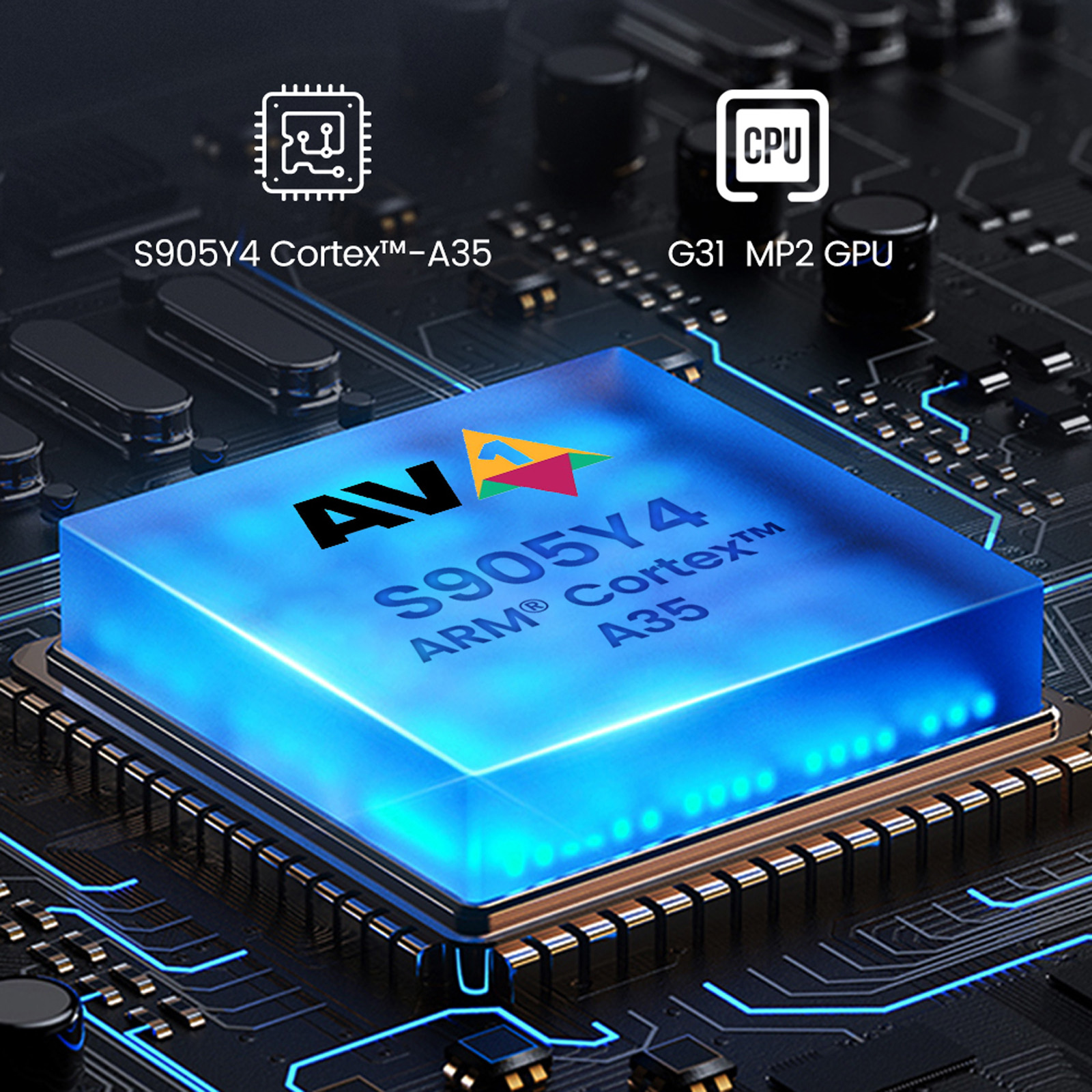 Чипсет Amlogic S905Y4 выбирает маломощные ядра процессора A35 вместо Cortex-A55, которые потребляют до 32% меньше заряда батареи при достижении той же производительности.