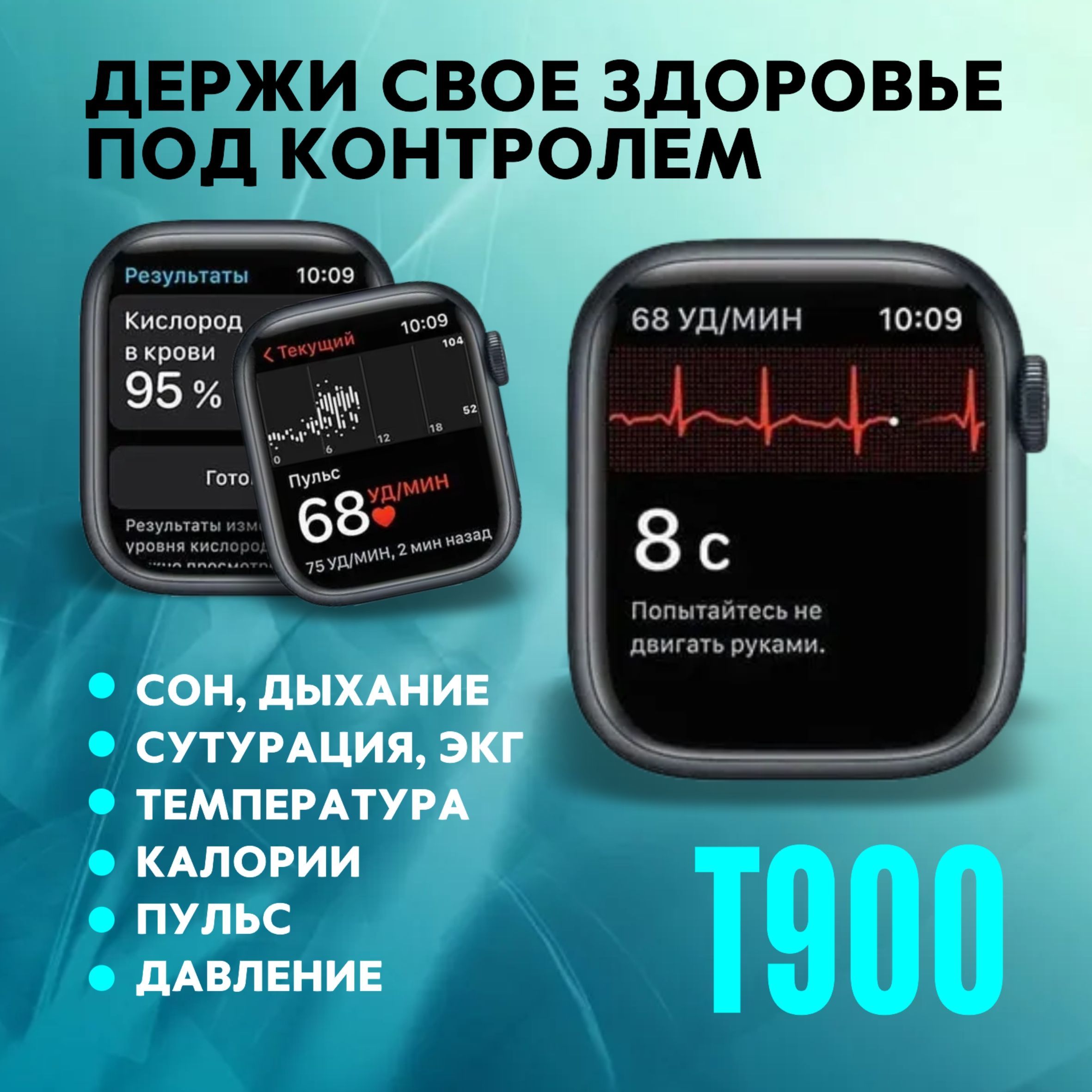 Описание: Smart Watch Series Ultra PREMIUM T900Современные смарт-часы, способные частично заменить ваш смартфон, а то и превзойти егоСледите за здоровьем прямо через часыСовременные технологии смарт-часов позволяют вам мерить пульс и давление, оценить количество кислорода в крови, следить за калориями и, что самое важное в наше время, оценивать качество сна!Можно отвечать на звонки и сообщенияСмарт-часы оснащены встроенным Bluetooth 5.3 и вибромотором, что позволит пользователю легко отвечать на звонки, отправлять сообщения прямо через них даже в то время, когда телефона нет под рукой!Дизайн дисплея на ваш вкусМы собрали все самые популярные и красивые циферблаты, чтобы вы выбрали его на свой вкус и получали зрительное удовольствие каждый день!Переживаете о батарее и зарядке?Не стоит, ведь часы оснащены ёмким аккумулятором, который заряжается всего лишь за 2 часа и даёт возможность пользоваться смарт часами до 5 дней. Для еще большего удобства, мы оснастили их удобной беспроводной зарядкой - поставили на док станцию и забыли!Надёжный корпус и удобное управлениеМы изготовили корпус из лёгкого и надежного металла и защитили от влаги ваши смарт-часы, чтобы вы не переживали, когда случайно роняете ваши часы или на них попадают капли воды, а также разработали управление, которое позволит удобно их использовать каждый день!Понравятся как пользователям IOS, так и AndroidЧасы не привязаны к определенной операционной системе, что позволяет вам пользоваться ими каждый день с удовольствием, несмотря на производителя своего смартфона!Полная комплектацияКогда вы покупаете наш товар, вам будут доставлены не только часы, но и беспроводная зарядка, удобные, силиконовые ремешки с титановыми пряжками!