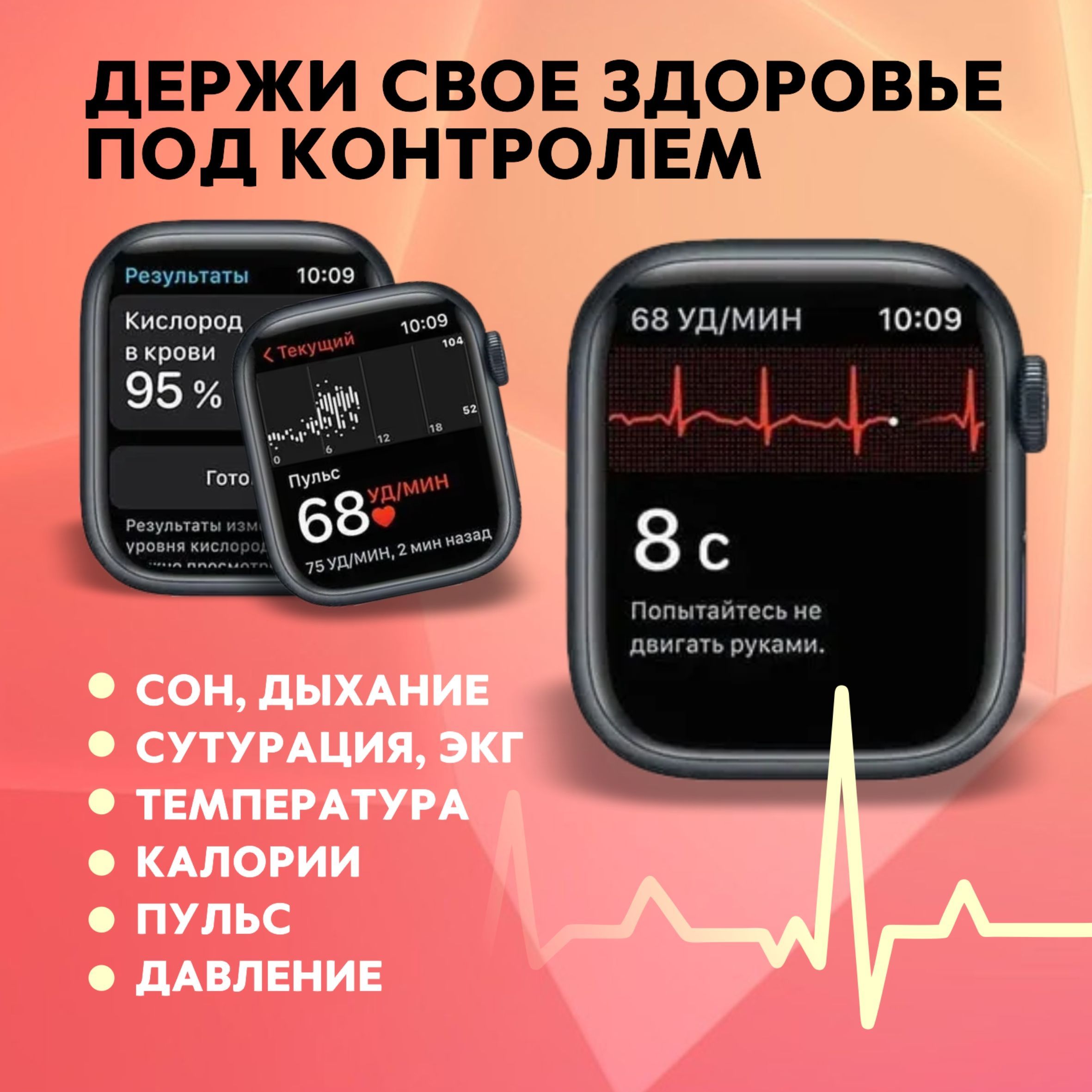 Мониторинг: Сердечного ритма, Сна, Усвоения калорий, Физической активности, Электрокардиограмма