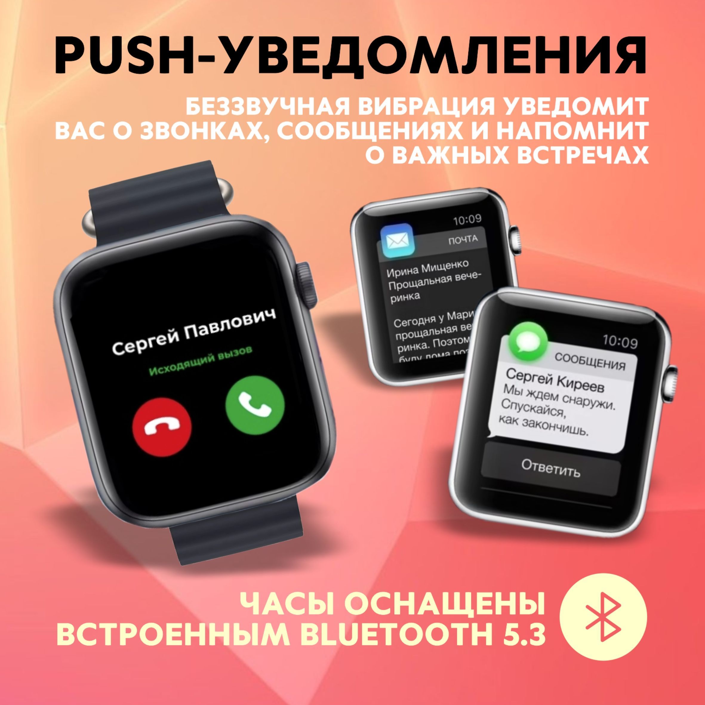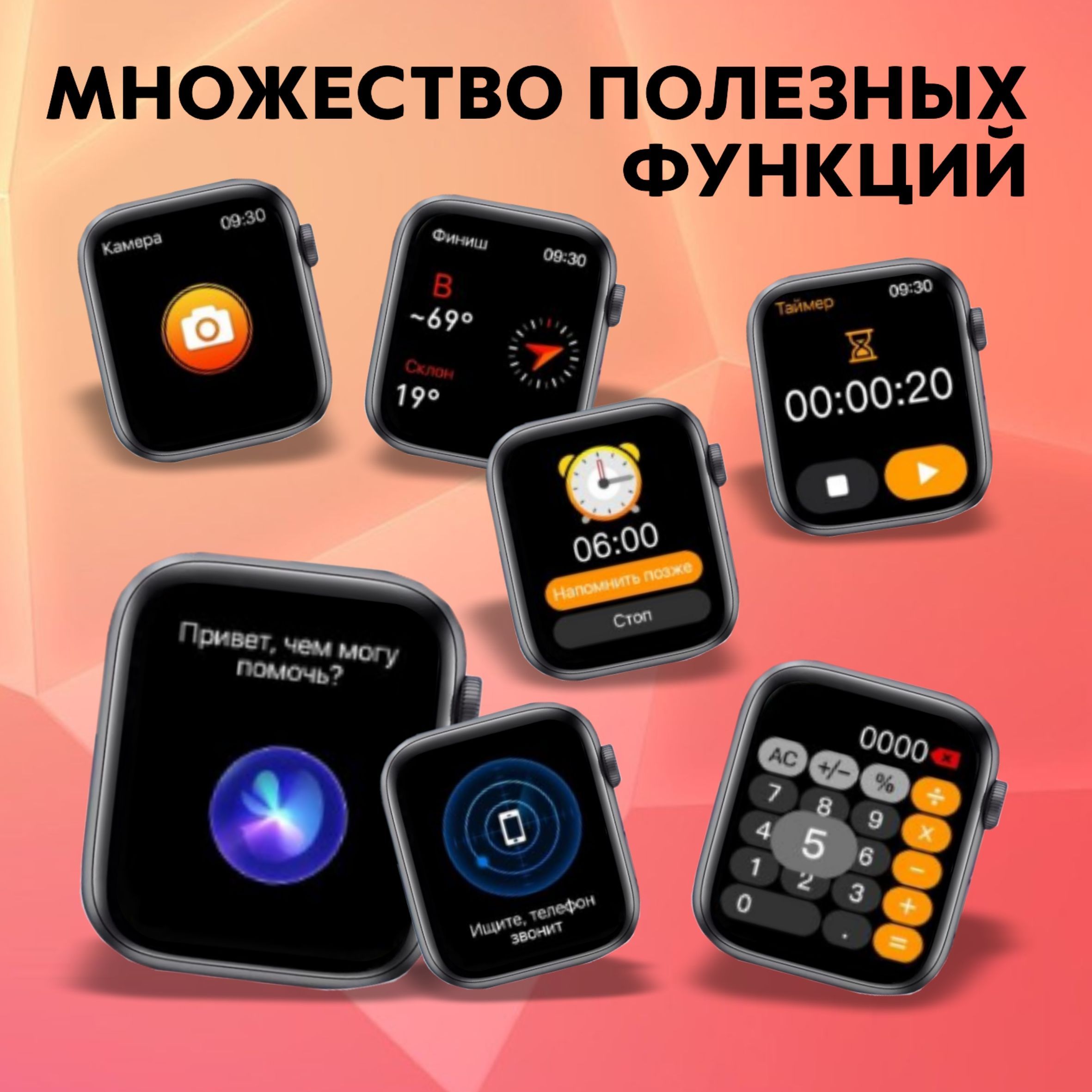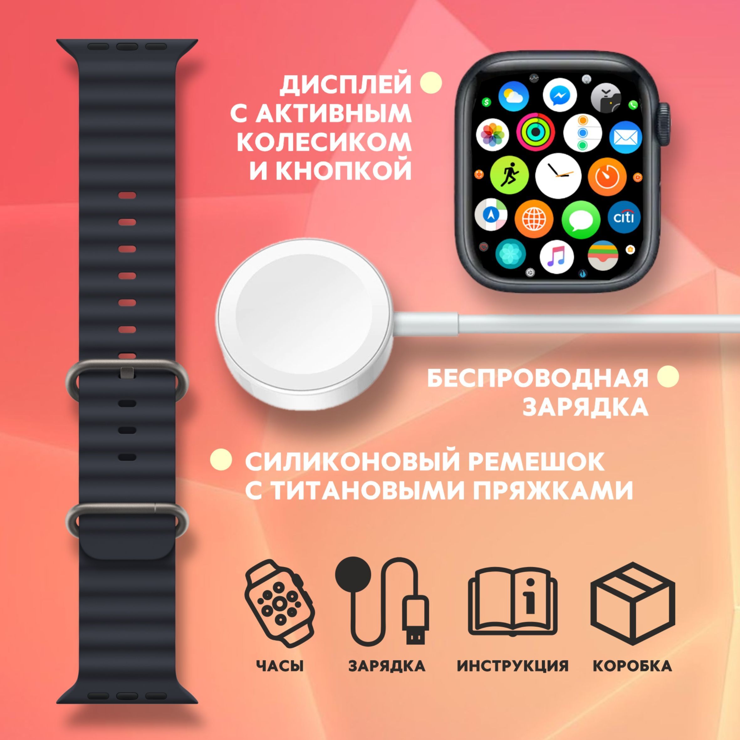 Описание: Smart Watch Series Ultra PREMIUM T900Надёжность, стиль, функциональность, удобствоСледи за здоровьемЧасы оснащены многочисленными датчиками, которые позволяют отслеживать здоровье как в повседневной жизни, так и во время занятий спортом. Вы спокойно можете использовать их во время тренировок.Управляй при помощи голосаСмарт часы имеют голосового помощника, который позволяет вам своей речью управлять ими и настраивать их. Настраивайте будильник, смотрите погоду или переключайте музыку!Все функции смартфона в часах!В наших смарт-часах есть калькулятор, будильник, таймер, GPS геолокатор, компас, камера, поэтому вы можете частично заменить телефон данными часами.Дизайн циферблата на ваш вкусМы собрали для вас огромное количество внешних видов циферблатов. Поэтому вы можете выбрать любой на свой вкус и наслаждаться его внешним видом каждый день!Не упустите ни одного сообщенияО всех сообщениях, приходящих на ваше устройство, привязанное к часам, вас уведомляют и сами смарт часы, поэтому даже самые важные сообщение не останутся неувиденными.Не бойтесь попадания водыСмарт часы защищены от влаги и пыли с помощью нового уровня влагозащиты IP68, поэтому они не сломаются, если на них попадёт влага или пыль. А сам корпус сделан непосредственно из цинкового сплаваВсё необходимое - в комплектеПри заказе вы получаете сами смарт часы, 2 съёмных ремешка, беспроводную зарядку, инструкцию по применению и саму коробку.