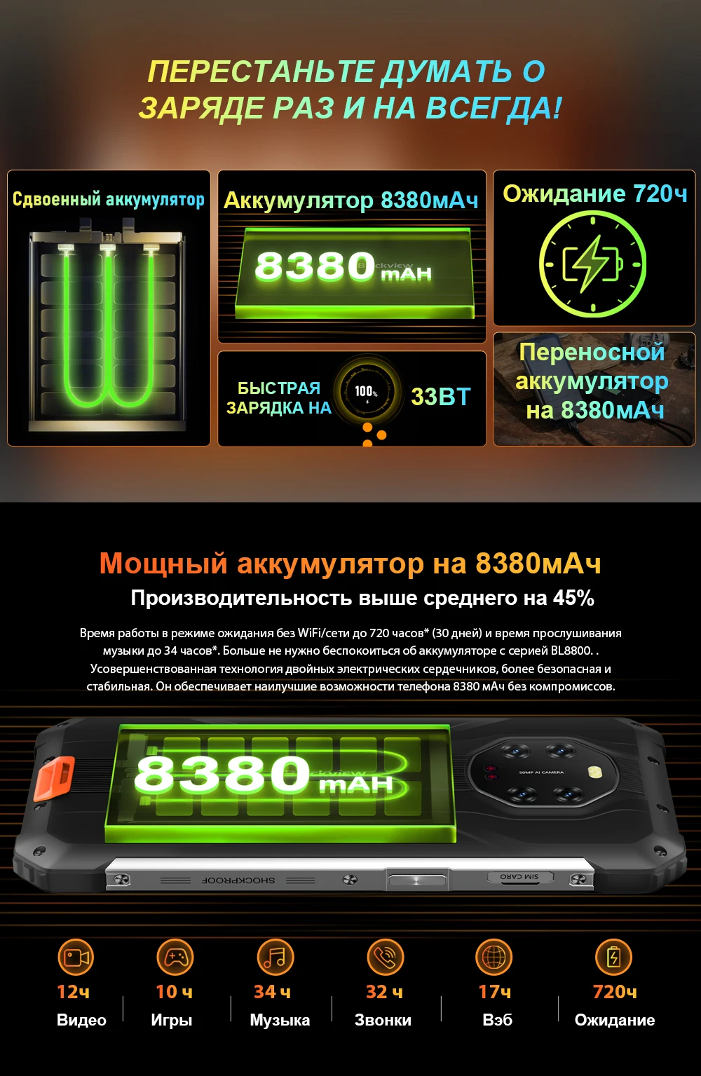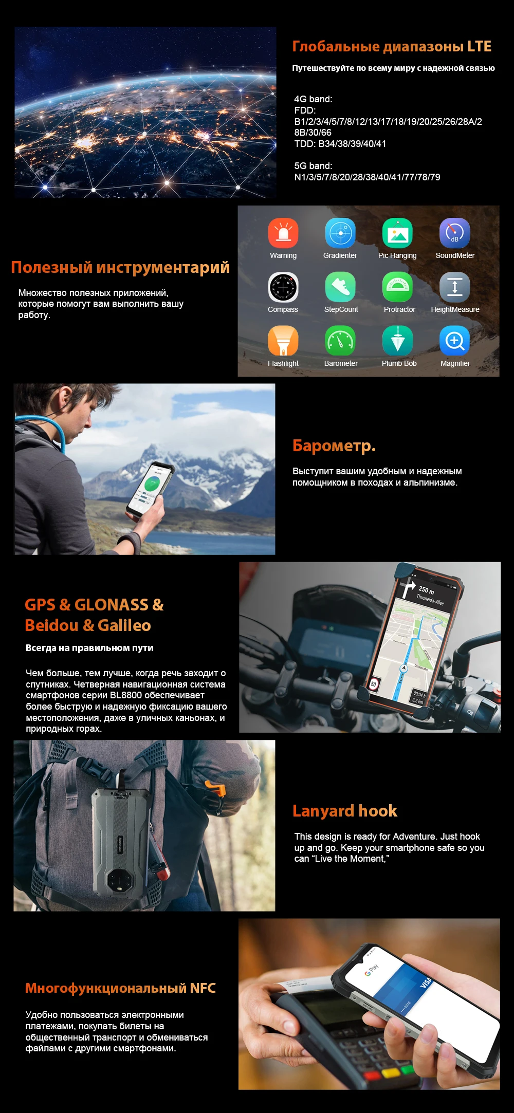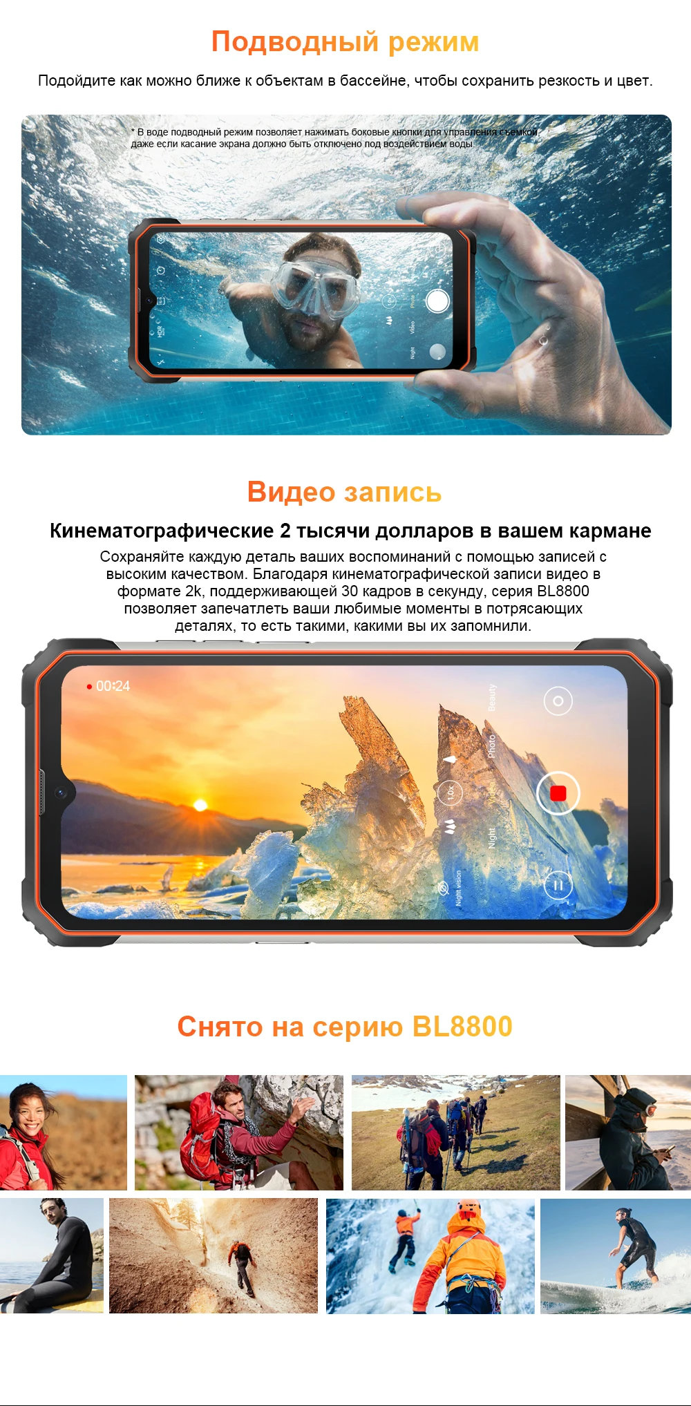 Примечание: разница между BL8800 и BL8800 Pro-это задняя камера. BL8800 Pro имеет FLIR®Лептон®Тепловизионная камера и Ультрапрозрачная Основная камера 50MP; BL8800 имеет ИК-камеру ночного видения 20MP, ультра-широкоугольный фотоаппарат 8MP 117 ° и основную камеру 50MP