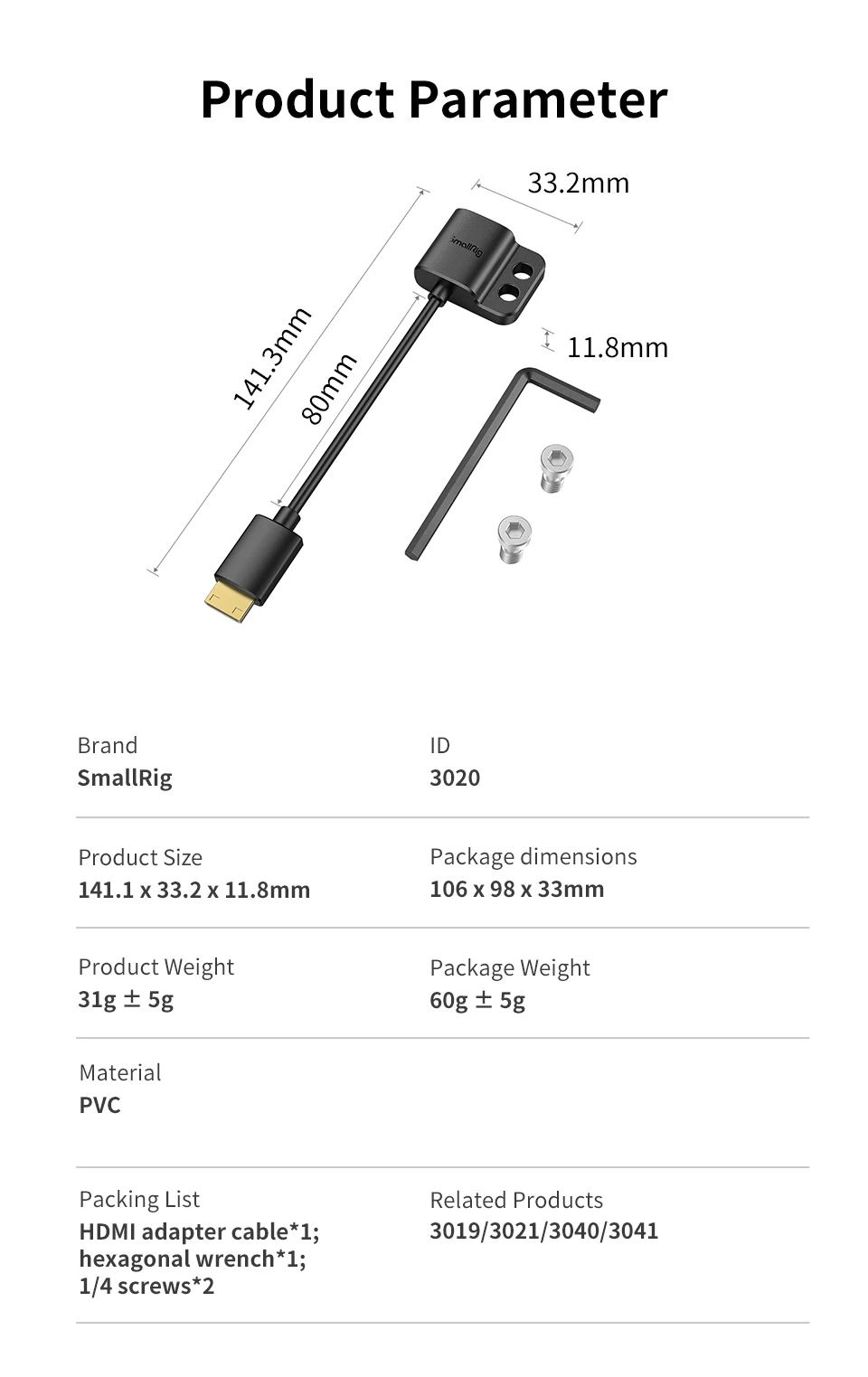 SmallRig ультра тонкий 4K HDMI-совместимый кабель адаптера (A to A) 3019Это высококачественный кабель-адаптер (полностью совместимый с HDMI разъём и полностью совместимый с HDMI Женский) для установки камеры. Он совместим с HDMI версии 2,0 и поддерживает разрешение до 4K @ 60HZ и будет обратно совместим. Он оснащен двумя винтами 1/4-20 ", чтобы зафиксировать женскую часть на боковой стороне камеры или l-кронштейна плотно, чтобы защитить hdmi-совместимый порт камеры и обеспечить более стабильное соединение. Ультра-тонкий дизайн с 3,6 мм наружный диаметр делает его тоньше и мягче чем больше, чем у обычного HDMI кабель. Это идеальный Кабель-адаптер, используемый для изменения порта, совместимого с камерой HDMI, в более желаемое направление по мере необходимости.