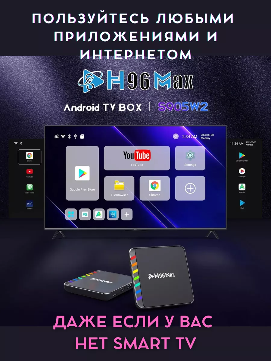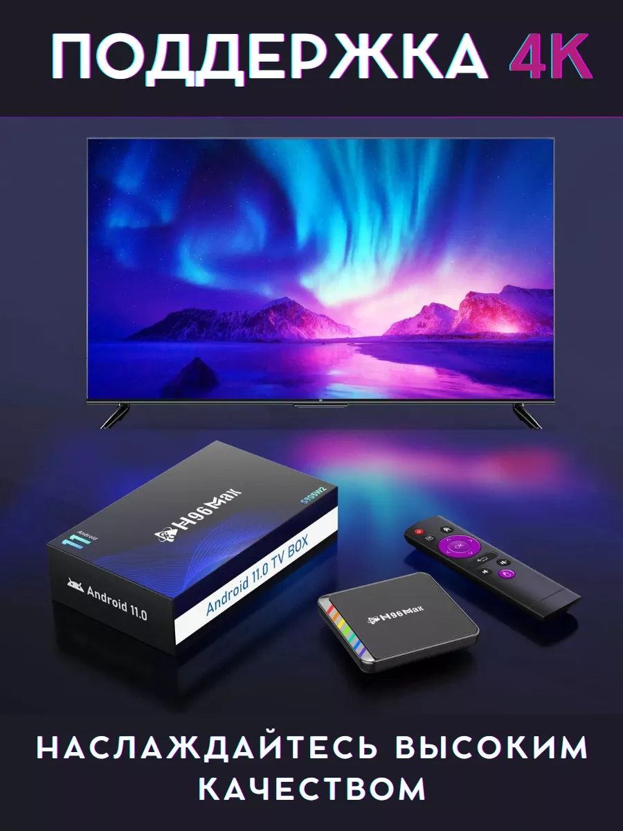 Описание: Смарт ТВ приставка H96max H96 Max с WiFi и Bluetooth для Вашего телевизора. Операционная система Android 11.0 Графический процессор Mail-G31 MP2 Качество изображения 4K Ultra HD позволит насладиться просмотром фильмов в полной мере. Медиаплеер пригодится Вам, если в доме есть интернет и WiFi, но у телевизора нет функции Smart TV. Так же Вы можете смотреть телевидение, абсолютно любые каналы. Смарт приставка для телевизора андроид WiFi пригодится, если у Вас нет кабельного телевидения. Смарт тв приставка для телевизора очень удобна в использовании. Купить приставку смарт тв можно в подарок мужчине, подарок папе, подарок мужу, подарок на день рождения, подарок на Новый год, подарок жене. Медиаплеер H96 Max отличный подарок на любой праздник. Смарт приставка андроид 11.0.