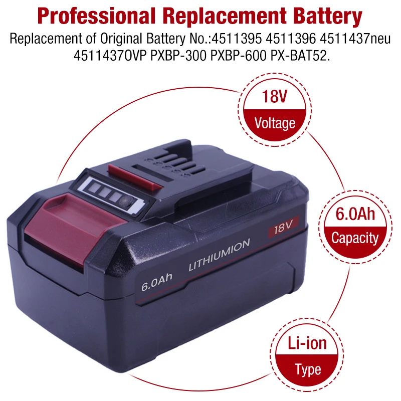EIN18C2 PXBP-600 PX-BAT4 PX-BAT52 4511396 4511437 6000mAh 18V Li-ion Replacement Battery for EINHELL Power X-change TC-CD18-2Li