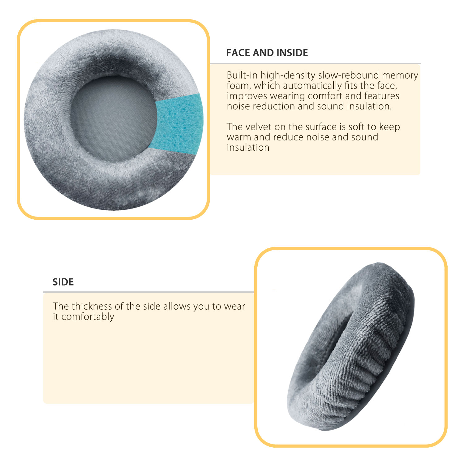 Материал: бархат и пена с эффектом памяти (внутри)