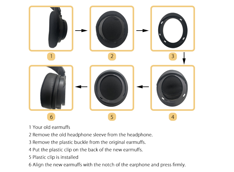 4. Поместите пластиковый зажим на заднюю часть новых наушников.