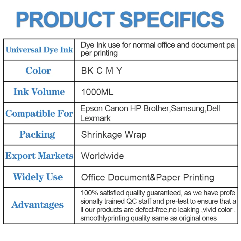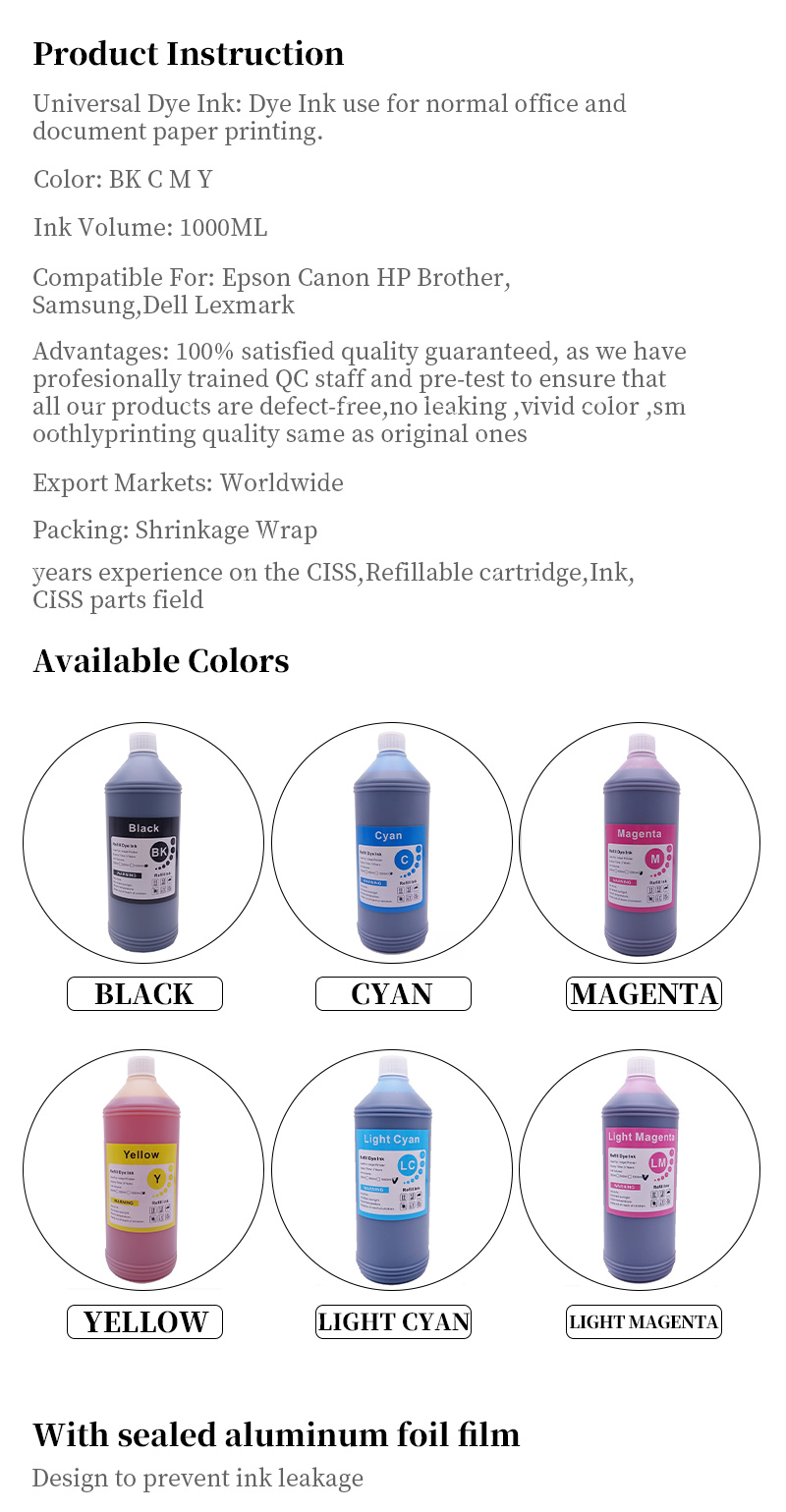 Сменные чернила на основе красителя для Epson Canon HP Brother Lexmark Samsung Dell